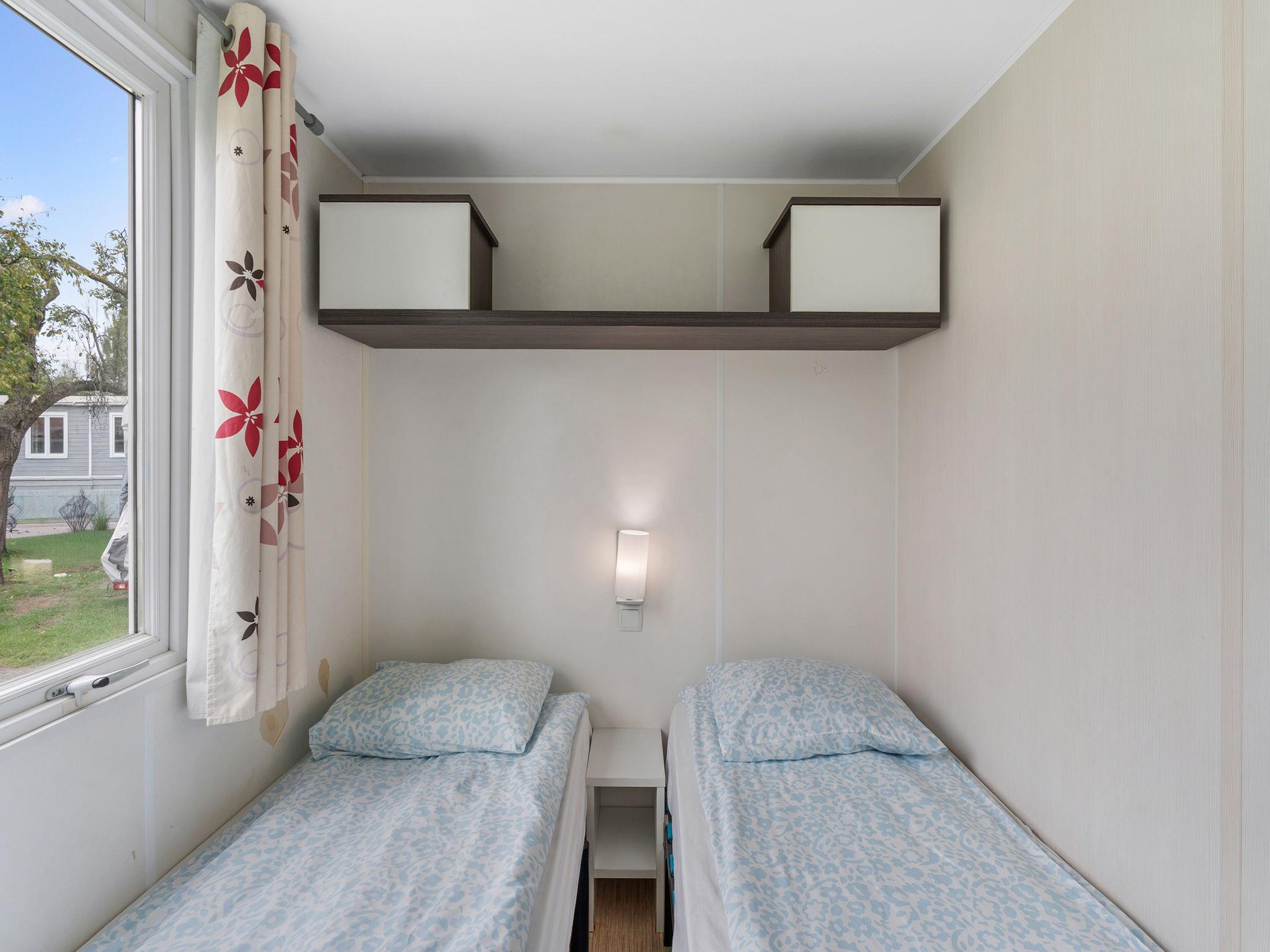 "Prima Plus", 4-room bungalow 32 m2. Living room with 1 sofabed. 1 room with 1 double bed. 2 rooms, each room with 2 beds. Kitchen (4 gas rings, freezer, electric coffee machine). Shower, sep. WC. Heating, air-conditioning. Terrace. Terrace furniture. Facilities: Internet (WiFi, free). Suitable for families. Maximum 2 pets/ dogs allowed.