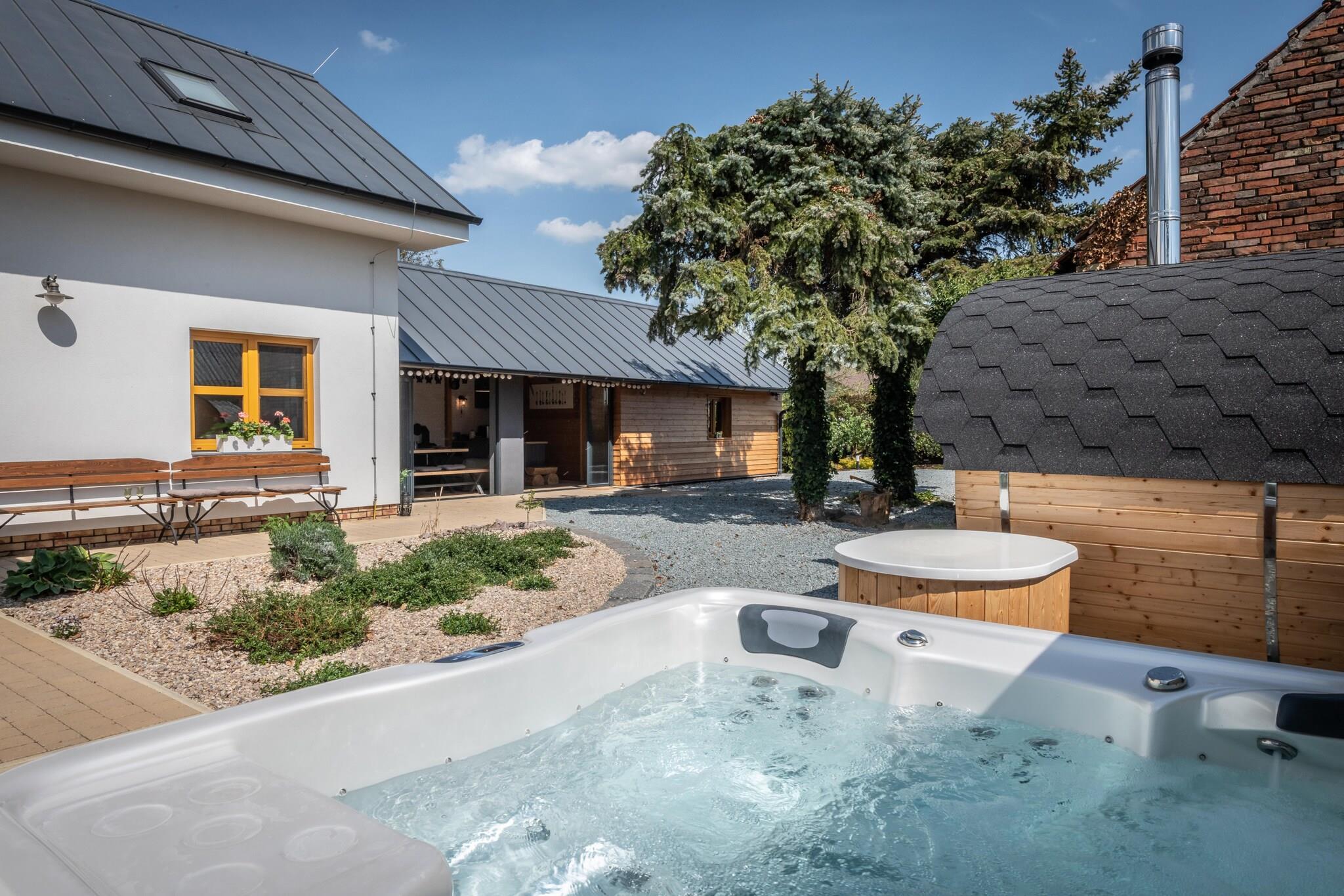 I den charmerende landsby Roprachtice, beliggende i Liberec-regionen, ligger et skønt feriehus, der blander natur med håndværk. Hver detalje i huset, fra de håndlavede møbler til væggene i grantræ, afspejler den omsorg og kærlighed, som ejerne har lagt i dets skabelse. Denne hyggelige ejendom har plads til 14 personer fordelt på fem soveværelser og tre badeværelser. Stuen har et panoramavindue, så du kan nyde den omkringliggende naturlige skønhed. Hvert værelse er udstyret med et fjernsyn til underholdning, med adgang til satellitkanaler eller Netflix. Det moderne køkken er fuldt udstyret, og et stort spisebord gør det perfekt til at nyde måltider sammen. En lille vinkælder er også tilgængelig, perfekt for vinentusiaster. Terrassen er et perfekt sted til afslapning, med komfortable havemøbler ideelle til morgenkaffen eller se solnedgangen. Du kan også nyde at grille under stjernerne eller slappe af ved pejsen, med træ leveret gratis. For ultimativ afslapning er en sauna og jacuzzi inkluderet i ejendommen, selvom energiomkostningerne beregnes separat. Liberec-regionen byder på en række aktiviteter for alle. Golfspillere kan nyde nærliggende baner kun 17 km væk, mens historieinteresserede kan udforske traditionerne i nærliggende byer som Jilemnice (10 km), Semily (15 km), Benecko (16 km) og Ponikla (6 km). Vintersportsentusiaster vil sætte pris på de pister, der er tilgængelige for alle færdighedsniveauer, mens cyklister og vandrere kan udforske naturskønne ruter.