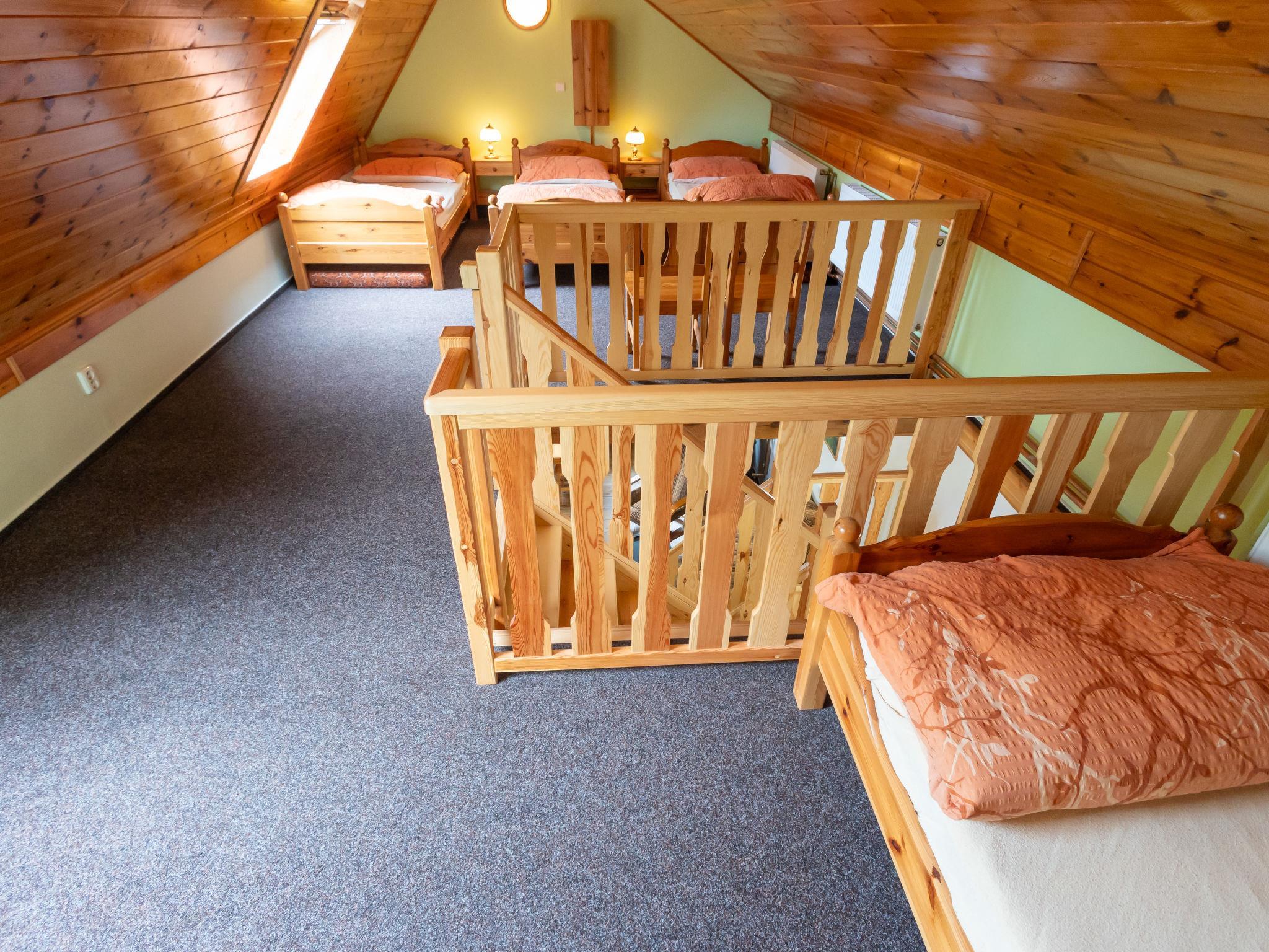 "U skály", 2-room cottage on 2 levels. Cosy furnishings: open living/dining room with 1 double sofabed, Scandinavian wood stove and dining table. Kitchenette (2 hot plates, kettle, microwave). Shower/WC. Upper floor: open, 1 room with 4 beds. Electric heating, wood heating. Suitable for families.