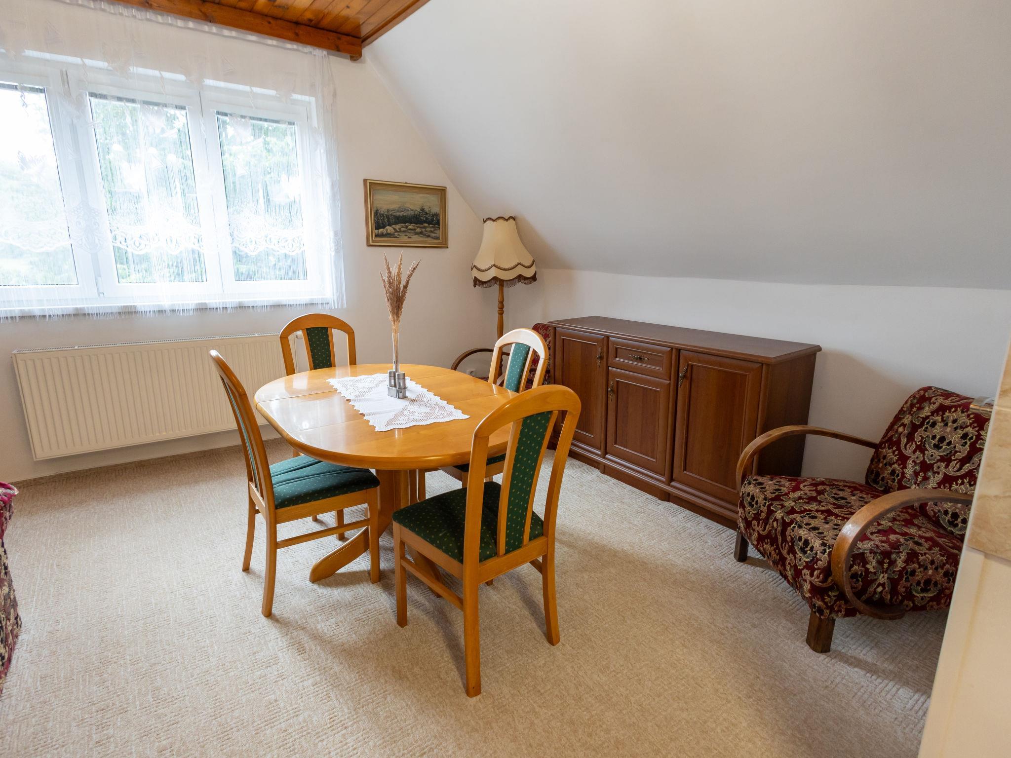 "Zimorský domek", 2-room house on 2 levels. Open living/sleeping room with 1 double bed, dining table and TV. Small kitchen (2 hot plates, kettle, microwave). Shower/WC. Upper floor: living/sleeping room with 1 double bed and TV. Small kitchen (2 hot plates, kettle, microwave). Shower/WC. Electric heating. Facilities: Internet (WiFi). Suitable for families.