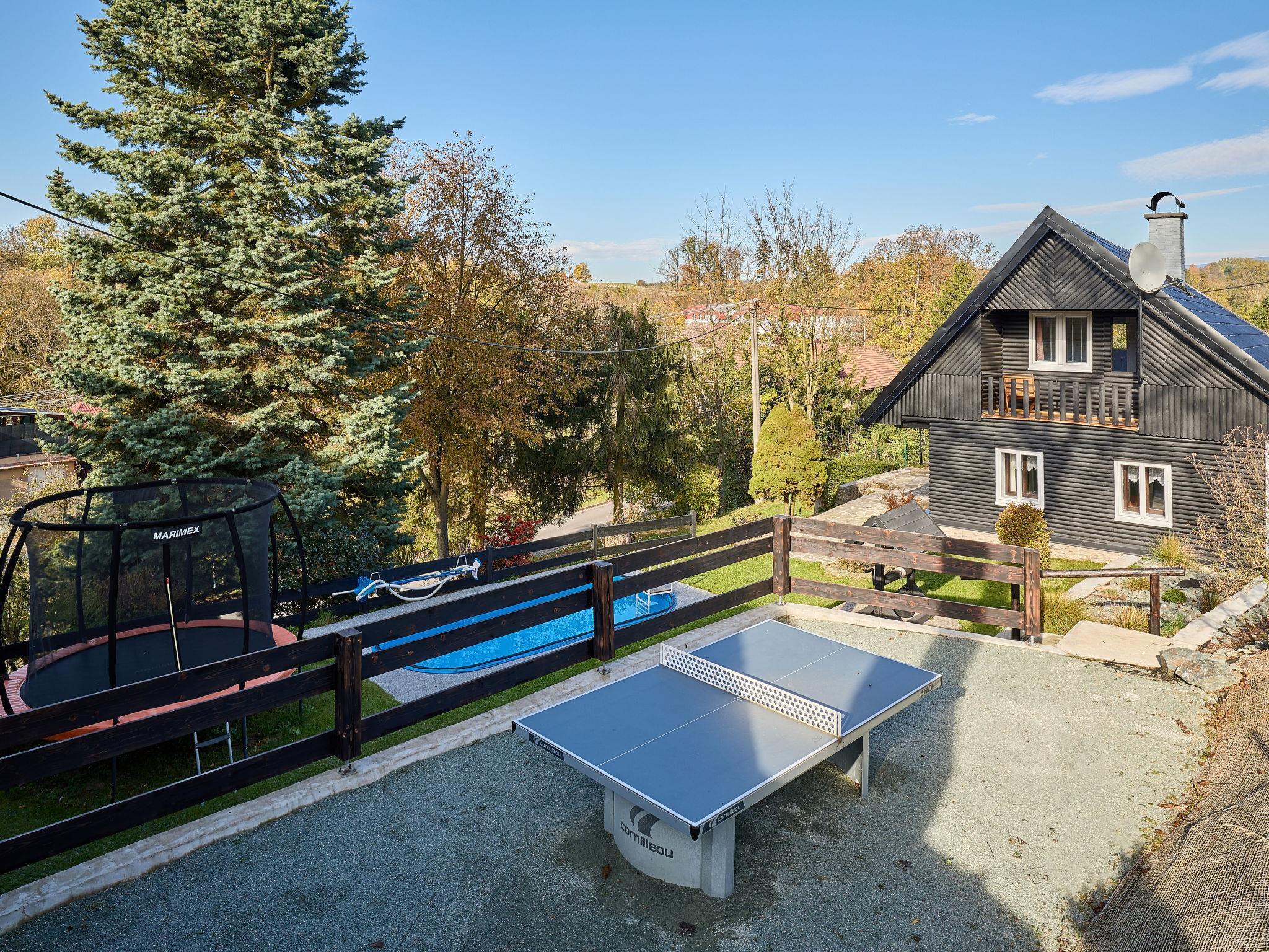 Cottage "Leisure Lounge & Pool", 2 storeys, detached, renovated in 2024. 300 m from the centre of Kvasiny, 12 km from the centre of Dobruška, in the residential district, 12 km from the lake. Private: property 400 m2, lawn and trees, swimming pool (6 x 3 m, depth 120 cm, seasonal availability: 16.May. - 12.Sep.). Arbour, garden furniture, barbecue (swing). 30 m long steep motor access. Parking (for 2 cars) on the premises. Shop 500 m, supermarket 7 km, restaurant 500 m, bus stop "Kvasiny" 200 m, railway station "Kvasiny" 1 km, grass beach 12 km, outdoor swimming pool 9 km, bathing lake "Broumar" 12 km. Nearby attractions: Rychnov nad Knežnou 9 km, Opocno 12 km, Nové Mesto nad Metují 24 km, Náchod 30 km. Well-known ski regions can easily be reached: Deštné v Orlických horách 15 km. Well-known lakes can easily be reached: Broumar 12 km, Rozkoš 25 km.