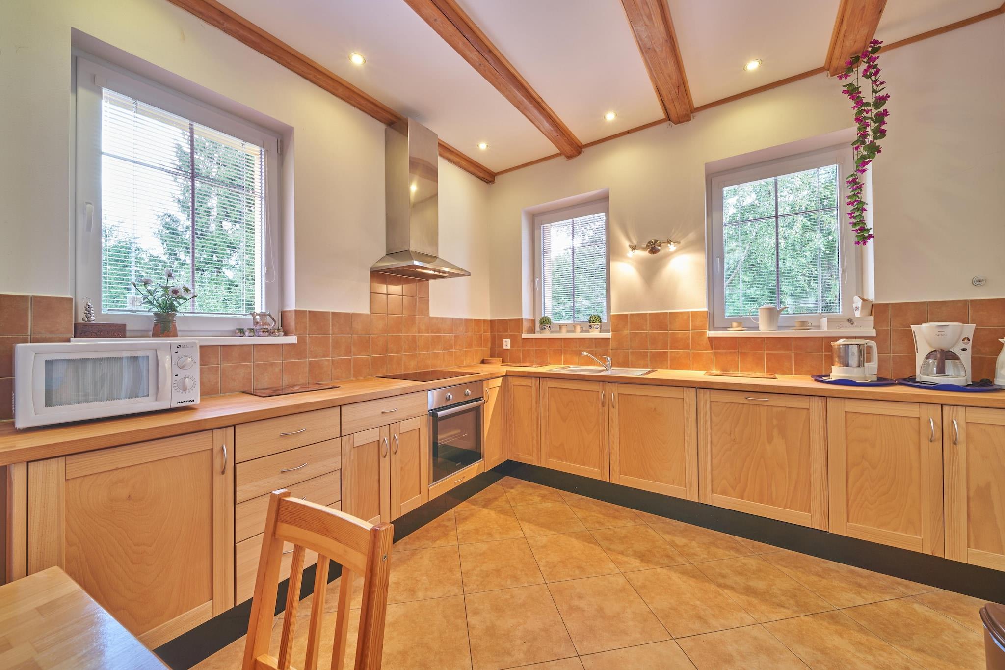 Flugt til dette hyggelige feriehus i Lampertice, beliggende i hjertet af Giant- og Eagle Mountains. Huset er ideelt for familier eller grupper og byder på en varm stue med brændeovn, en stor spiseplads og et fuldt udstyret køkken. Spil og underholdning venter i rekreationsrummet, der byder på et poolbord, bordfodbold, tv og dvd-afspiller, hvilket gør det perfekt til indendørs aftener. Blot 7 km fra de nærmeste skiløjper kan vintergæster nyde skiløb, langrendsløjper, snowtubing og ture med heste- eller hundeslæde. Om sommeren kan du udforske naturskønne klippeformationer, vandfald og nærliggende byer, eller tage lange gåture og cykelture gennem bjergene. Prag er kun to timer væk, og en dagstur til Polen tilføjer et internationalt twist til dit ophold. Den store have og terrasse giver plads til afslapning, BBQs og et hyggeligt bål. Børn vil nyde den runde swimmingpool, mens voksne kan slappe af i solen eller samles omkring siddeområderne. Parkering, private havemøbler og moderne bekvemmeligheder sikrer komfort for alle. Kæledyr er ikke tilladt, hvilket holder pladsen fredelig og familievenlig.