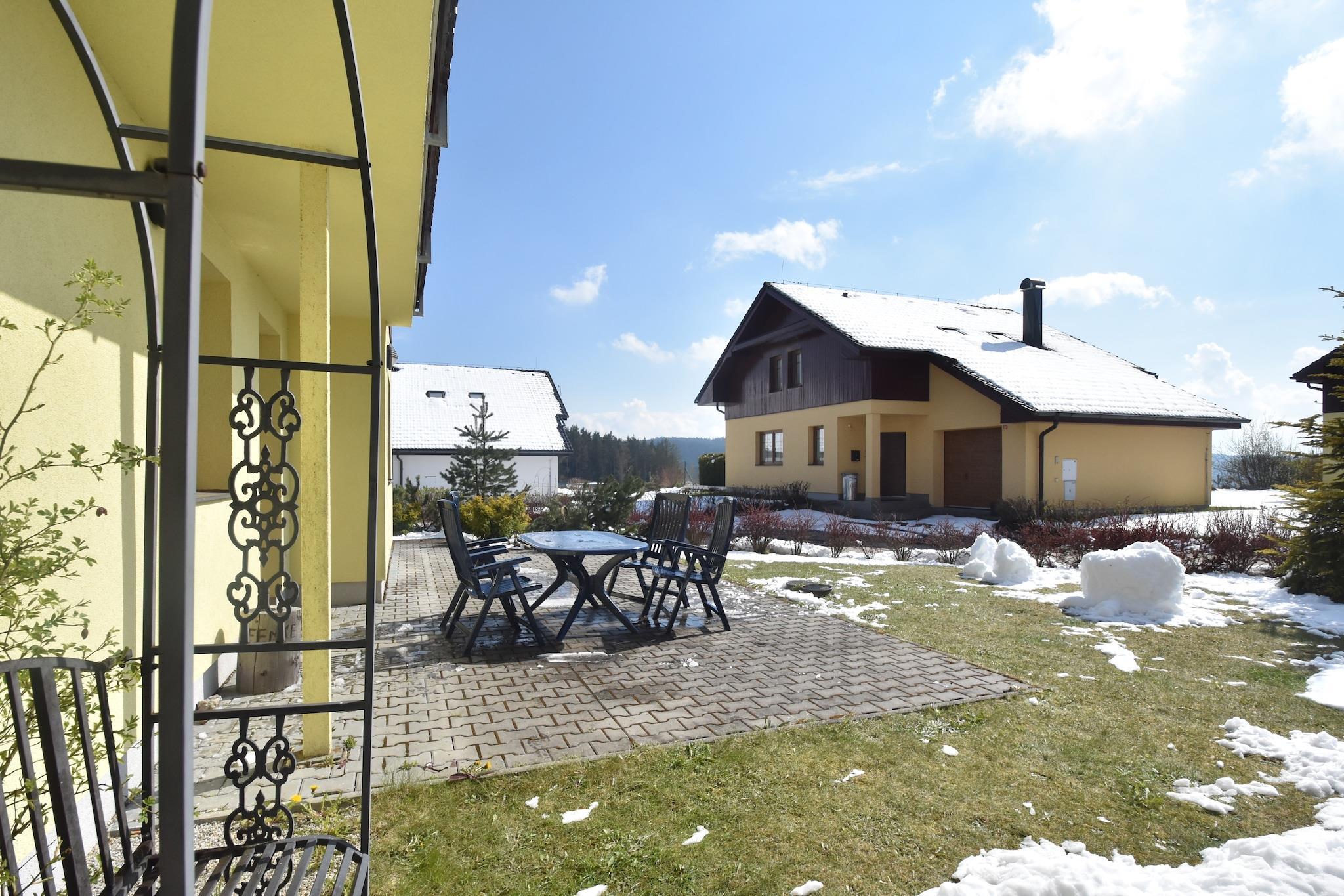 Afslappet Lakeside Living Denne rummelige villa ligger i den naturskønne landsby Lipno nad Vltavou og tilbyder et indbydende tilflugtssted for familier og venner. Med fire soveværelser, en lys opholdsstue og en privat terrasse med udsigt over haven, er den designet til komfort efter dage tilbragt ved vandet eller i skoven. Huset blander moderne bekvemmeligheder med hjemlige detaljer, herunder satellit-tv, WiFi og et fuldt udstyret køkken, så du kan nyde både fælles måltider og stille stunder indendørs. Natur og aktiviteter i nærheden Kun 100 meter fra skoven og skiliften placerer villaen dig i hjertet af året rundt aktiviteter. Om sommeren kan du slentre til Lipno-søen for at svømme, cykle langs søens stier eller sejleeventyr. Om vinteren gør de nærliggende pister skiløb ubesværet. Gæster, der rejser med kæledyr, vil elske de hundevenlige vandrestier rundt om søen og skyggefulde skovstier, hvor firbenede ledsagere kan udforske frit. Området byder også på åbne områder til picnic ved søen med kæledyr ved din side. Lokal spisning og charme Inden for en kort gåtur finder du hyggelige restauranter, der serverer solide tjekkiske retter og internationale retter. Caféer ved søen er perfekte til at nyde lokale fiskespecialiteter, mens familievenlige steder i Lipno by tilføjer den afslappede atmosfære. For dagligvarer og daglige behov er butikker kun 300 meter væk.