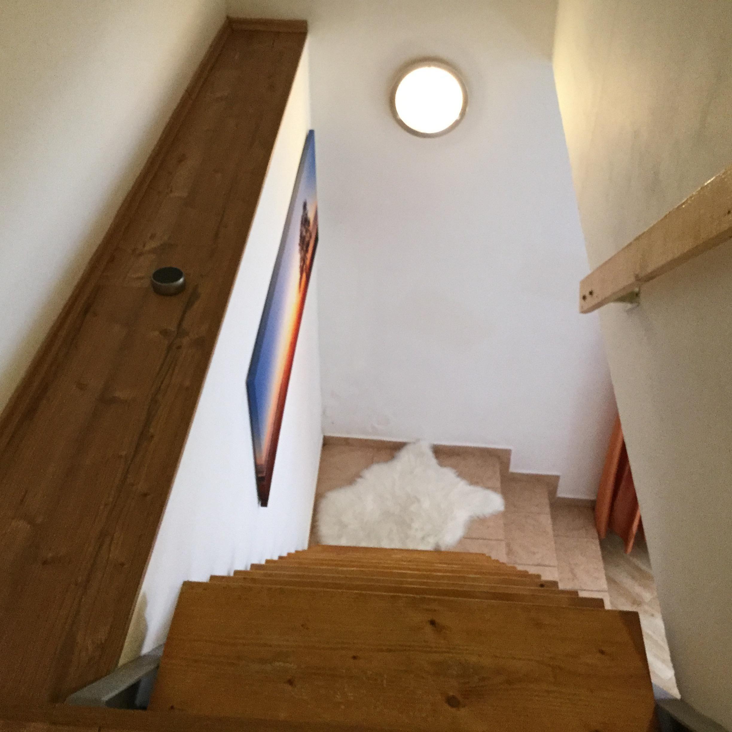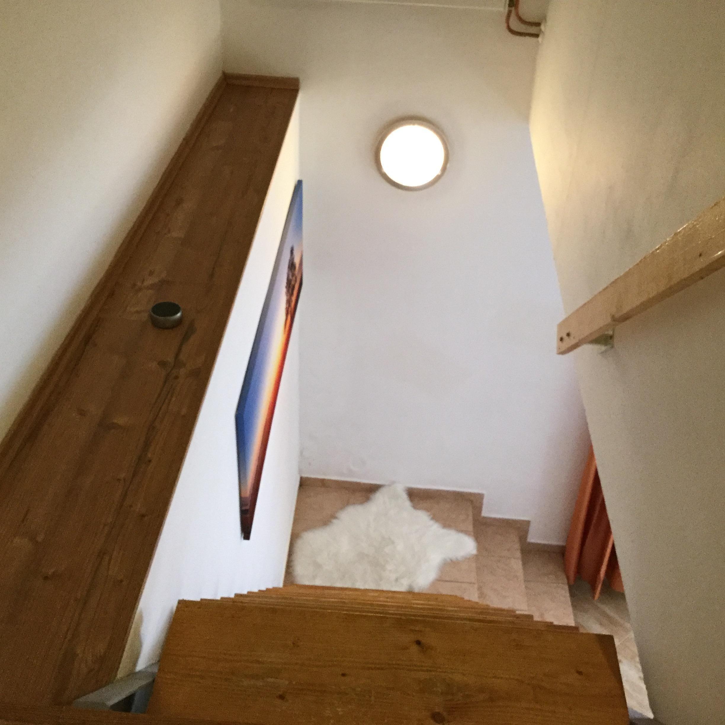 The ground floor of approx. 55 m² comprises the following rooms: living room with kitchen, flat-screen TV and double sofa bed; next to the living room, a fully equipped kitchen with cooker, oven, microwave, coffee maker and dining area. Next to the kitchen is a bathroom with shower and bidet. As the ceiling is very high, a first floor has been created with two bedrooms, one with a double bed and the second with two single beds.