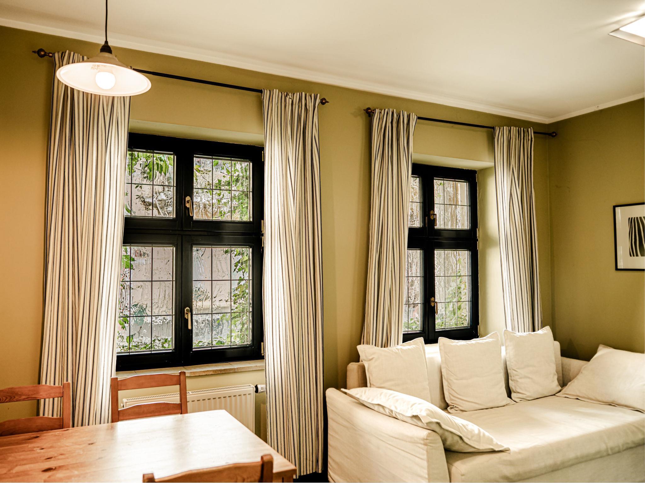 "Twain", 2-room apartment 38 m2 on 2nd floor. Beautiful and cosy furnishings: living/sleeping room with 1 pull-out bed (2 pers.), dining table and satellite TV. 1 room with 1 double bed. Kitchenette (2 hot plates, kettle, microwave, freezer). Shower/WC. Very beautiful view of the garden. Facilities: Internet (WiFi, free). Parking (fenced) at the house. Please note: suitable for families. Non-smokers only. Maximum 1 pet/ dog allowed. Fire extinguisher.