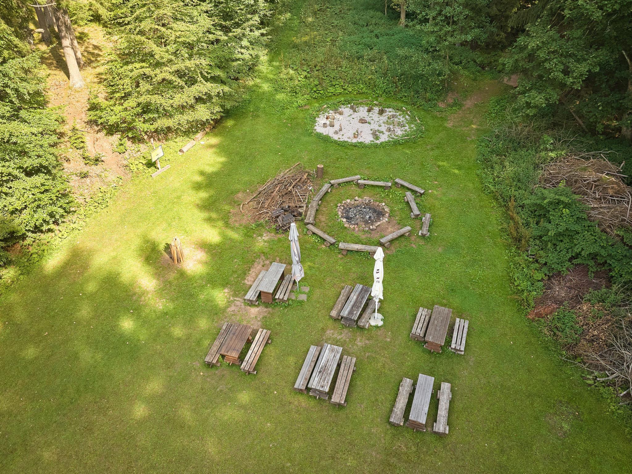 "Lesní plovárna B2", 1-room bungalow. Comfortable furnishings: living/sleeping room with 1 x 2 bunk beds, 1 double bed, Scandinavian wood stove, dining table and TV (flat screen). Kitchenette (2 hot plates, toaster, kettle, microwave, electric coffee machine, Capsules for coffee machine (Tchibo)). Shower/WC. Electric heating, wood heating. Terrace. Terrace furniture, barbecue (portable), deck chairs. Facilities: Internet (WiFi, free). Please note: suitable for families. Non-smoking house. 1 small pet/ dog allowed.