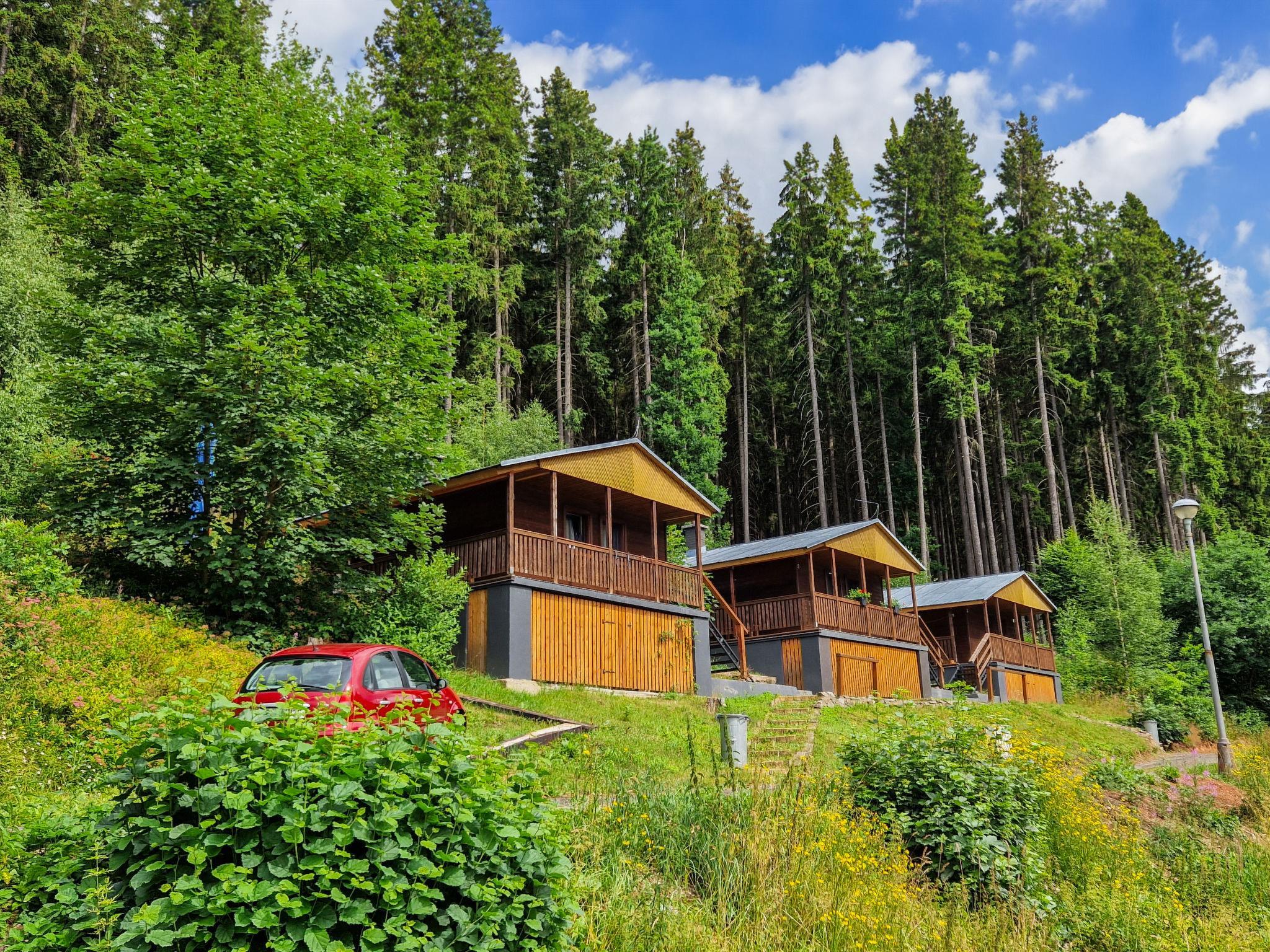 Comfortable bungalow detached. 7 houses in the resort. Outside the resort, in a quiet, sunny position, 50 m from the edge of the forest, 2 km from the skiing area. For shared use: natural state property, lawn for sunbathing, swimming pool (seasonal availability: 26.Jun. - 03.Sep.). Shower/WC in the pool area, table tennis, boccia, badminton, beach volleyball, barbecue, fireplace. Private: patio. In the complex: WiFi, billiard table, storage room for bicycles, sun terrace, storage room for skis. Parking at the house. E-charging station. Grocery 1.5 km, shopping centre 6 km, restaurant 5.5 km, bus stop "Mladé Buky" 1.5 km, railway station "Mladé Buky" 1.5 km, indoor swimming pool 10 km. Golf course (18 hole) 4 km, riding stable 3.5 km, walking paths from the house, cycle lane 50 m, ski rental 2.5 km, ski bus stop 50 m, ski school 2.5 km, children's ski school 2.5 km, sled run 2 km, cross country ski track 500 m, children's playground 50 m. Nearby attractions: zábavní park Balduv svet, 2.5 km, Rozhledna Eliška, tvrz Stachelberg 9 km, Stezka Korunami stromu Janské Lázne 10 km, Lanovka na Snežku, Pec pod Snežkou 18 km, Zoo Dvur Králové, Adršpach 28 km, Vyhlídkové lety Vrchlabí, Kuks 30 km. Well-known ski regions can easily be reached: Mladé Buky 2 km, Janské Lázne 9 km, Cerný Dul, Pec-Cerná hora 15 km. Hiking paths: Krkonošský národní park. Please note: the photograph shows a typical example.