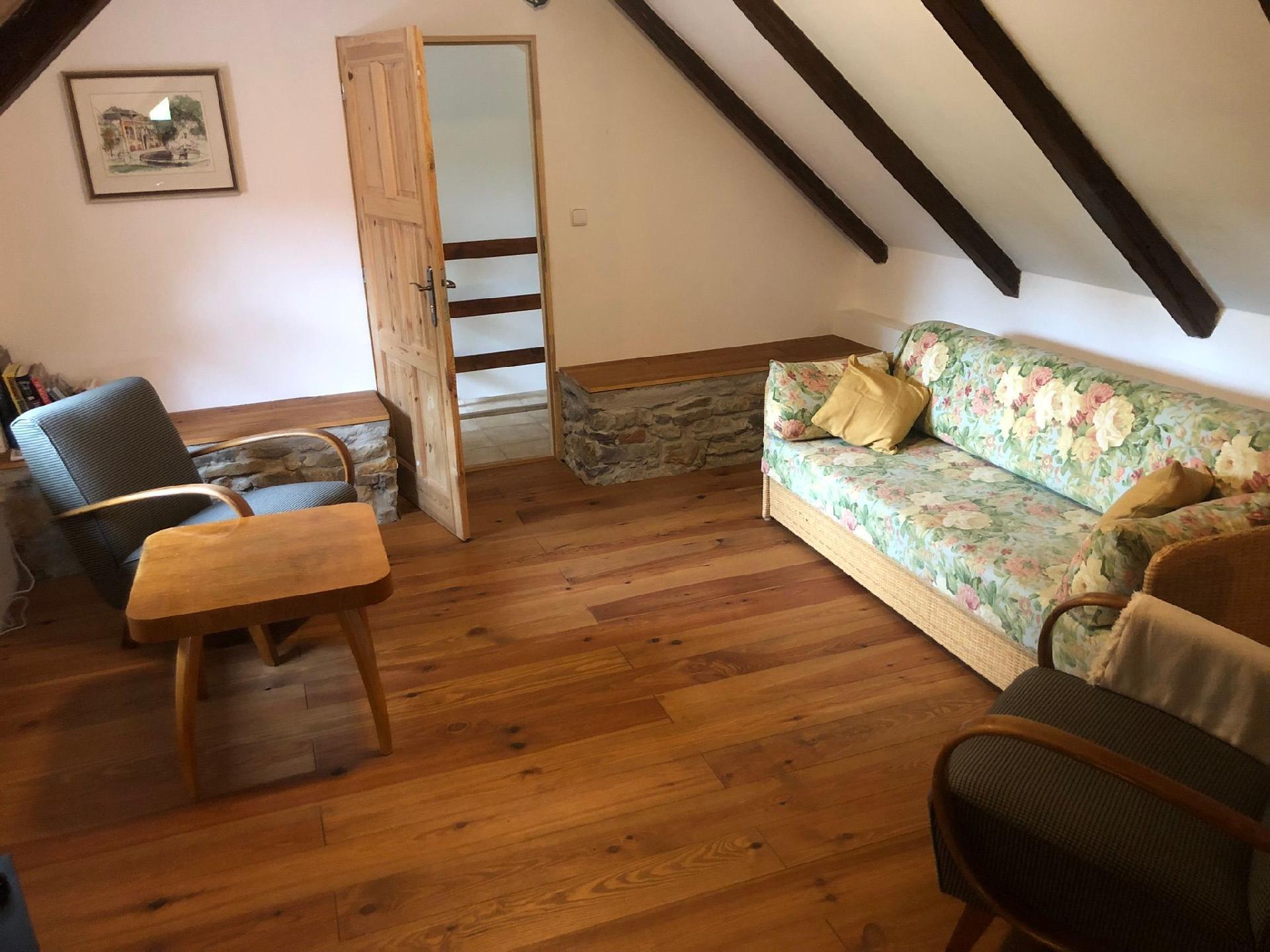 The village is surrounded by woods, fields and meadows, so the place is ideal for hiking and biking. In Dobrichovice, 5 km away, is river Berounka with easy access for swimming. Boat rental is also avialable there. Castle Karlstejn is only 3 km away by walk, 5 km by car. The bus stop is only 300 m from the house and the bus goes one direction to Prague and the other to Revnice (5 km), where the train to Prague centre runs every 30 minutes.