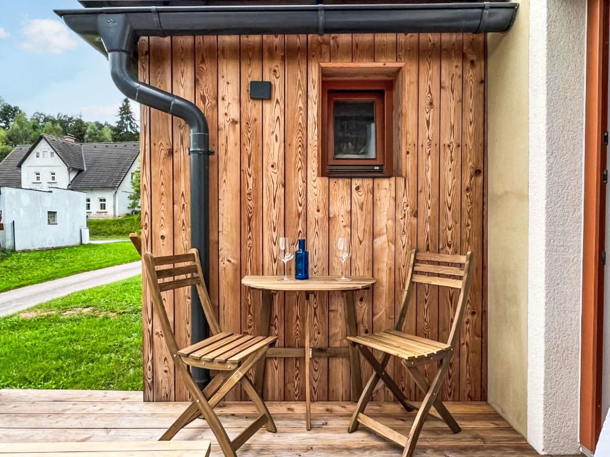 3-room cottage 65 m2. Object suitable for 2 adults + 3 children. Rustic and cosy furnishings: open living/dining room with Scandinavian wood stove, dining table, TV and DVD. Exit to the terrace. Kitchenette (oven, dishwasher, 4 ceramic glass hob hotplates, toaster, kettle, microwave, electric coffee machine). Shower, sep. WC. Heating. Upper floor: open gallery with 1 sofabed (length 180 cm), 1 double bed and Home cinema. 2nd upper floor: 1 small children's room with sloping ceilings with 2 beds (80 cm, length 180 cm). View of the mountains and the garden. Facilities: hair dryer. Internet (WiFi, free). Please note: suitable for families. Non-smokers only. Maximum 1 small pet/ dog allowed. Instead of an enclosed bedroom, some sleeping areas are located in an open-plan area (gallery, alcove, etc.).
