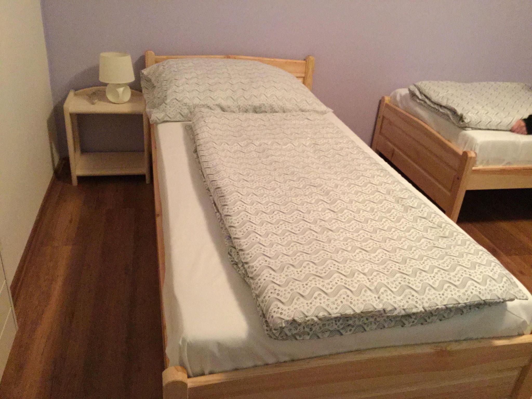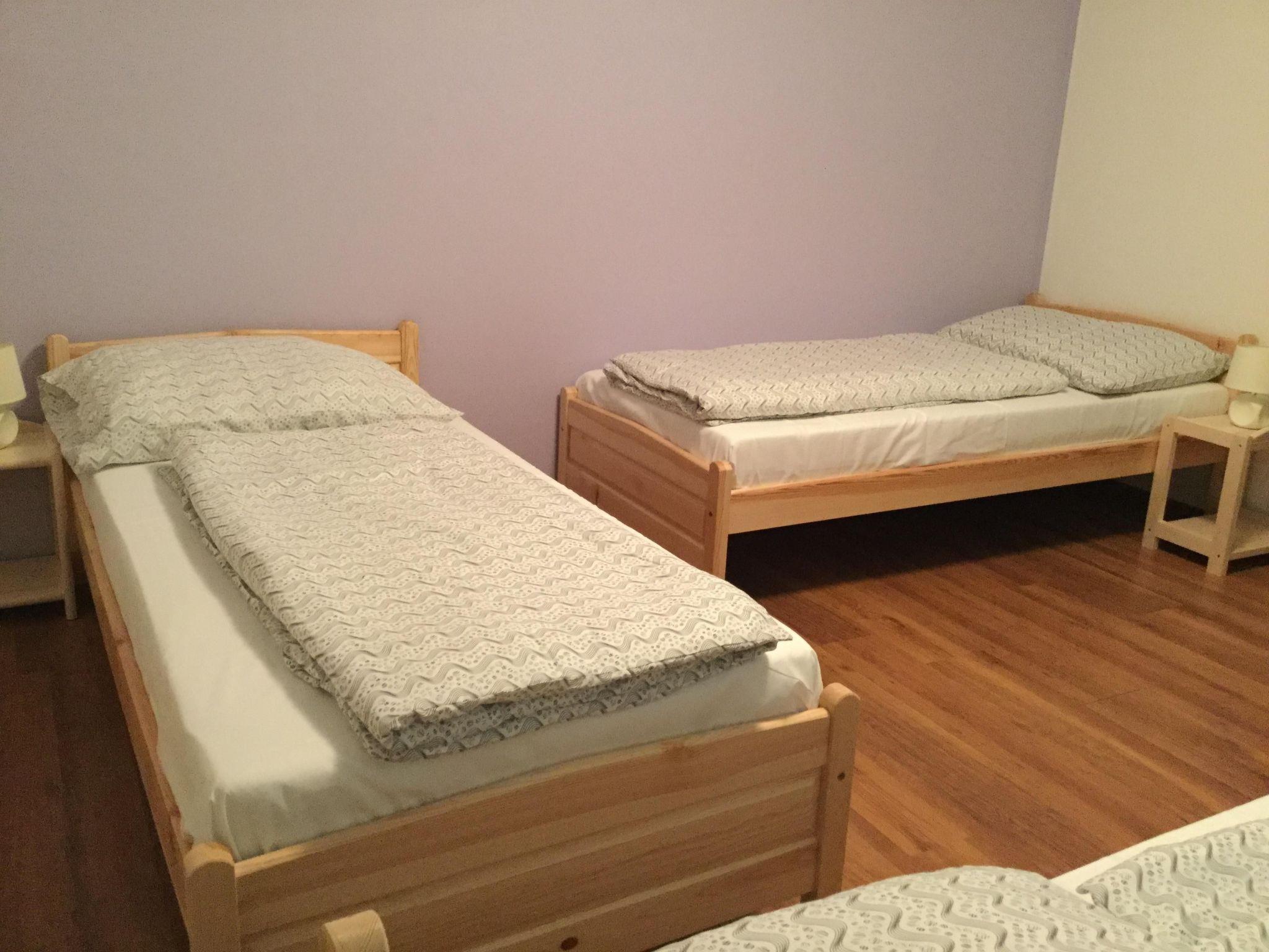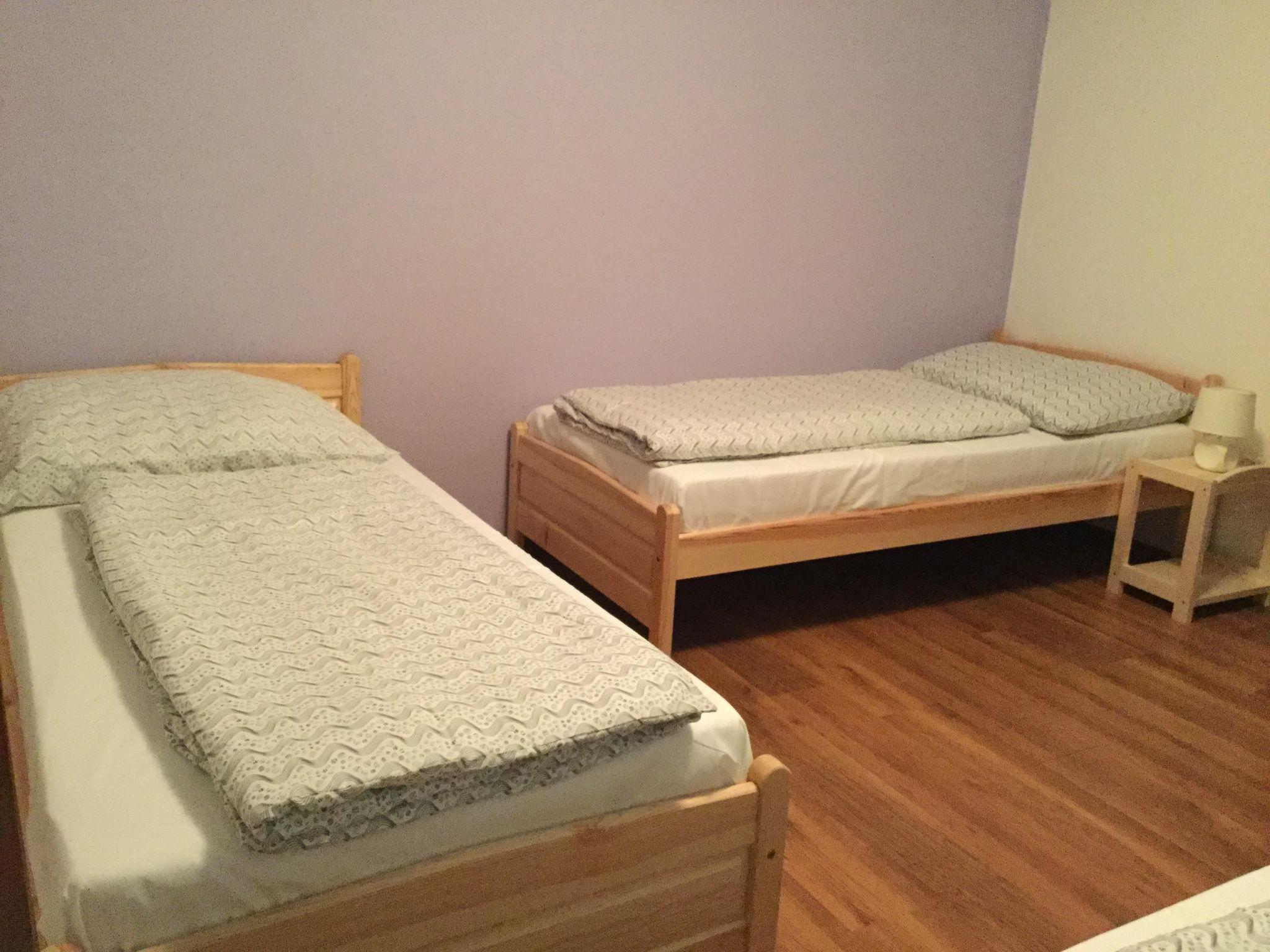 Entire house The house has one floor and a basement The basement has a large meeting room, a technical room and a laundry room The 5 bedrooms are on the first floor. All rooms are heated Sleeping accommodation One bedroom has a 200 m wide double bed The second bedroom has 2 90 cm wide beds The third bedroom has 3 90 cm wide beds The fourth bedroom has 3 90 cm wide beds The fifth bedroom has a 200 m wide single bed The living room has a sofa bed for one person, etc.