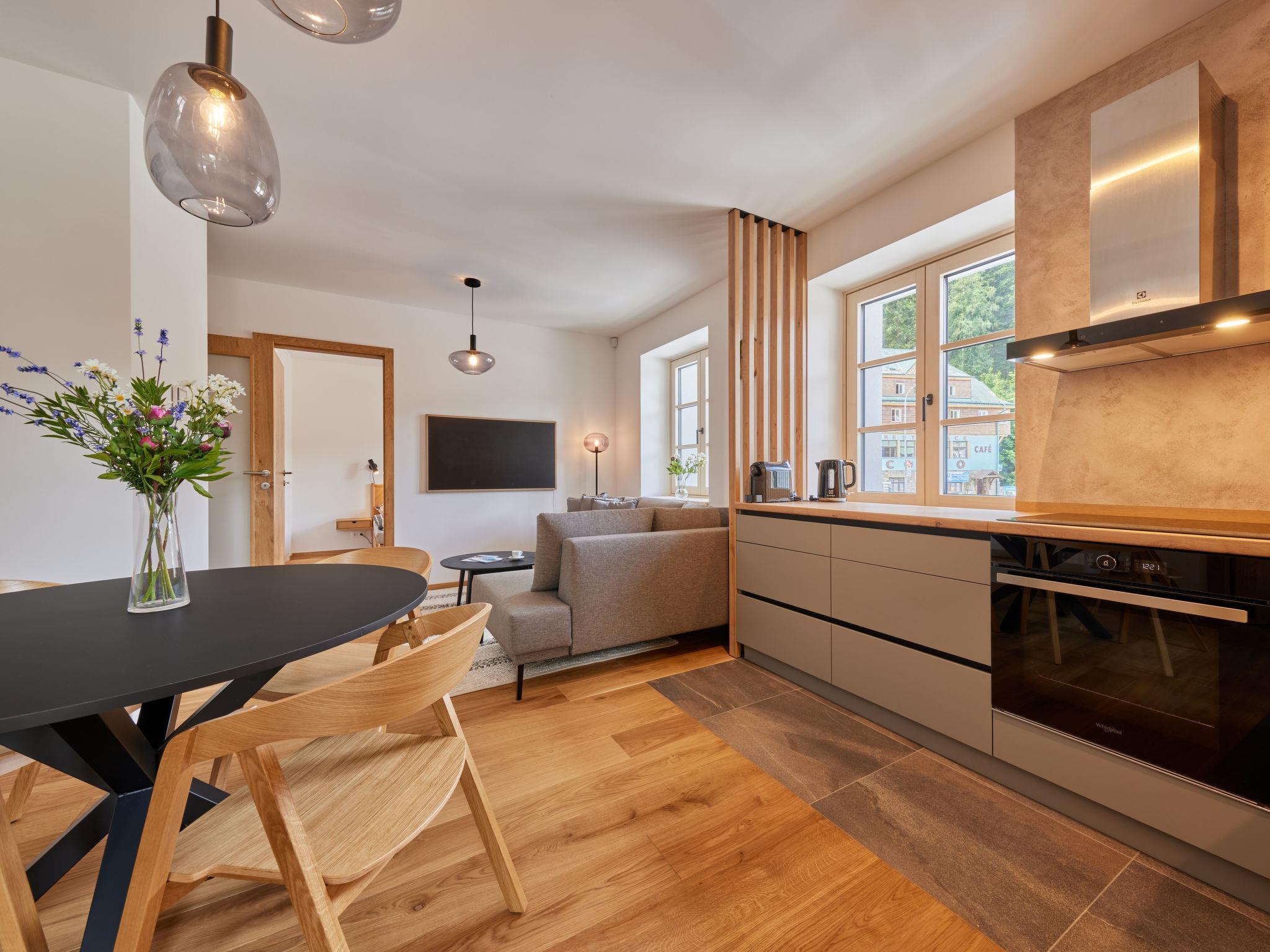 Modern, luxurious residence "Máj", 3 storeys, detached, renovated in 2023. In the centre of Pec pod Snežkou, 100 m from the edge of the forest, 1.3 km from the skiing area, 10 m from the river. In the house: storage room for skis, central heating system. Parking at the house. Shop 60 m, grocery 200 m, restaurant 60 m, bar, café 100 m, bicycle rental 500 m, pub garden 60 m, bus stop "Pec pod Snežkou" 300 m, indoor swimming pool 500 m. Sports centre 500 m, walking paths from the house, cycle lane 20 m, ski lift 1.3 km, chair lift 1.3 km, skisport facilities 1.3 km, ski rental 60 m, ski bus stop 200 m, ski school 1.3 km, children's ski school 1.3 km, cross country ski track 150 m, children's playground 400 m. Nearby attractions: Relaxpark, bobová dráha 400 m, Snežka (lanovka) 1.2 km, Obrí dul, Modrý dul, vodopády 3 km, Malá Úpa 8 km, Janské Lázne 15 km, Vrchlabí, Trutnov 30 km. Well-known ski regions can easily be reached: Pec pod Snežkou – Cerná Hora 1.3 km, Velká Úpa 2.5 km, Janské Lázne 15 km. Well-known lakes can easily be reached: Dolce 25 km. Hiking paths: Krkonošský národní park. Groups of teenagers on request only. The owner does not accept any youth groups.