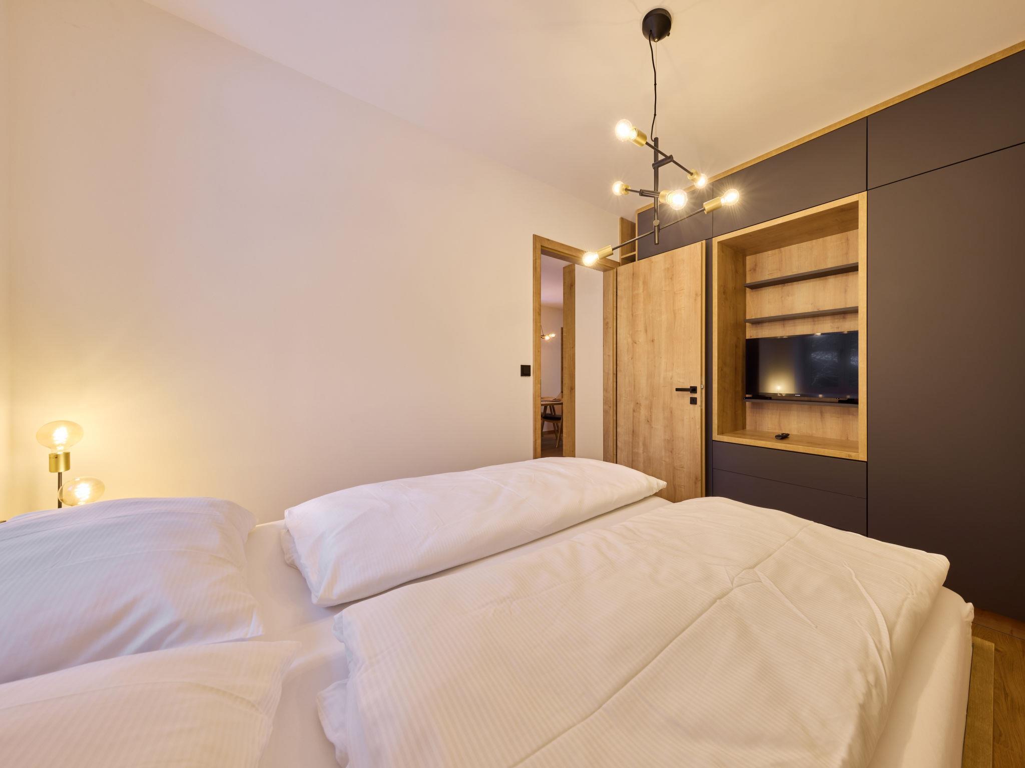 "Charming Mountain Oasis", 2-room apartment 52 m2 on 3rd floor. Spacious and bright, beautiful and luxurious furnishings: living/dining room with 1 double sofabed (140 cm, length 200 cm), dining table and TV (flat screen). 1 room with 1 double bed (180 cm, length 200 cm). Kitchenette (oven, dishwasher, 4 induction hot plates, kettle, microwave, freezer, electric coffee machine). Shower/bidet/WC. Heating. Facilities: Internet (WiFi, free). Parking (1 car). Please note: suitable for families. Non-smoking house. Maximum 1 small pet/ dog allowed.
