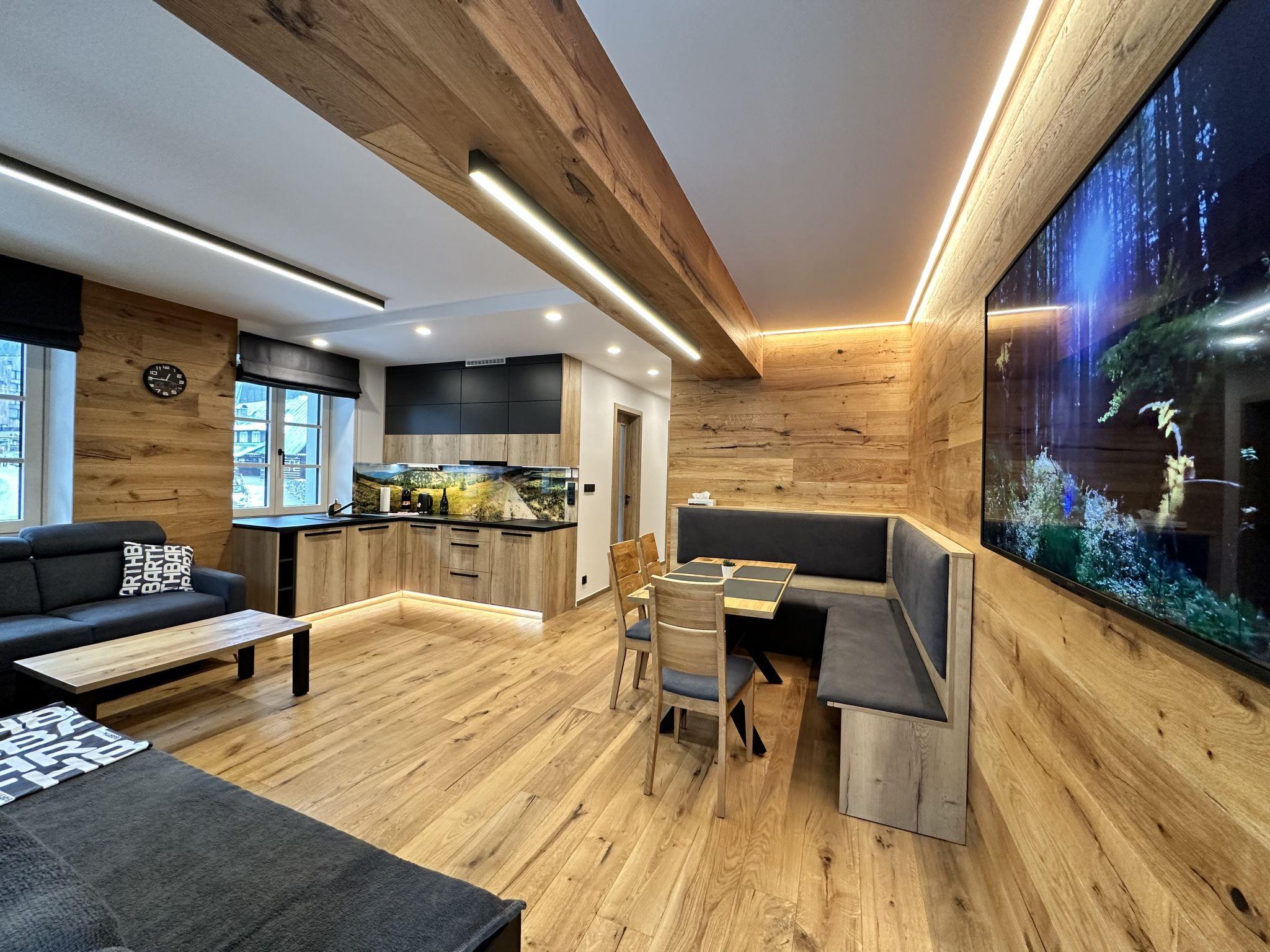 Modern, luxurious residence "Máj", 3 storeys, detached, renovated in 2023. In the centre of Pec pod Snežkou, 100 m from the edge of the forest, 1.3 km from the skiing area, 10 m from the river. In the house: storage room for skis, central heating system. Parking at the house. Shop 60 m, grocery 200 m, restaurant 60 m, bar, café 100 m, bicycle rental 500 m, pub garden 60 m, bus stop "Pec pod Snežkou" 300 m, indoor swimming pool 500 m. Sports centre 500 m, walking paths from the house, cycle lane 20 m, ski lift 1.3 km, chair lift 1.3 km, skisport facilities 1.3 km, ski rental 60 m, ski bus stop 200 m, ski school 1.3 km, children's ski school 1.3 km, cross country ski track 150 m, children's playground 400 m. Nearby attractions: Relaxpark, bobová dráha 400 m, Snežka (lanovka) 1.2 km, Obrí dul, Modrý dul, vodopády 3 km, Malá Úpa 8 km, Janské Lázne 15 km, Vrchlabí, Trutnov 30 km. Well-known ski regions can easily be reached: Pec pod Snežkou – Cerná Hora 1.3 km, Velká Úpa 2.5 km, Janské Lázne 15 km. Well-known lakes can easily be reached: Dolce 25 km. Hiking paths: Krkonošský národní park. Groups of teenagers on request only. The owner does not accept any youth groups.