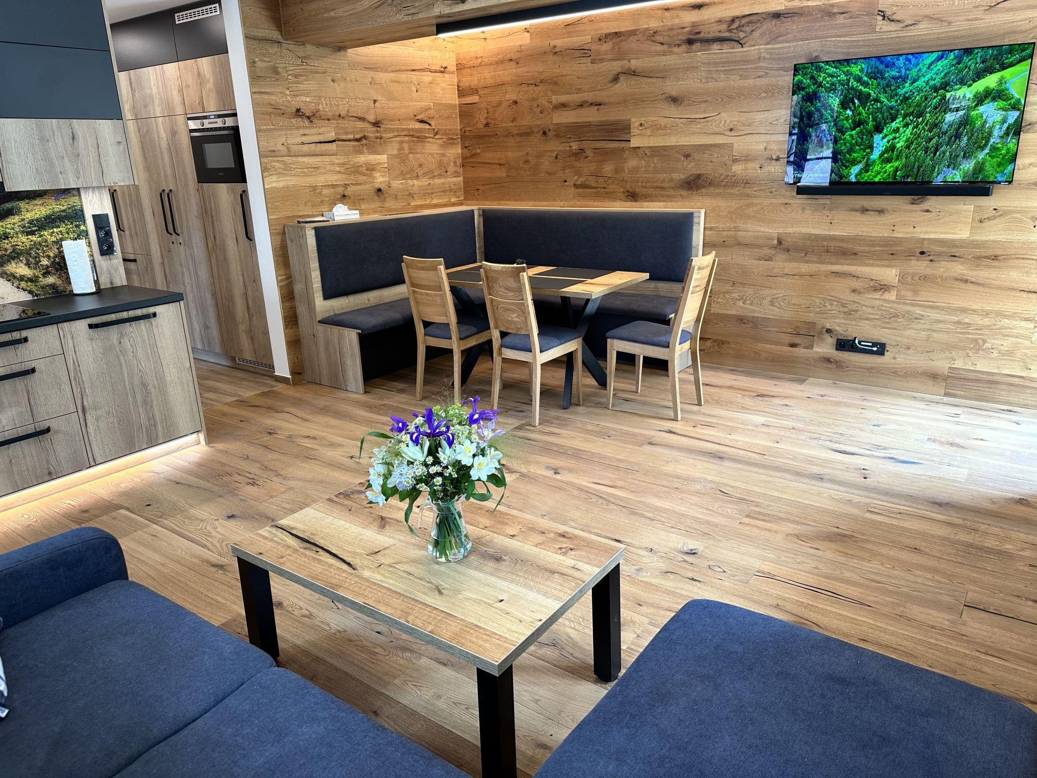 2-room apartment on 1st floor. Spacious, luxurious furnishings: living room with 1 double sofabed, dining table and TV. Exit to the terrace. 1 room with 1 double bed and 1 pull-out bed. Kitchenette (oven, dishwasher, 4 ceramic glass hob hotplates, microwave, freezer, electric coffee machine). Shower/WC. Large terrace. Terrace furniture. Beautiful view of the countryside. Facilities: Internet (WiFi, free). Parking. Please note: suitable for families. Non-smokers only.