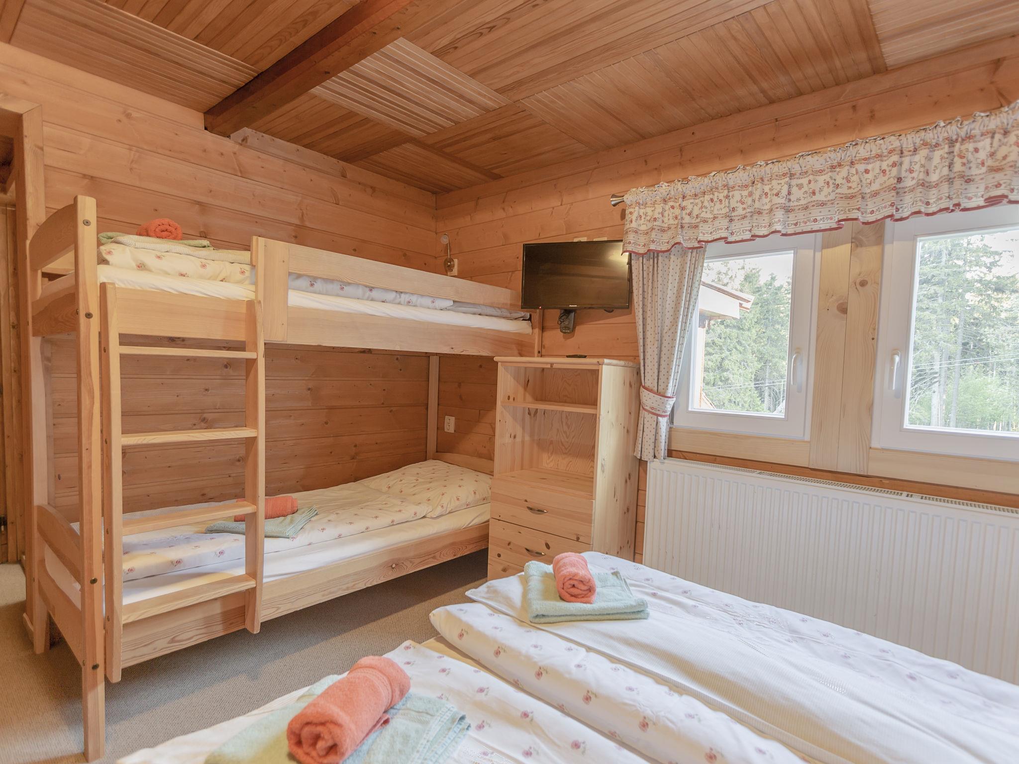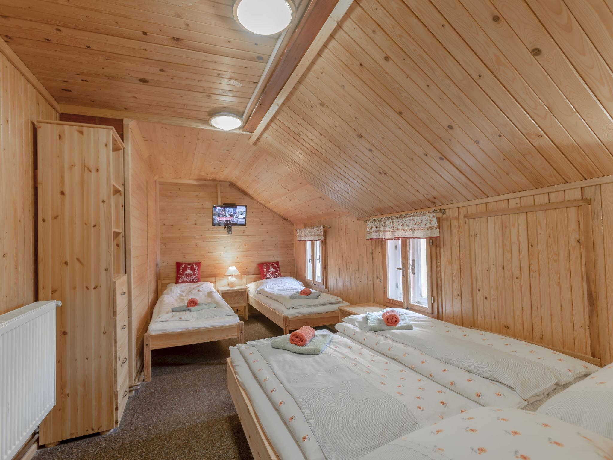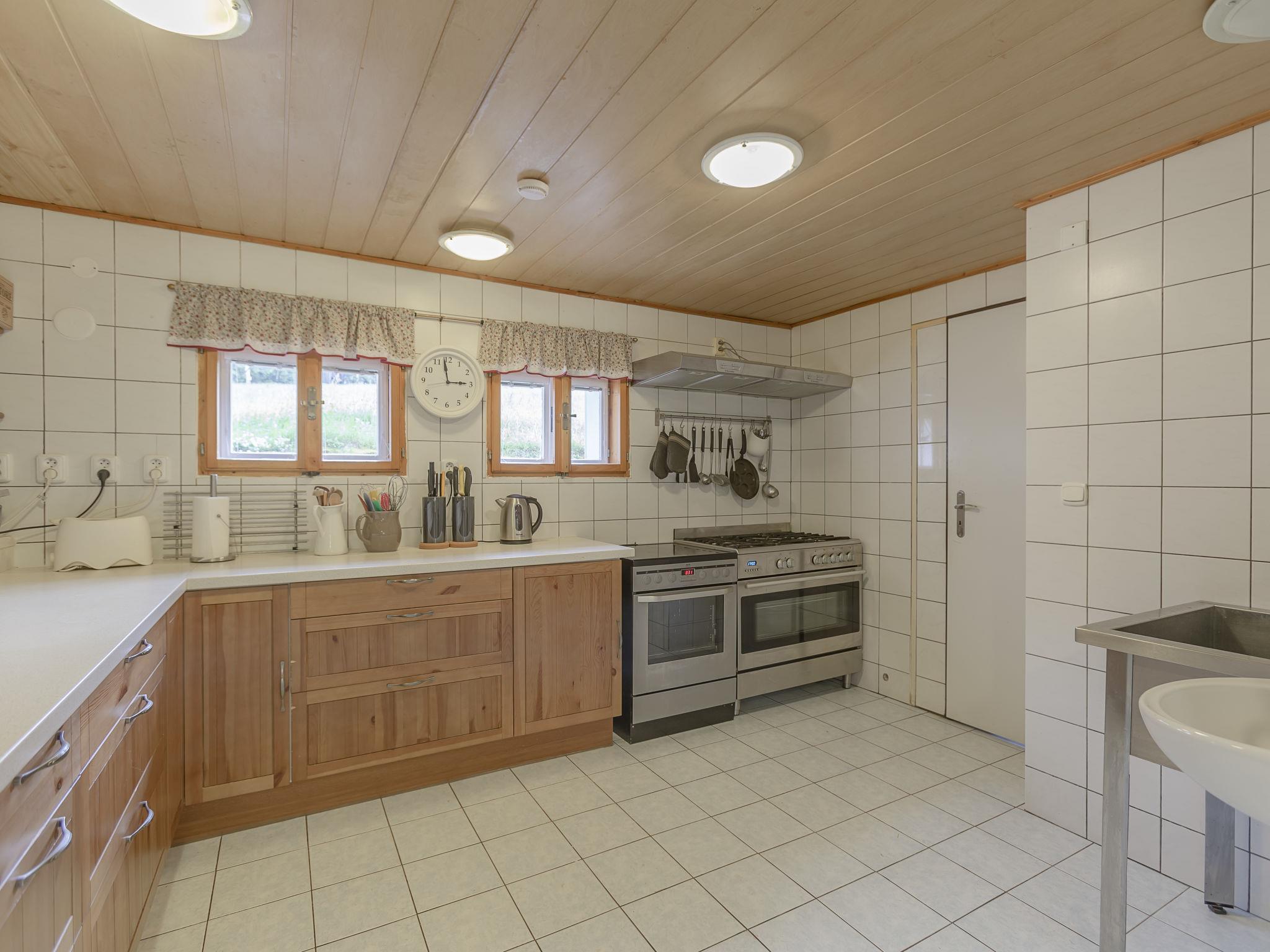 9-room chalet on 3 levels. Very beautiful and cosy furnishings: large living/dining room with dining table and TV. 1 room with 1 double bed and shower/WC. 1 room with 1 bed, 1 double bed and shower/WC. 1 room with 1 x 2 bunk beds, 1 double bed and shower/WC. 1 room with 2 beds, 1 double bed and shower/WC. 1 room with 1 bed and 1 x 2 bunk beds, 1 double bed and shower/WC. 1 room with 1 bed and 1 x 2 bunk beds, 1 double bed, shower/WC and bath/shower/WC. Playroom. Large kitchen (oven, dishwasher, 4 ceramic glass hob hotplates, 4 gas rings, toaster, kettle, microwave, electric coffee machine). Top floor: 1 small room with sloping ceilings with 2 sleeping facilities. Large terrace. Terrace furniture, barbecue. Beautiful panoramic view of the countryside. Facilities: washing machine, dryer, baby cot. Internet (WiFi, free). Please note: suitable for families. Non-smokers only. Maximum 1 pet/ dog allowed. When there are less than the maximum number of guests staying at the property, not all of the bedrooms will be available for use.