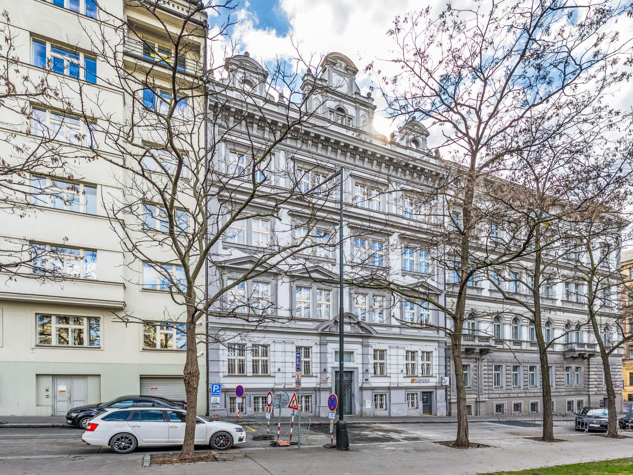 Very beautiful, historical residence "Celakovsky", 6 storeys. In the centre of Praha, in a central, busy position, 1.8 km from the river. In the house: lift, central heating system. Linen change (suppl. charge extra). Towel change (suppl. charge extra). Room cleaning on request (extra). Public parking extra. Shop, grocery, supermarket, shopping centre, restaurant, bar, café, pedestrian zone 200 m, tram "Muzeum" 300 m, bus stop "Praha, ÚAN Florenc" 1.7 km, railway station "Praha, hlavní nádraží" 350 m, underground station "Muzeum" 150 m, park "Riegerovy sady" 700 m, indoor swimming pool 1 km. Tennis 2.4 km, indoor tennis centre 2.4 km, minigolf 1 km, sports centre 1.5 km, children's playground 600 m. Nearby attractions: Václavské námestí 200 m, Karluv most 2 km, Staromestské námestí, Orloj 1500 km, Pražský hrad, Petrínská rozhledna 3 km, Zoo 7 km, Vyšehrad 3 m, Karlštejn 30 km, Krivoklát 50 km. Well-known lakes can easily be reached: vodní nádrž Džbán 10 km, Hostivarská prehrada 13 km, Velká Amerika 33 km. Hiking paths: Stromovka 4 km, Prokopské údolí 9 km, Divoká Šárka 11 km.