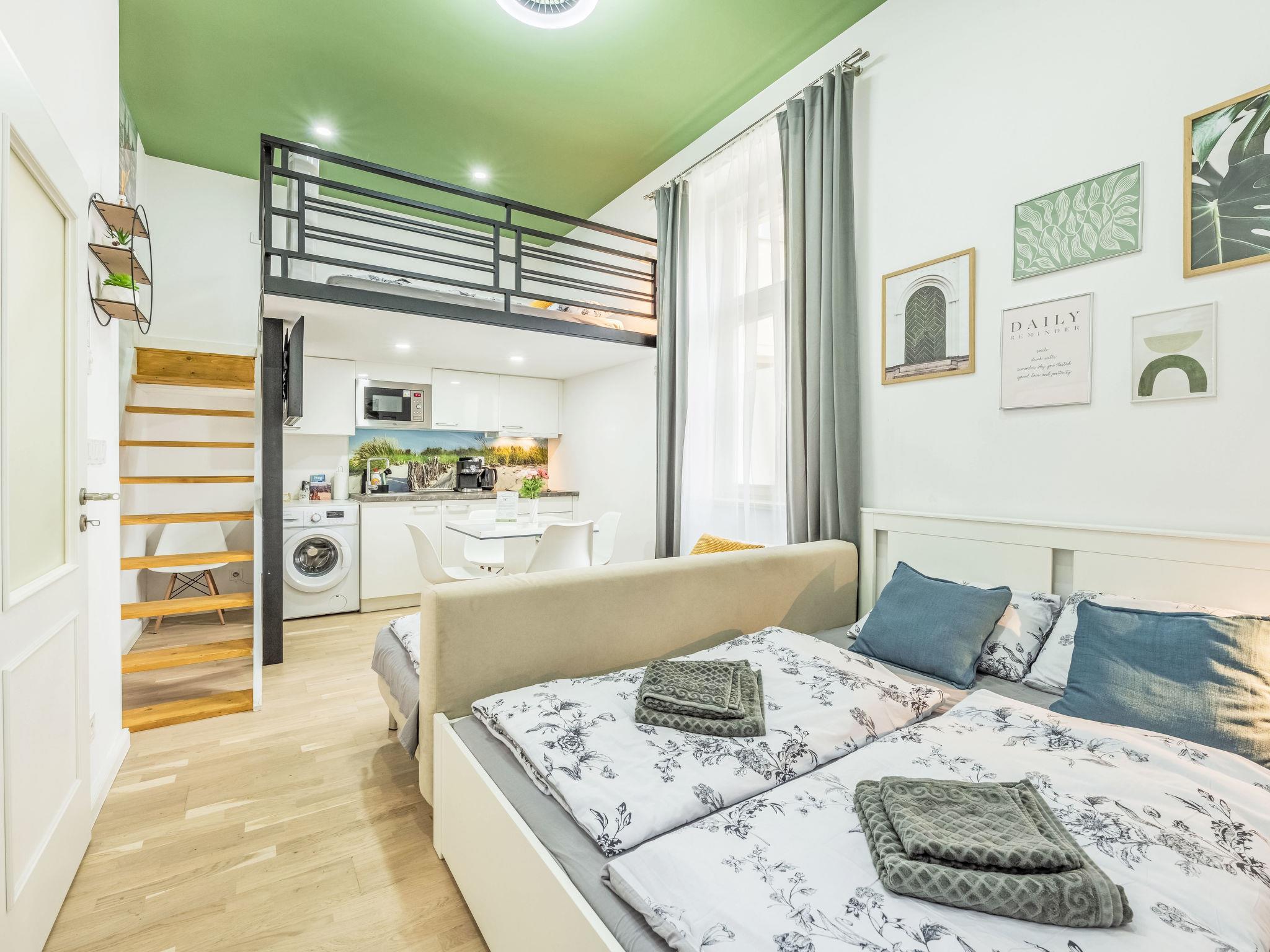 2-room apartment 32 m2 on 2nd floor. Bright, fully renovated, very beautiful and modern furnishings: entrance hall. Living/dining room with 1 sofabed, 1 double bed, dining table and TV. Open small gallery with 2 sleeping facilities. Kitchenette (2 induction hot plates, toaster, kettle, microwave, freezer, electric coffee machine). Shower/WC. Facilities: washing machine, baby cot, hair dryer. Internet (WiFi, free). Please note: suitable for families apartment courtyard side. Non-smokers only. Maximum 1 pet/ dog allowed. Smoke alarm. Instead of an enclosed bedroom, some sleeping areas are located in an open-plan area (gallery, alcove, etc.).