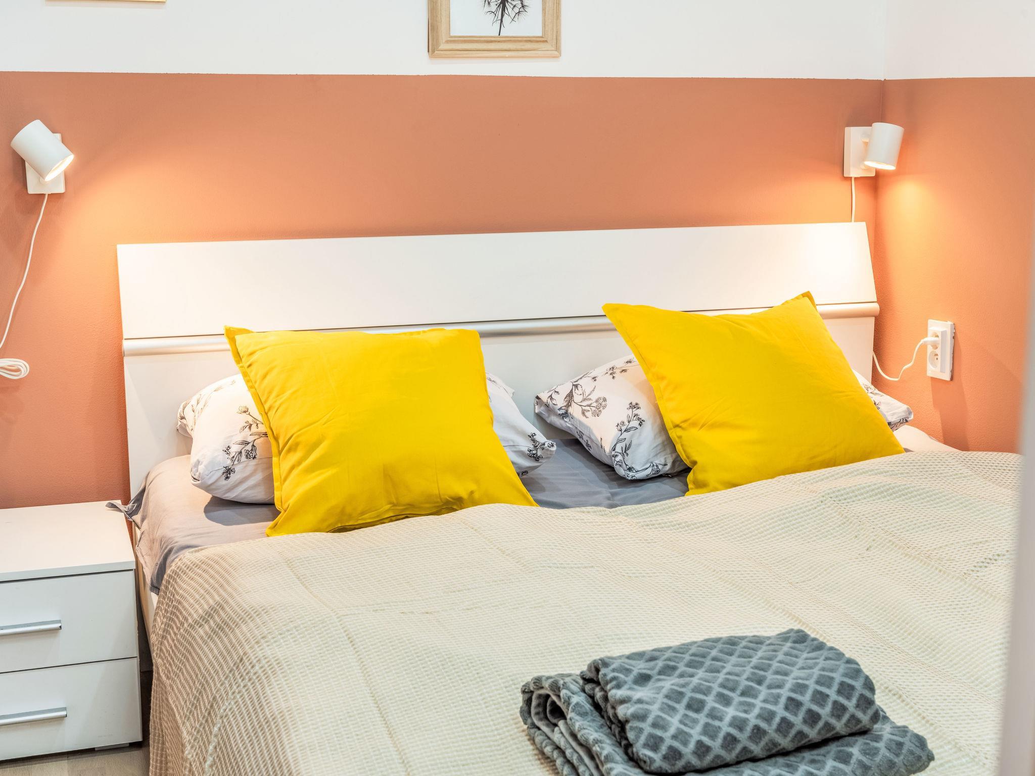 2-room apartment 39 m2 on 4th floor. Bright, fully renovated, very beautiful and modern furnishings: entrance hall. Living/dining room with 1 double bed, dining table and TV. 1 room with 2 double beds. Kitchenette (2 induction hot plates, toaster, kettle, microwave, freezer, electric coffee machine). Shower/WC. Facilities: washing machine, baby cot, hair dryer. Internet (WiFi, free). Please note: suitable for families apartment courtyard side. Non-smokers only. Maximum 1 pet/ dog allowed. Smoke alarm.