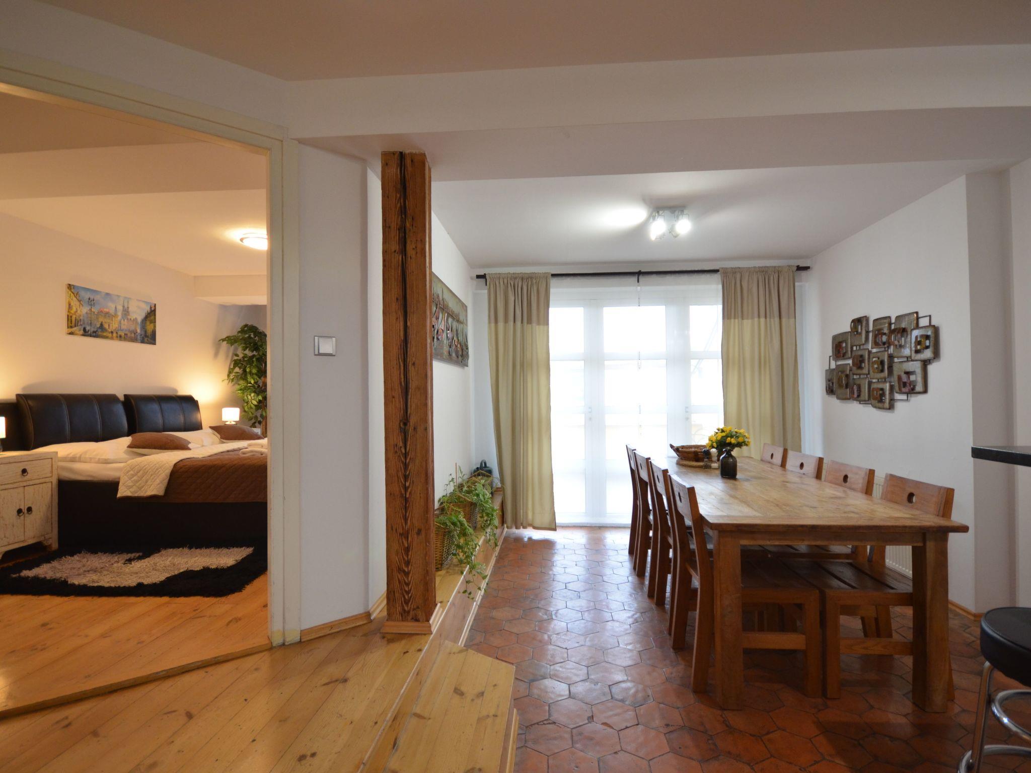 It is a superb flat with enough space for 8 people to turn it into a holiday home in Prague. The flat is fully equipped with everything you need for a comfortable stay. It is the perfect place for an unforgettable stay in this amazing city. Guests will appreciate the high standards and excellent facilities on offer here at a surprisingly affordable price. The nearest metro station is "Staromestska", from where you can easily reach all of Prague. The flat is on the fifth floor of a building without a lift. The beauty and excellent location of this flat will make you forget about stairs, you can expect the best from this unique flat. Property description: 4 bedrooms, large living room, dining area, kitchen, 2 bathrooms, separate guest WC, study area, dressing room and terrace. Bed layout: 4 king-size beds and 3 single beds. Layout: This flat has two levels. On the first floor, you will find the entrance hall, a large living room, 2 bedrooms, a first bathroom, a kitchen, a dining area and a fantastic terrace. Upstairs you have access to 2 bedrooms, the second bathroom and you'll also appreciate the large dressing room for storing clothes. Highlights: Air conditioning, WIFI, large smart satellite TV, Blu-ray DVD player, Bluetooth speaker for connecting iPods, MP3 player, Italian espresso machine, washing machine, hairdryer, tumble dryer and iron/ironing board. Medical and anti-allergy mattresses, double-sided oval make-up mirror, hairdryer, digital scales and safe. Included in the price: Coffee beans and trimmings, variations of Pickwick teas (black tea, green tea and a wide selection of flavoured teas), sugar, salt, pepper, chilli, a selection of premium spices, olive oil, balsamic vinegar, shower gel, soap, washing machine and dishwasher capsules. Special features: Billiards for your enjoyment. HOUSE RULES: IMPORTANT NOTICE FOR GROUPS UNDER 40: PLEASE CONTACT ME BEFORE BOOKING. Please note that our flat is definitely NOT suitable for youth groups. Parties of any kind (hen parties, stag parties, etc.) are not permitted in the flat. STRICTLY FORBIDDEN. Hostesses and escort girls are not accepted. STRICTLY FORBIDDEN. No smoking in the flat. We really are not flexible on these points. Due to serious problems with neighbours, we have to enforce this condition and will not accept such travellers on arrival. If in doubt, please contact us first.