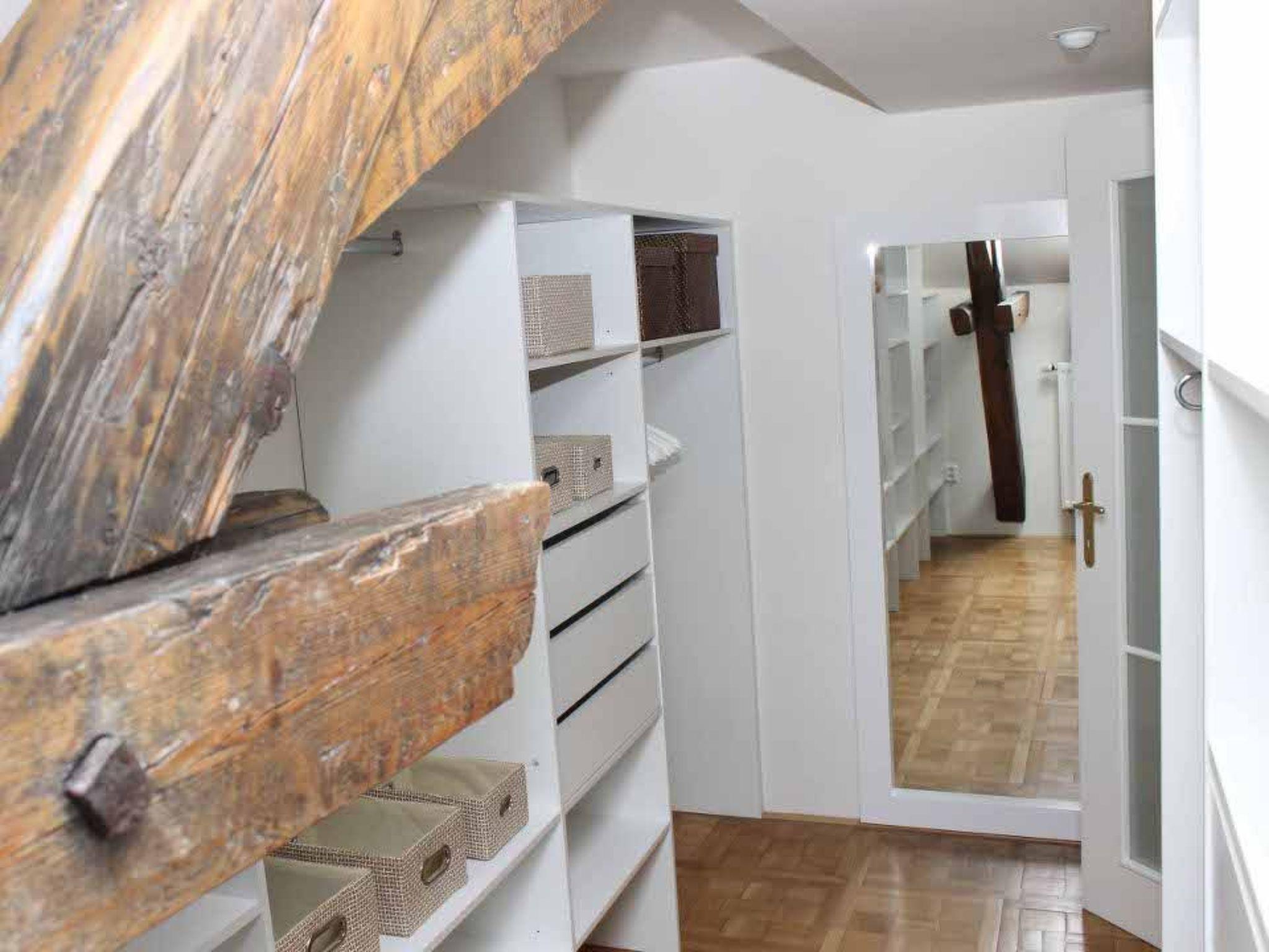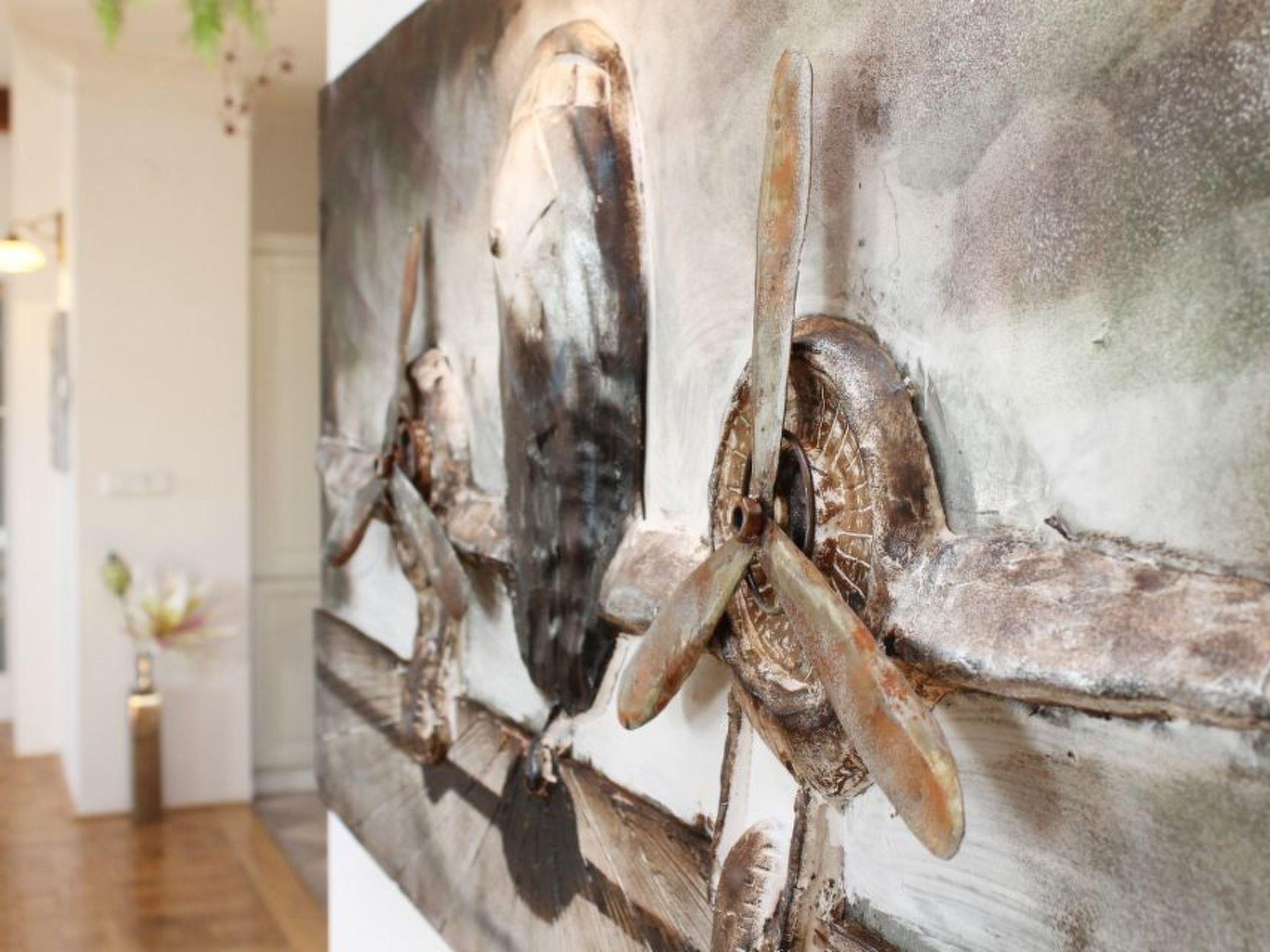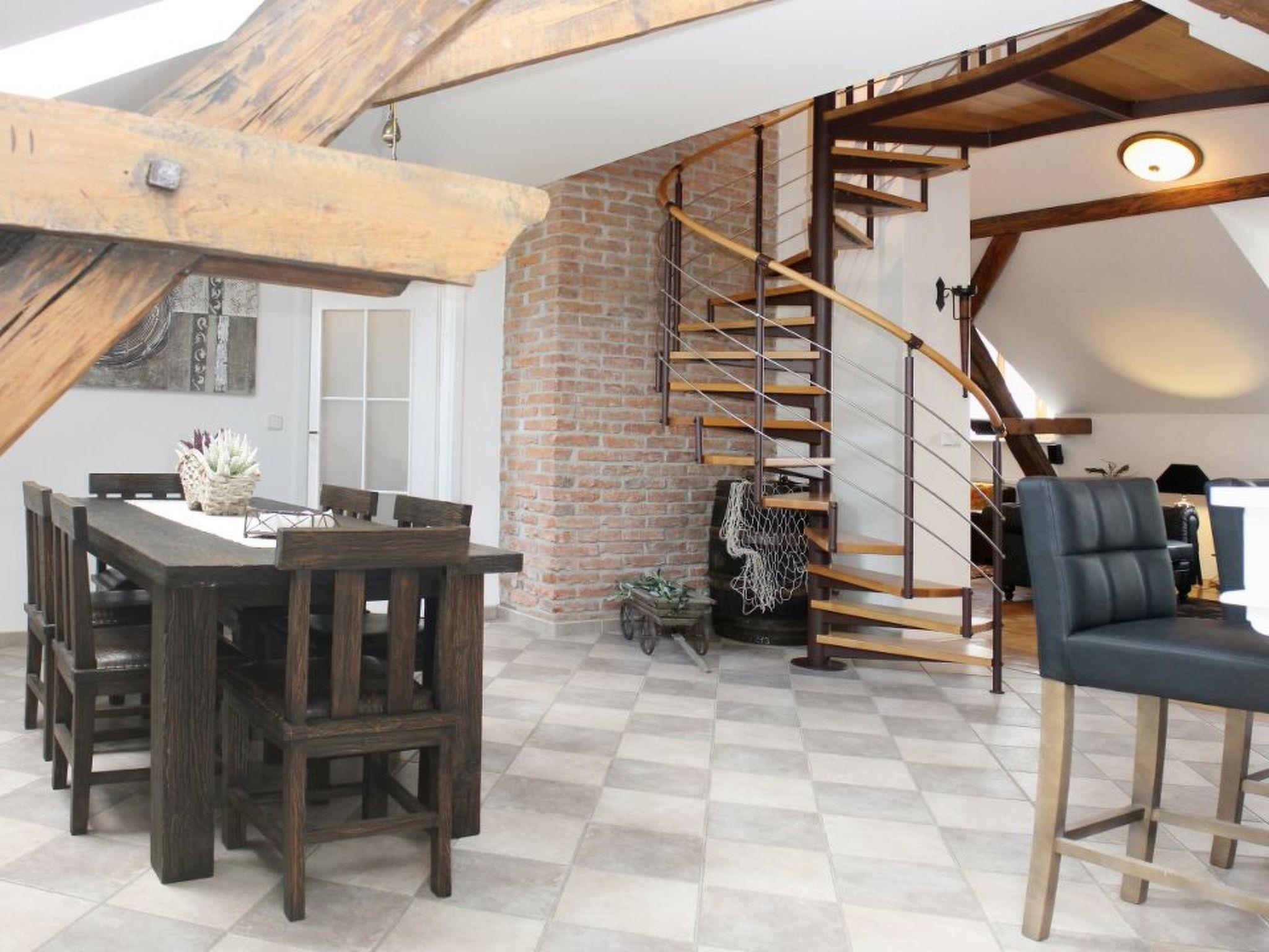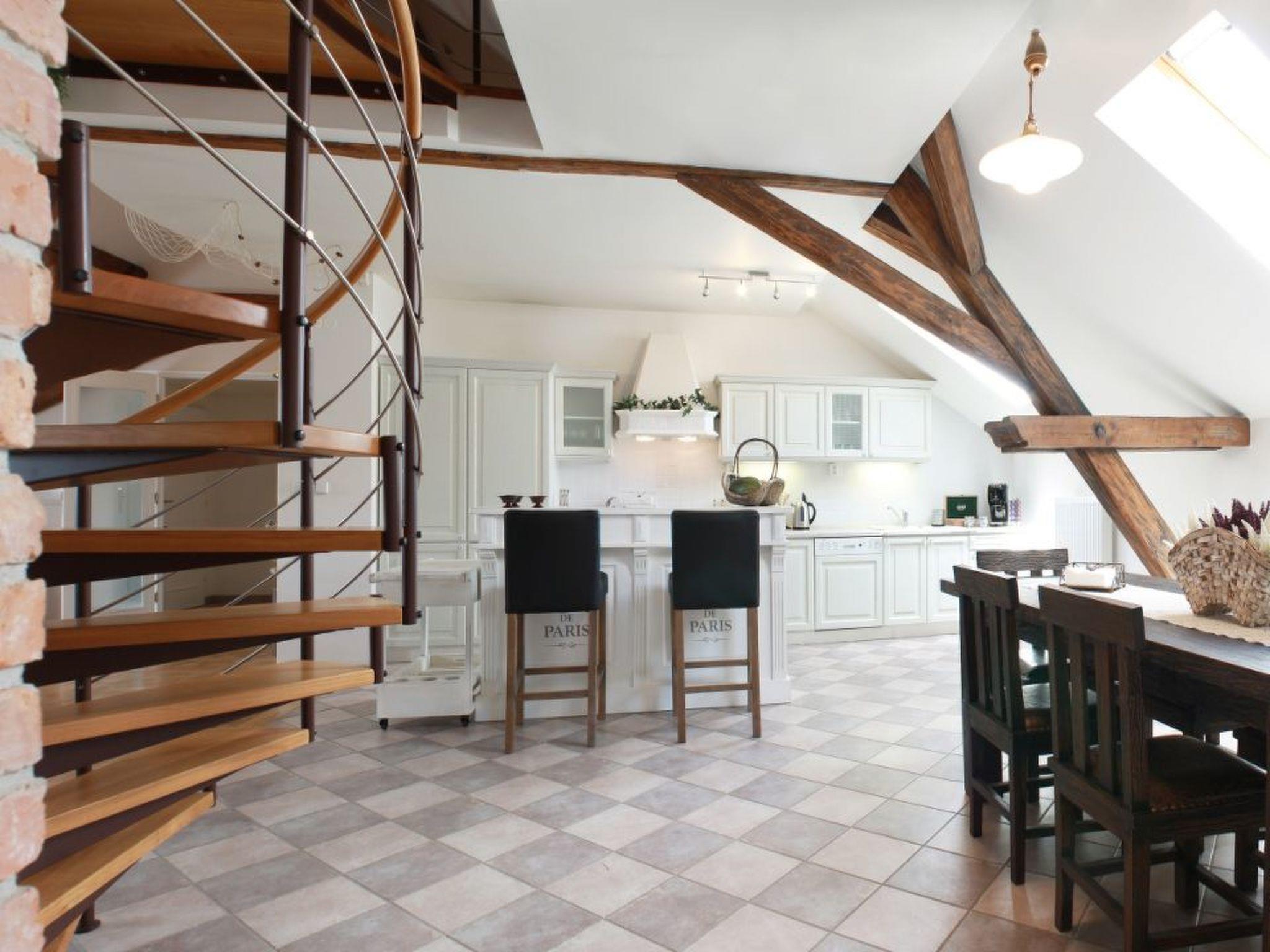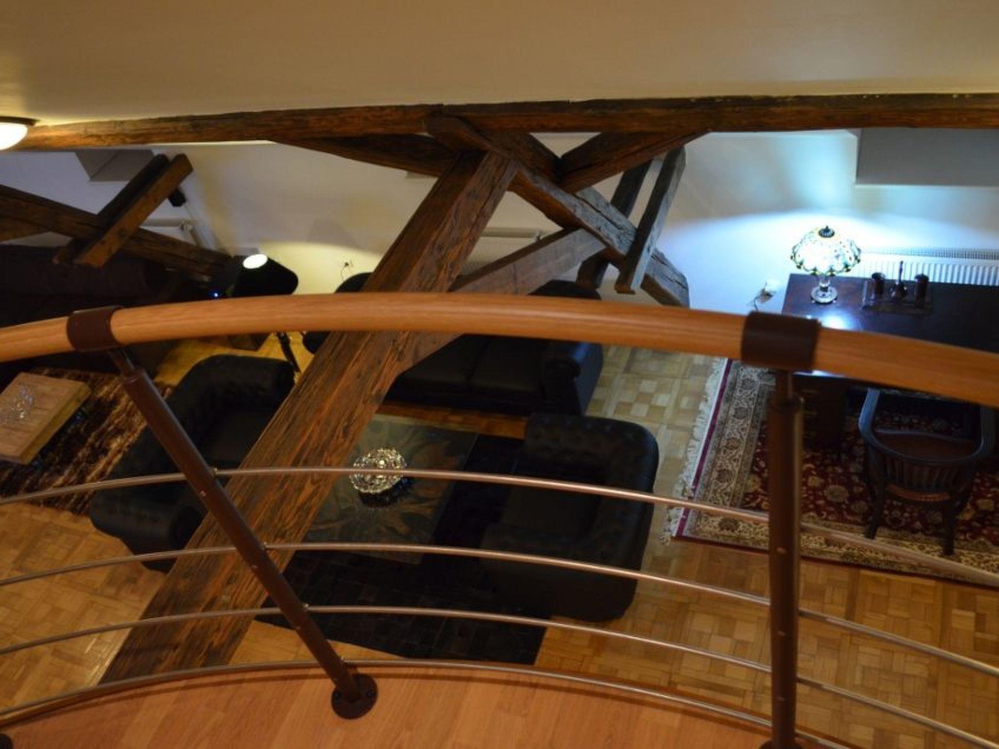 Layout: This is one of the largest flats in Prague, offering 240 m2 over two levels. On the main level are the first bedroom and en-suite bathroom, the second bedroom, the large living room, dining room and kitchen. The third bedroom is on the upper level and has its own bathroom with shower and WC. Finally, there is another separate WC at the entrance to the flat.