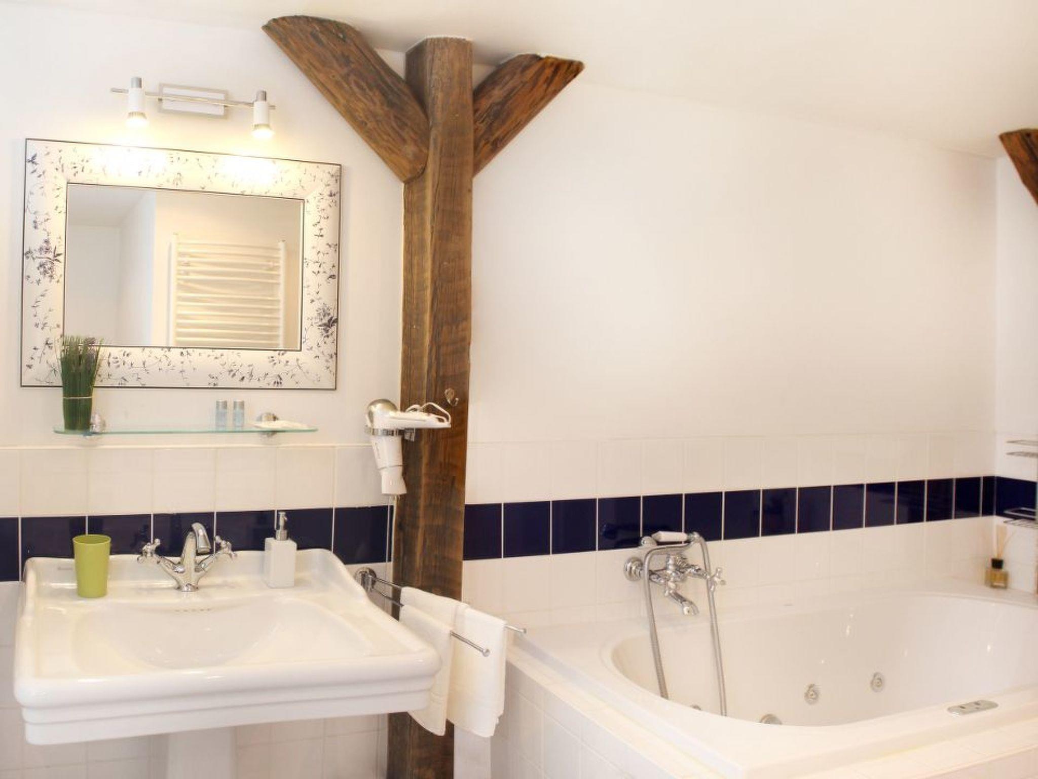 Private bathroom: with whirlpool bath, walk-in shower, washbasin, bidet, WC and digital bathroom scale.