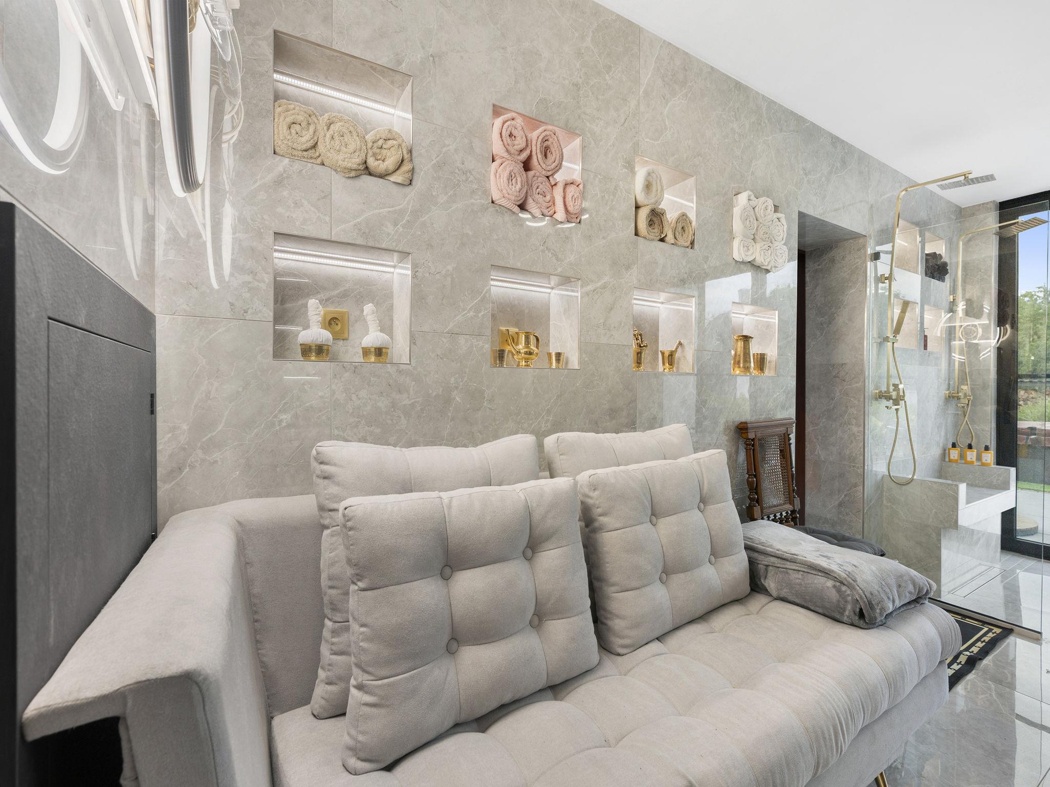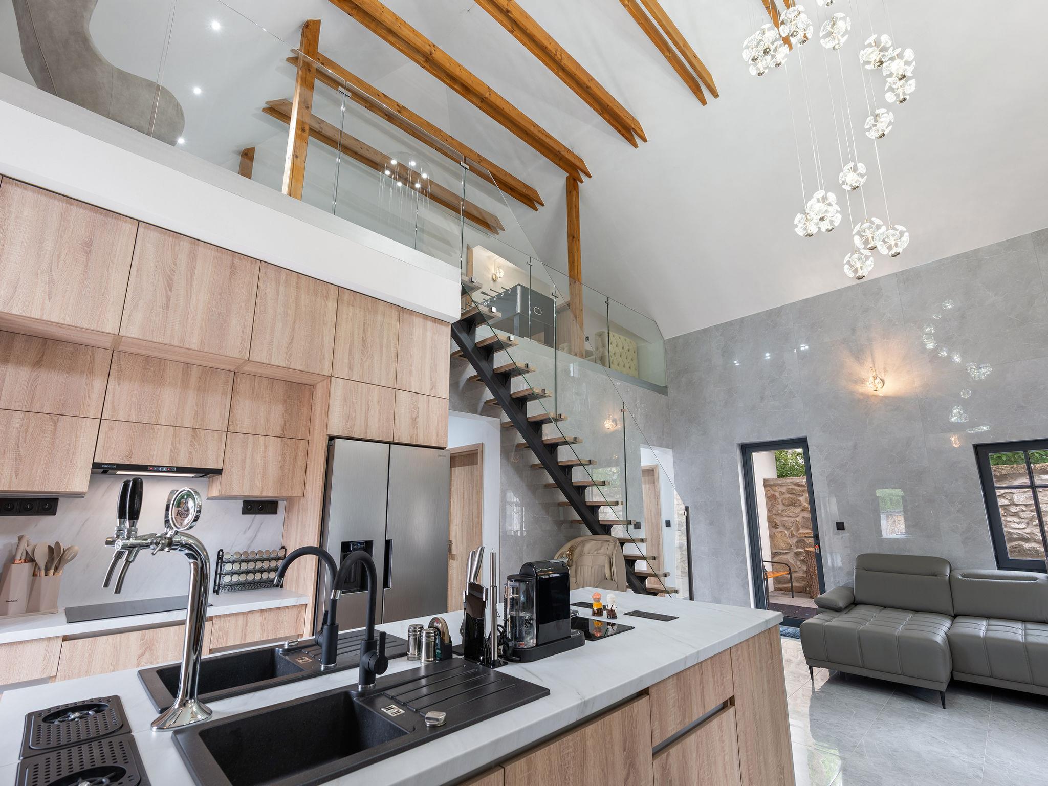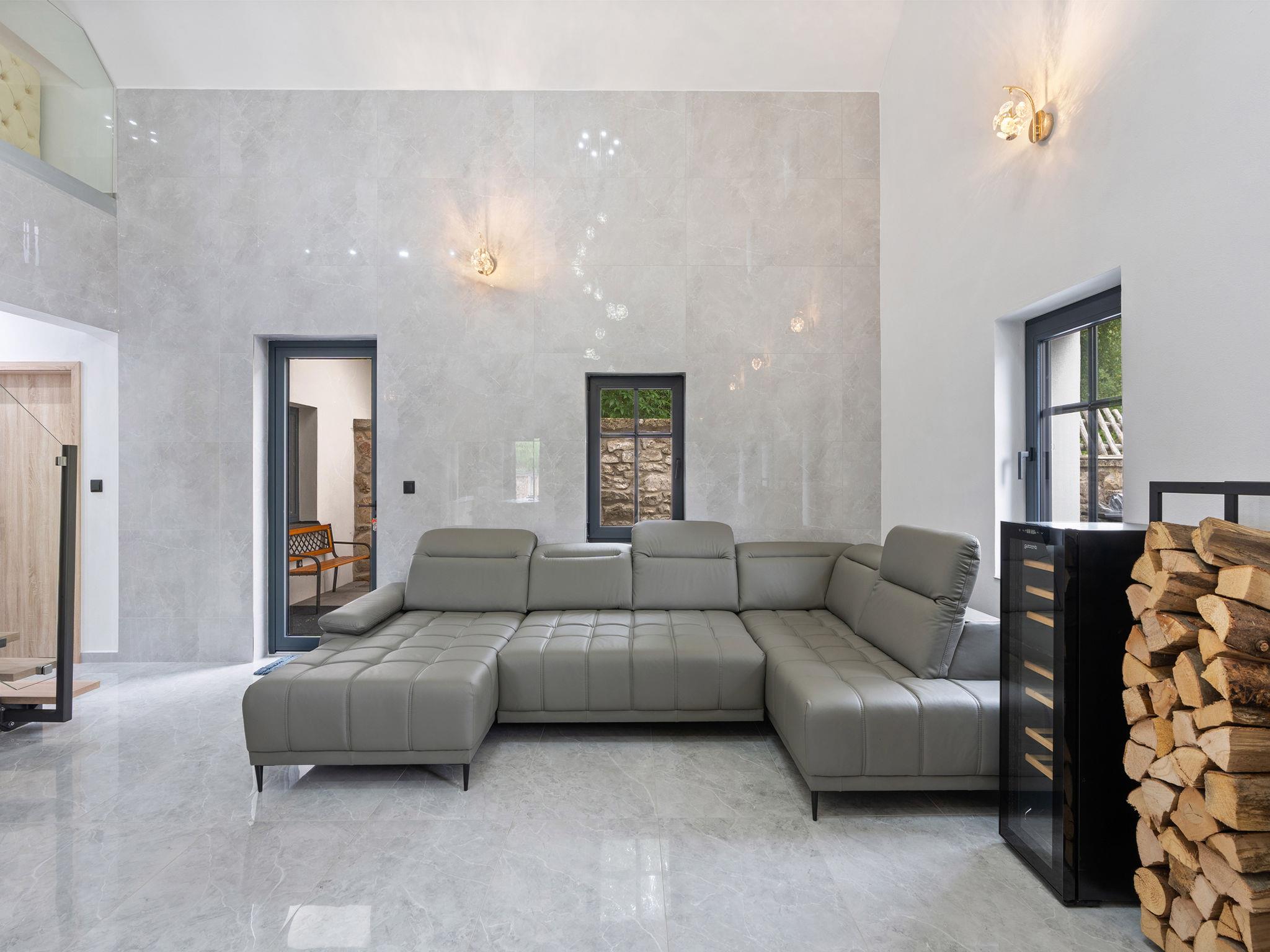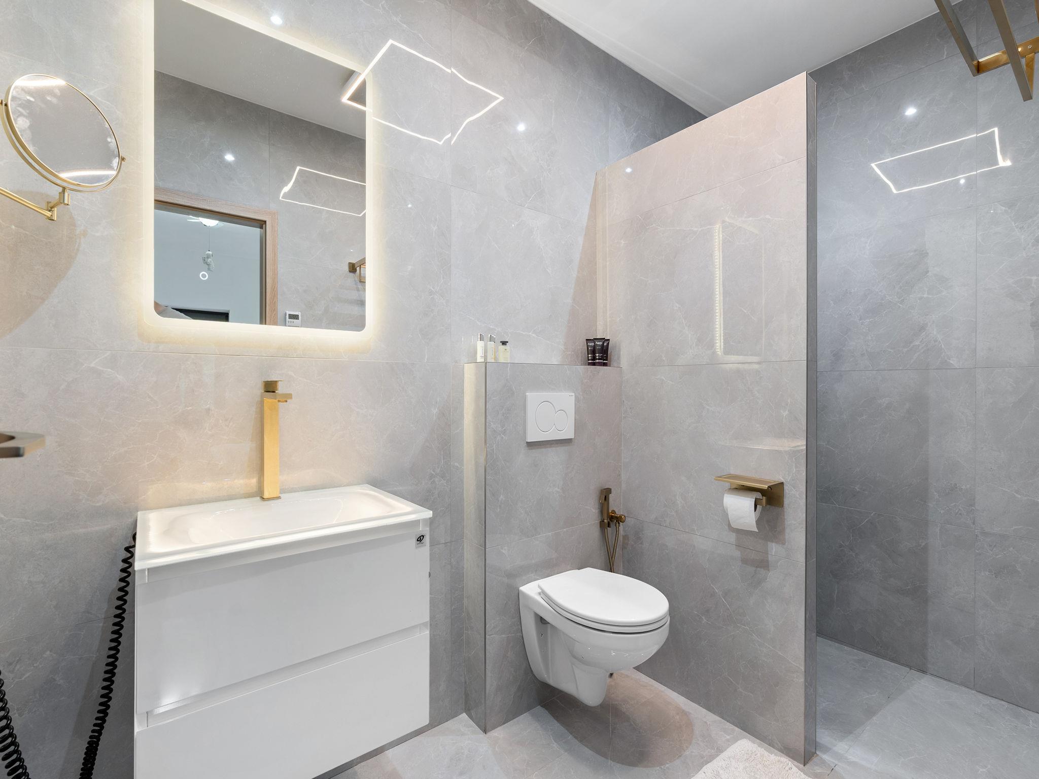 "Luxury Retreat Resort", 15-room house 550 m2 on 2 levels. Spacious, modern and luxurious furnishings: open living room with 1 double sofabed, open-hearth fireplace and TV. 1 room with 1 double bed (180 cm), shower/WC and TV. 1 room with 1 bed and 1 double bed (180 cm), shower/WC. Open living room with open-hearth fireplace, dining table, kitchen corner, TV and air conditioning. 1 room with 1 double bed (160 cm), TV. Large living room with dining table, kitchen corner, hydro massage shower and TV. 1 room with 1 double bed, bath/WC and TV. Walk-through room with bath/WC. 1 room with 1 double bed and TV. Exit to the terrace. 1 room with 1 double bed and TV. Exit to the terrace. Open kitchen (oven, dishwasher, 4 induction hot plates, toaster, kettle, microwave, electric coffee machine, Capsules for coffee machine (Nesperesso)) with dining table. Shower/WC, hydro massage bath. Upper floor: 1 room with 1 double bed (180 cm), shower/WC. Playroom with 1 bed and TV. Open gallery with Dressing room with 1 double bed (180 cm), bathroom. 1 room with 1 double bed, bath/WC and TV. 1 room with 1 double bed, shower/WC and TV. Sep. WC, hydro massage bath (private). Large terrace 40 m2, terrace 25 m2. Terrace furniture, barbecue (portable). Beautiful view of the garden. Facilities: washing machine, dryer. Internet (WiFi, free). E-charging station. Please note: non-smoking house. Maximum 2 pets/ dogs allowed. No lift. Available in the complex: 3 x grill, 4 x hydro massage bath, 1 x Swimm Spa with counter-current, stainless steel heating barrel for 6 people, sauna, petanque court, gazebo on the pond, summer kitchen with seating for up to 20 people with grill and tap equipment and cooling for 4 drinks. On request: 3 x room with 1x bed and 1x double bed (180 cm) and shared bathroom with shower and toilet.