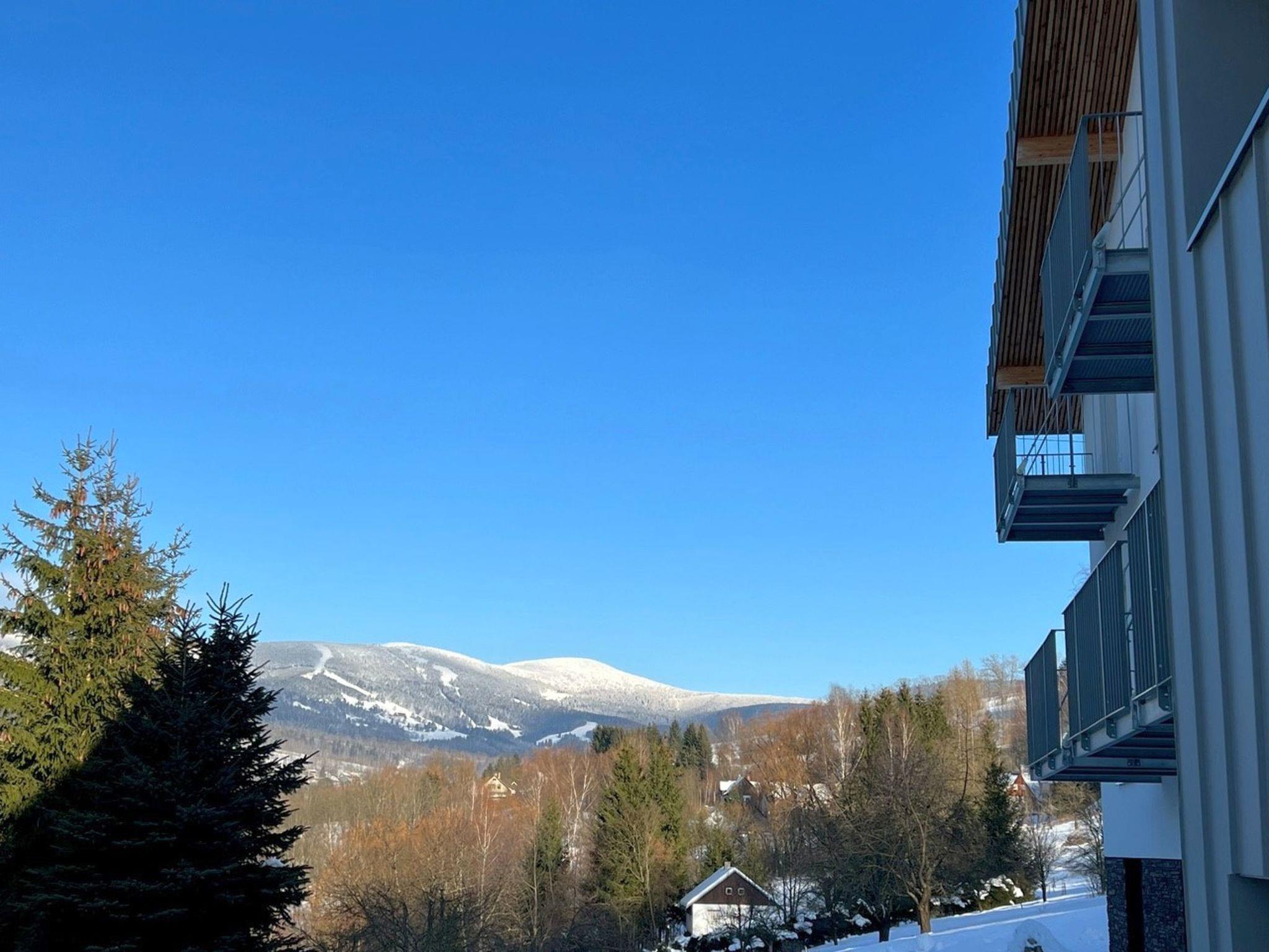 Modern apartment block "Vista". In the resort 1.5 km from the centre of Rokytnice nad Jizerou, in a sunny position, 4 km from the skiing area. For shared use: property, beautiful garden to relax, swimming pool (12 x 6 m, seasonal availability: 01.Jun. and 30.Sep.). Terrace, fireplace. In the house: central heating system. Parking at the house. Supermarket 2 km, restaurant 2 km, bar 2 km, bus stop "U Kroupu" 950 m. Walking paths from the house 100 m, cycle lane. Nearby attractions: Stráž rozhledny 4 km, Hutský vodopád,Františkov muzeum 6 km, Dinopark,Trollandia (Pl) 30 km, Termy Cieplickie(Pl) 45 km, radnicní vež 2 km, Western City (Pl) 55 km. Well-known ski regions can easily be reached: Kamenec Jablonec n/J 4 km, Studenov,Dvoracky 7 km, Lysá hora 6.5 km. Hiking paths: Gigateria Piechowice(Pl) 38 km, Park miniatury Kowary44km,Karpacz (Pl) 55 km, Labská bouda,Vosecká bouda 13 km.