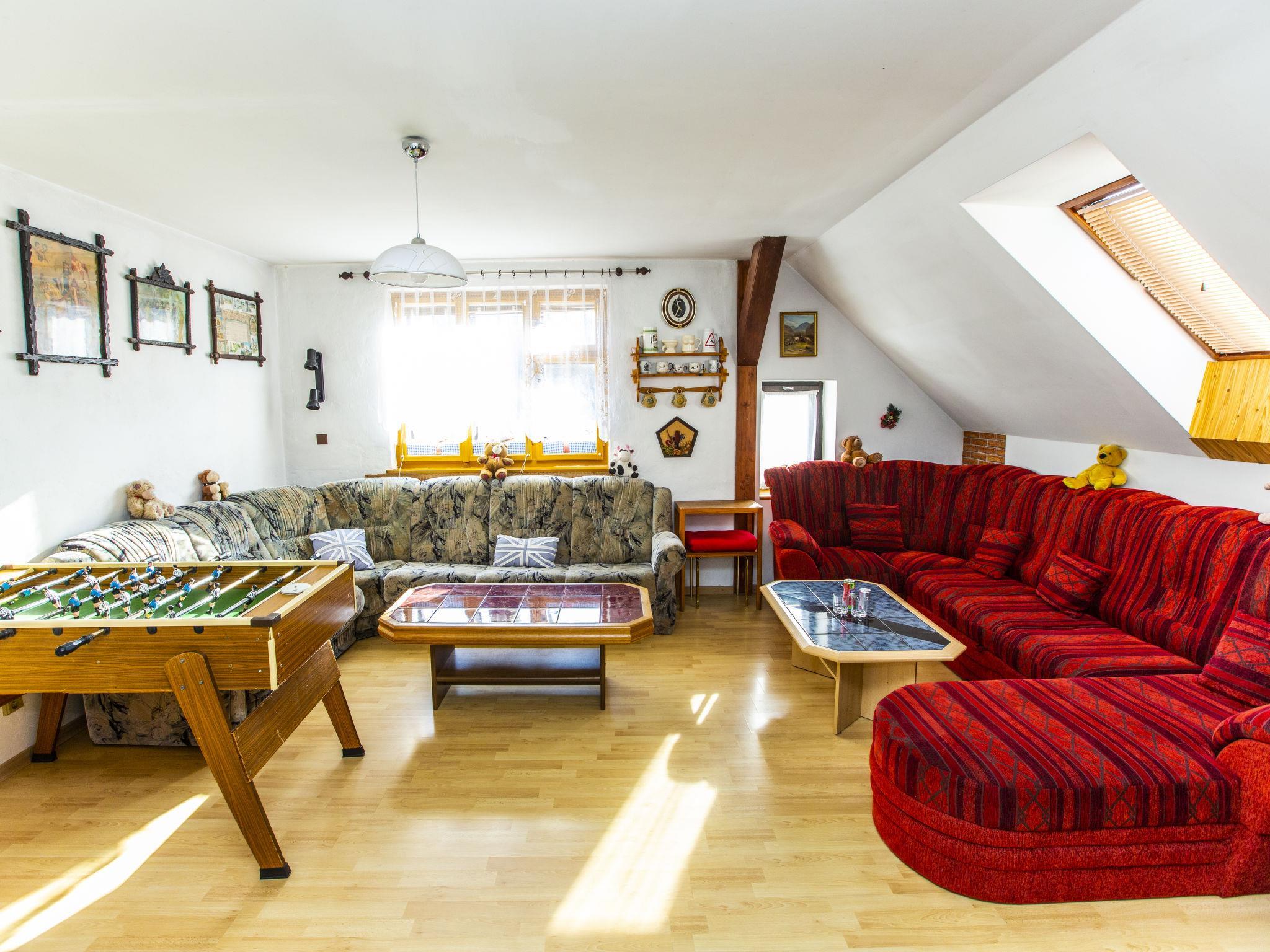 Cosy country house "Krecovice", 2 storeys, detached, surrounded by trees and meadows. In the district of Krecovice, on the outskirts, 3 km from the centre of Rovensko pod Troskami, in a quiet, sunny position, along the wooded area, directly by the stream. Private: property (fenced). Pergola, garden furniture, barbecue, fireplace, children's playground (swing, sandbox). In the complex: sauna, table football, storage room for bicycles, storage room for skis. Parking on the premises. Shop 3 km, shopping centre 11 km, restaurant 3 km, bus stop "Krecovice" 150 m, railway station "Rovensko pod Troskami" 3 km, outdoor swimming pool 6 km. Ski lift 8 km. Nearby attractions: Hrad Trosky, Hrubá Skála/CHKO Ceský ráj 8 km, Lázne Sedmihorky 9 km, Rozhledna Kozákov 10 km, Hrad Valdštejn, Zbiroh, Semily, Turnov, Prachovské skály 12 km, Hrad Kost 18 km. Well-known ski regions can easily be reached: Kozákov 5 km, Vysoké nad Jizerou 25 km.