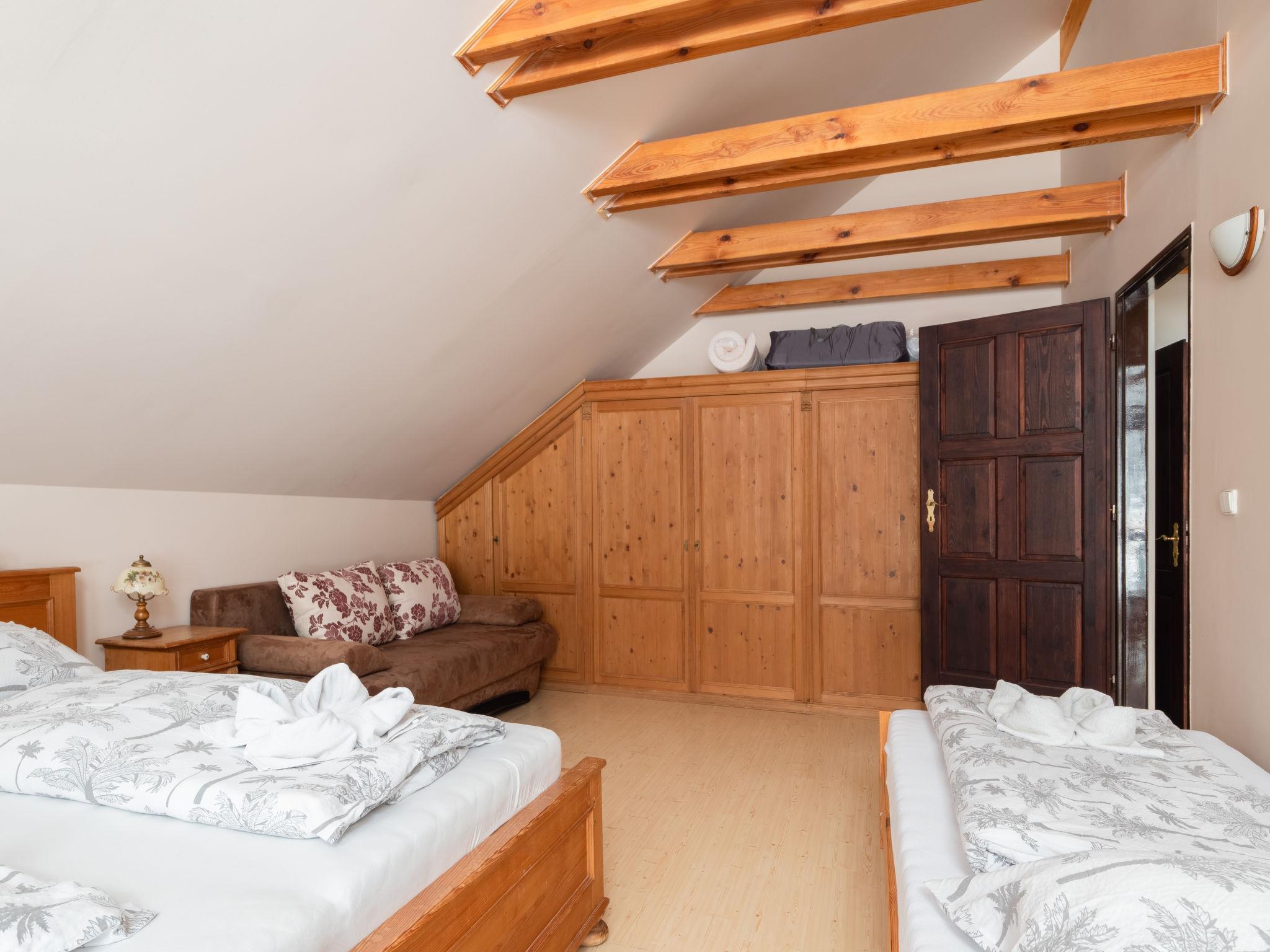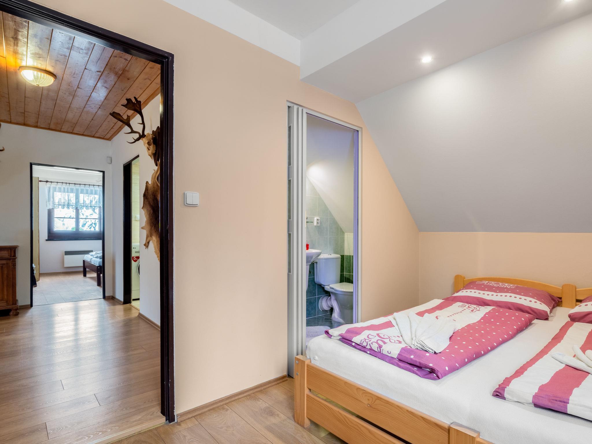 Very beautiful single-family house "Jelení kout", 2 storeys, detached, built in 1994, renovated in 2000, surrounded by trees. Outside the resort, traffic calmed area, along the wooded area, 1.5 km from the skiing area, in a cul-de-sac. Private: property 2'500 m2 (fenced), garden, indoor pool heated, with privacy (4 x 7 m, seasonal availability: 01.Jan. - 31.Dec.). Terrace, garden furniture, barbecue, fireplace, children's playground (swing, sandbox). In the house: WiFi, sauna (extra). Trampoline, washing machine. In Winter: please take snow chains. Parking (for 6 cars) on the premises. Shop 2.5 km, grocery 2.5 km, shopping centre 20 km, restaurant 2.5 km, café 3 km, bus stop "Smržovka, sánkarská dráha" 1.5 km, railway station "Smržovka stred" 2 km, outdoor swimming pool 7 km, indoor swimming pool 20 km. Golf course (18 hole) 17 km, tennis 4 km, riding stable 2 km, cycle lane 100 m, ski lift 2 km, slopes 2 km, ski rental 2 km, ski school 2 km, sled run 300 m, cross country ski track, children's playground 3 km. Nearby attractions: Rozhledna Cerná Studnice 2 km, Muzeum obrnené techniky Smržovka 2 km, Kittelovo muzeum v Krásné 5 km, Vodopády v Jedlové 17 km, Zoo Liberec, Aquapark Babylon 20 km, Bozkovské jeskyne 24 km. Well-known ski regions can easily be reached: Filip Smržovka 2 km, Tanvaldský Špicák 8 km, Ski areál Severák, Bedrichov, Harrachov. Hiking paths: Hrebenovka. Please note: baby equipment. Sauna and pool heating to be paid on the spot (according to electricity use).