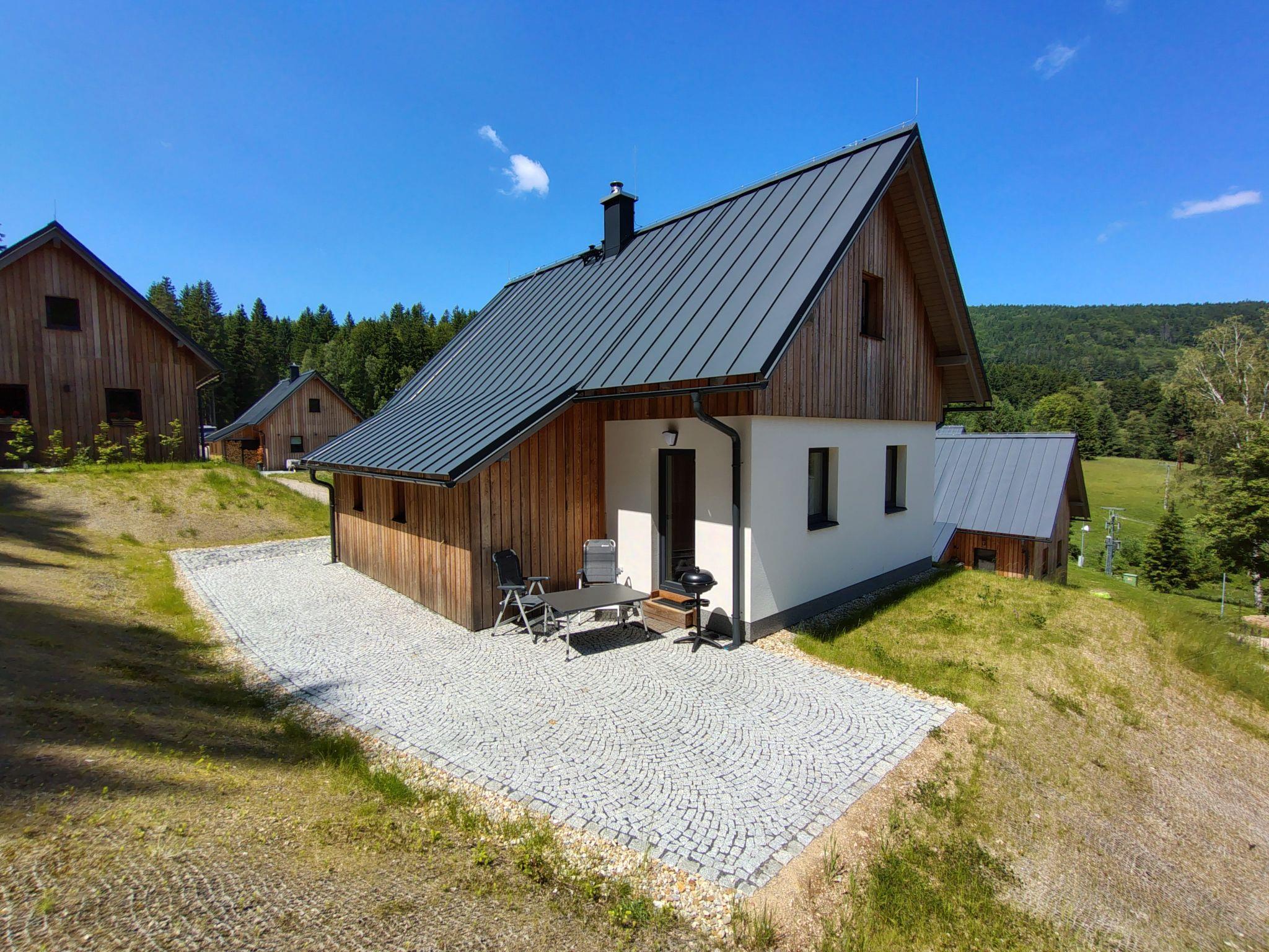 Very beautiful, comfortable chalet "U lesa", 2 storeys, detached, built in 2023. Outside the resort, along the wooded area, 2 km from the skiing area. Private: property. Terrace. In Winter: please take snow chains. Parking (in winter) at 70 m. Central parking spaces. Shop 2 km, grocery 2.5 km, supermarket 6 km, shopping centre 20 km, restaurant 2 km, bus stop "Jiretín pod Bukovou" 1.4 km, railway station "Jiretín pod Bukovou" 1.3 km, outdoor swimming pool 7 km, indoor swimming pool 20 km. Golf course (9 hole) 17 km, walking paths from the house 10 m, cycle lane 100 m, ski lift 2 km, slopes 2 km, ski rental 2 km, ski school 2 km, cross country ski track 100 m, children's playground 3 km. Nearby attractions: Rozhledna Cerná Studnice 6 km, Muzeum obrnené techniky Smržovka 6 km, Vodopády Jedlové 7 km, Kittelovo muzeum v Krásné 12 km, Aquapark Babylon, IQLandia, ZOO Liberec 22 km, Bozkovské jeskyne 22 km. Well-known ski regions can easily be reached: Tanvaldský Špicák 2 km, Filip Smržovka 4 km, Svetlý Vrch Albrechtice 4 km, Josefuv Dul 7 km, Severák, Bedrichov 12 km. Hiking paths: Hrebenovka. Please note: Loading and unloading of baggage is possible at the holiday house.