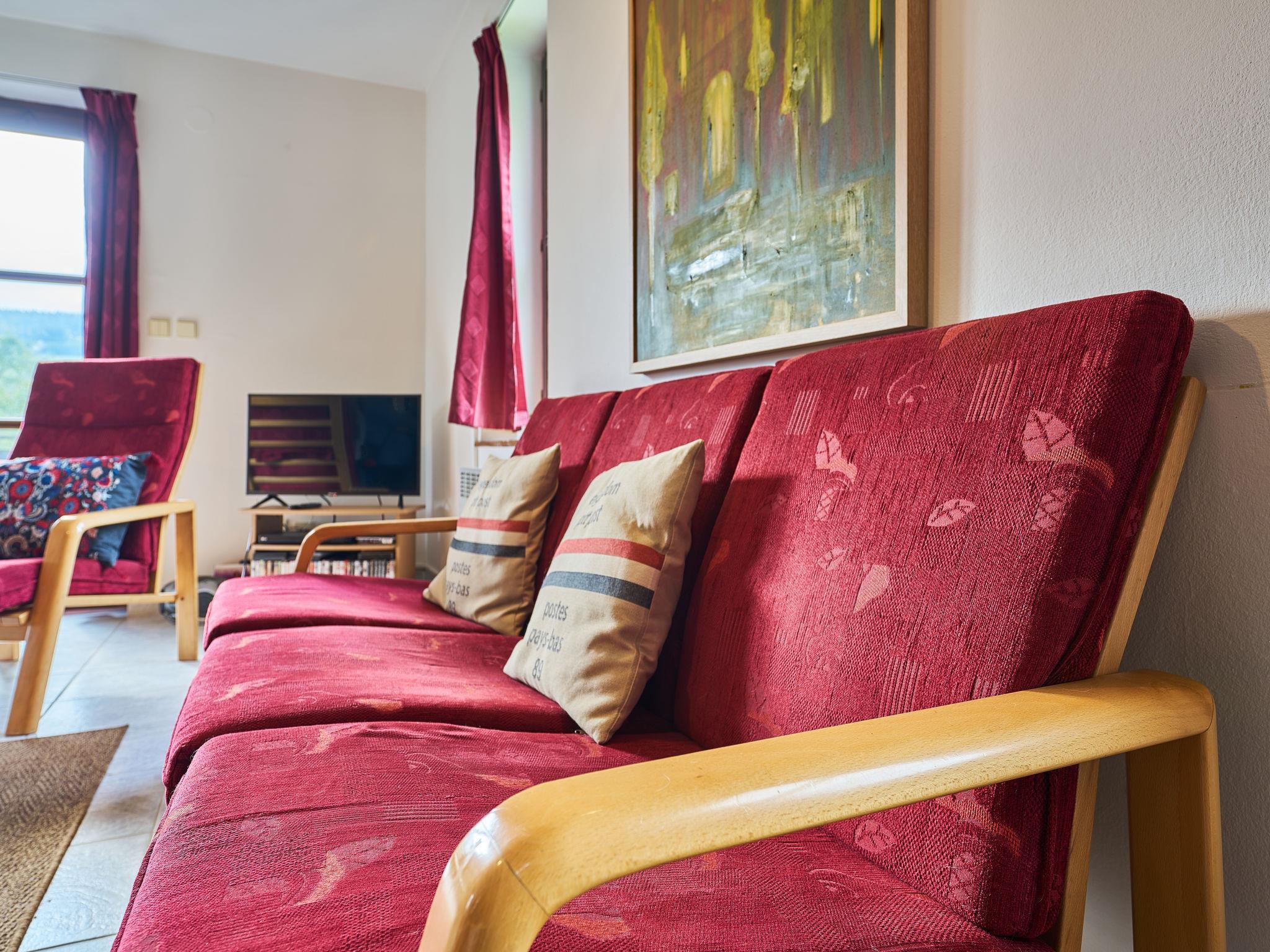 4-room chalet 100 m2 on 2 levels. Bright, fully renovated in 2024, cosy furnishings: living room with Scandinavian wood stove, satellite TV and flat screen. Exit to the terrace. Open kitchen (4 hot plates, oven, dishwasher, toaster, kettle, microwave, freezer, electric coffee machine) with dining table. Bath/WC, sep. WC. Electric heating. Upper floor: 1 room with 2 beds. 1 room with 2 beds. 1 room with 1 double bed. Sep. WC. Terrace 11 m2. Terrace furniture. Beautiful panoramic view of the valley and the countryside. Facilities: washing machine, iron, children's high chair, baby cot (extra). Internet (WiFi, extra). Please note: suitable for families. Non-smoking house. Maximum 2 pets/ dogs allowed.