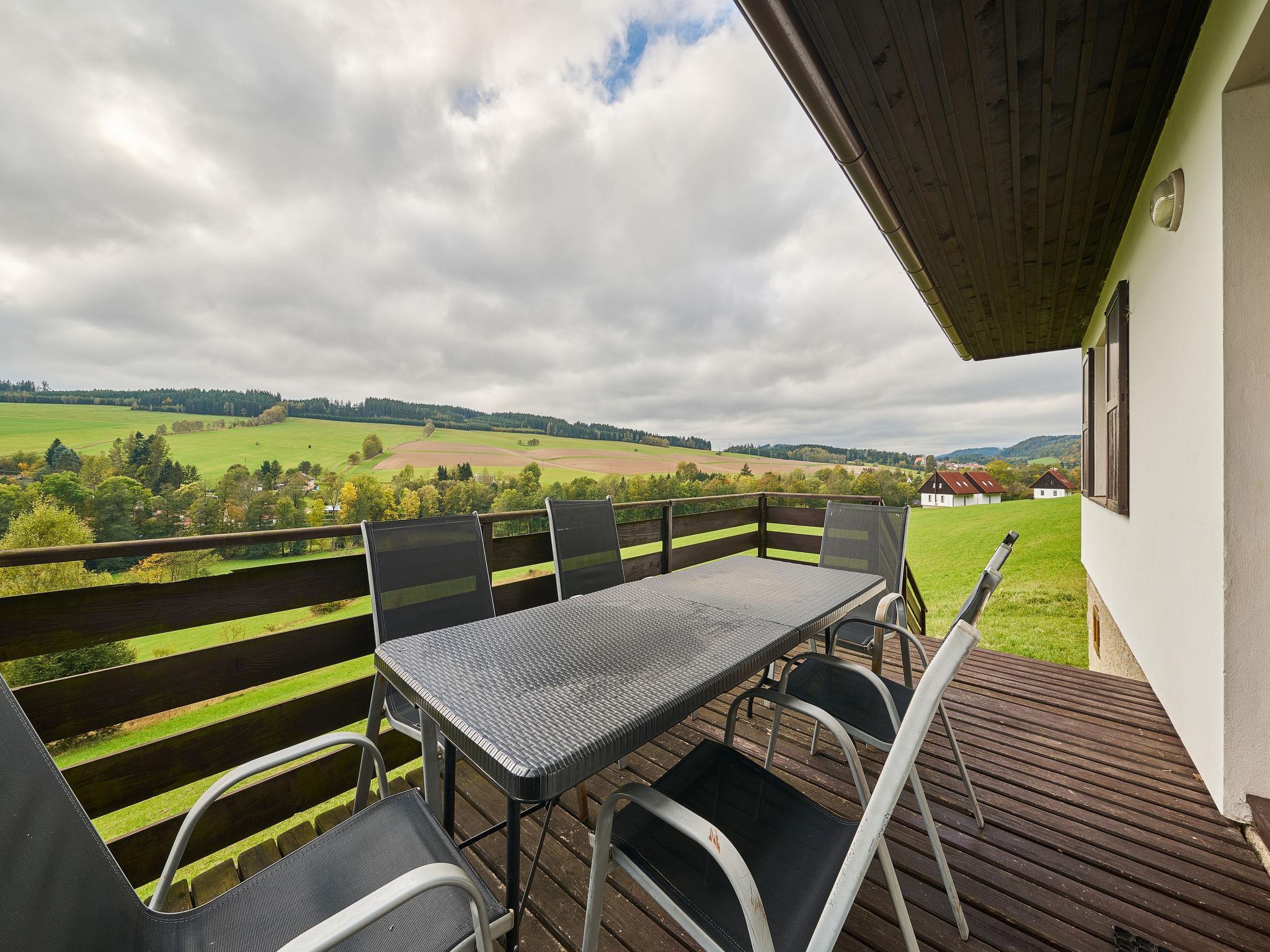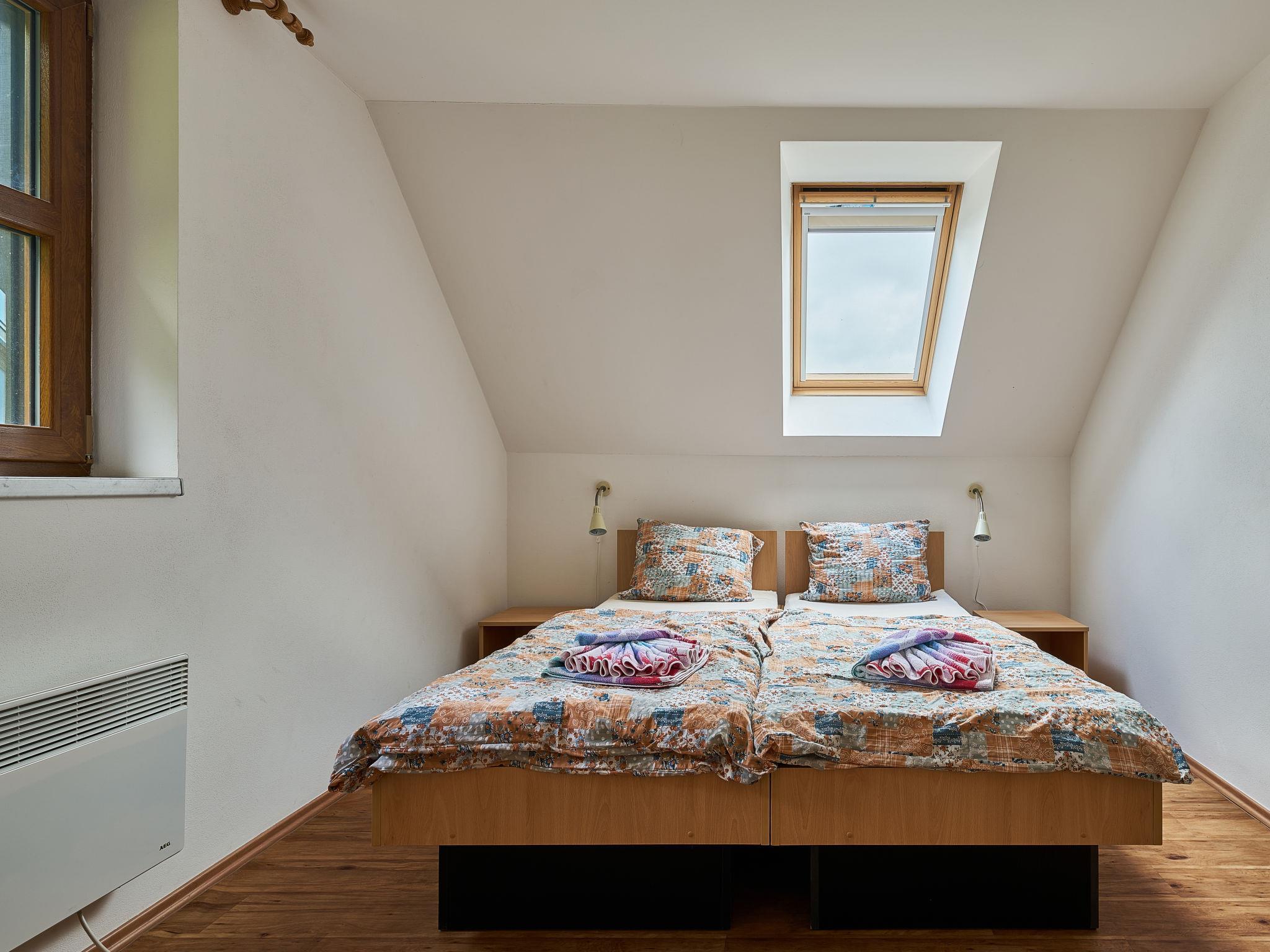 Stárkov 18 km from Náchod: Resort "Stárkov", 450 m a.s.l., detached, built in 1997, renovated, surrounded by meadows. 22 houses in the resort. On the outskirts, in a sunny, elevated position on a slope, along the wooded area, 24 km from the lake, 10 km from the skiing area, in the countryside. For shared use: property 10 ha, meadow, pond, swimming pool (8 x 4 m, depth 150 cm, seasonal availability: 15.Jun. - 16.Sep.). Table tennis, volleyball, badminton, volleyball court, beach volleyball, patio, barbecue, fireplace, children's playground (slide, swing, sandbox). In the complex: reception, lounge, bistro, massage (extra). Billiard table, table football, trampoline, kiosk, storage room for bicycles, laundry (extra). Linen change (suppl. charge extra). Towel change (suppl. charge extra). Room cleaning on request (extra). Bread roll service possible on request. Pre-arrival grocery service. Motor access to 200 m from the house. Parking at the house. Grocery 1 km, supermarket 8 km, restaurant 1 km, café 10 m, bus stop "Stárkov,mlékárna" 280 m, railway station "Ždár nad Metují" 4.6 km, indoor swimming pool 18 km. Golf course (9 hole) 26 km, sailing school 26 km, tennis 500 m, riding stable, walking paths from the house, cycle lane 10 m, ski lift 6 km, ski school 17 km, cross country ski track 100 m, ice rink 8 km, children's playground 10 m. Nearby attractions: Adršpašsko-teplické skály 15 km, Náchod 17 km, Broumovské steny 17 km, Ratiborice a Babiccino údolí 22 km, Broumov 24 km, Relaxpark Pec pod Snežkou 50 km. Well-known ski regions can easily be reached: Radvanice 10 km, Petríkovice 17 km, Mladé Buky 36 km. Well-known lakes can easily be reached: vodní nádrž Rozkoš 26 km. Please note: suitable for families, suitable for seniors baby equipment on request (included).