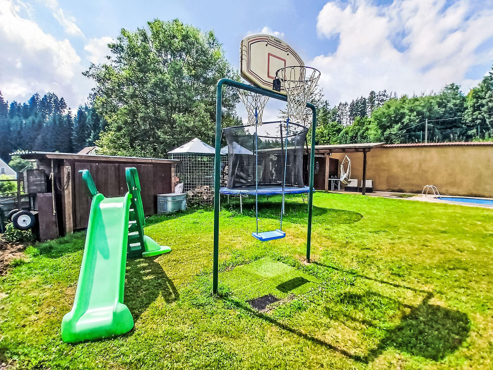 Comfortable house "Dolníky u Trutnova", 3 storeys, detached. On the outskirts, in a quiet, sunny position. Private: property (fenced), swimming pool (8 x 3 m, depth 120 cm, seasonal availability: 01.May. - 30.Sep.) with shutter cover. Basketball, terrace, garden furniture, barbecue, fireplace, children's playground (swing). In the house: hot tub, infrared sauna, trampoline, central heating system, washing machine. Roofed, parking (for 3 cars) on the premises. Shop 2 km, restaurant 1 km, bus stop "Trutnov, Bojište, U kríže" 1.6 km, outdoor swimming pool 4.5 km, indoor swimming pool 4 km, public bathing area 1.2 km. Ski lift 10 km, slopes 10 km. Nearby attractions: Trutnov 4 km, Rozhledna Žaltman, ZOO Dvur Králové 22 km, Adršpašské skály 25 km, zámek Ratiborice%3F babicino údolí 25 km, zámek Kuks 26 km. Well-known ski regions can easily be reached: Mladé Buky, Petríkovice 10 km, Radvanice 15 km, Cerná Hora/Janské Lázne 16 km, Herlíkovice 32 km, Špindleruv Mlýn 39 km. Well-known lakes can easily be reached: rybníky Dolce 1 km, vodní nádrž Les Království 25 km, vodní nádrž Rozkoš 28 km.