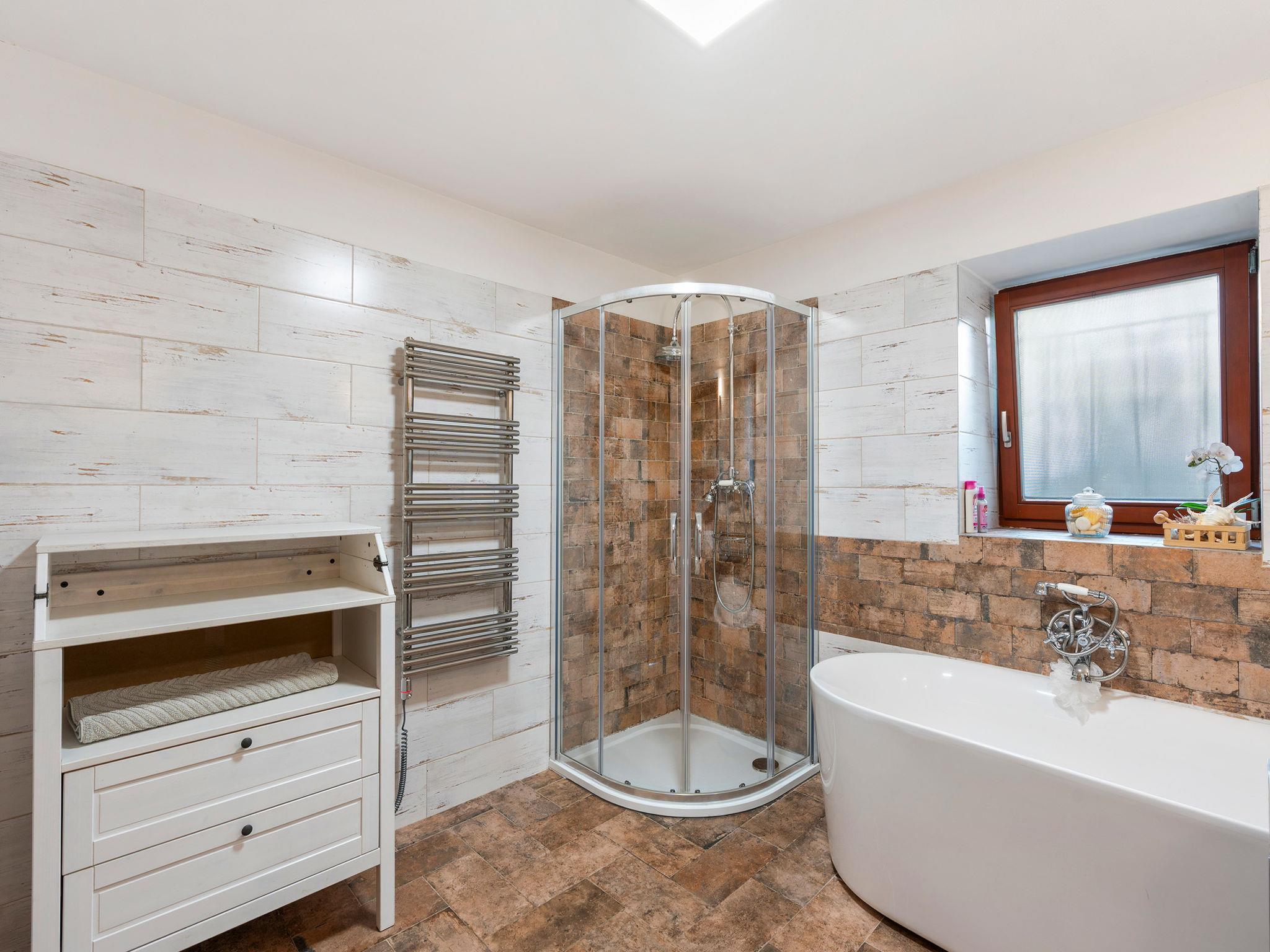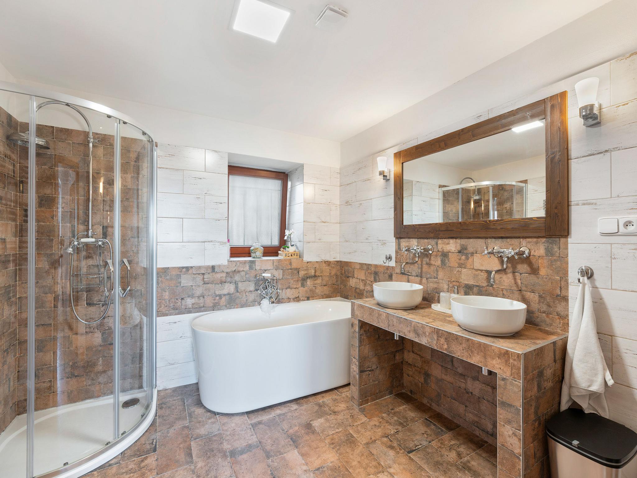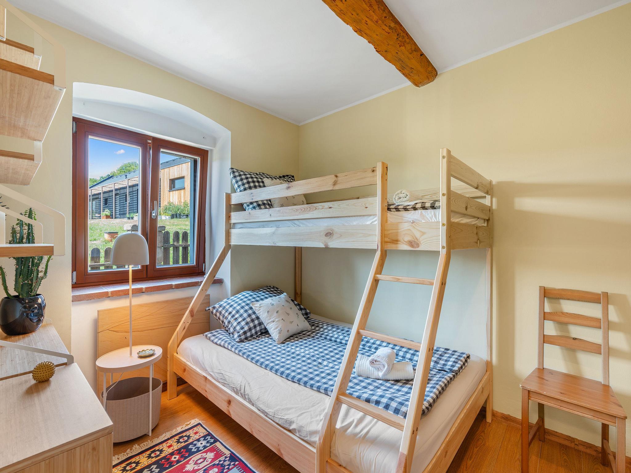 Svatá 10 km from Beroun: Child friendly, cosy single-family house "Svatá", 2 storeys, detached. In a quiet, sunny, elevated position, 600 m from the edge of the forest. Private: garden (fenced) with lawn and trees. Terrace, barbecue. In the house: central heating system, air conditioning. Parking at the house. Shop 660 m, shopping centre 8 km, restaurant 470 m, bus stop "Svatá,Pod kopcem" 370 m, railway station "Beroun" 11 km, outdoor swimming pool 6 km. Nearby attractions: Svatská skála 550 m, Vraní skála, Hudlická skála 2.8 km, Hrad Žebrák-Tocník 10 km, Konepruské jeskyne, Hrad Krivoklát 17 km, Zámek Horovice, Zámek Zbiroh 20 km, Hrad Karlštejn 25 km, Zámek Dobríš 33 km. Hiking paths: Slapská prehrada 60 km.