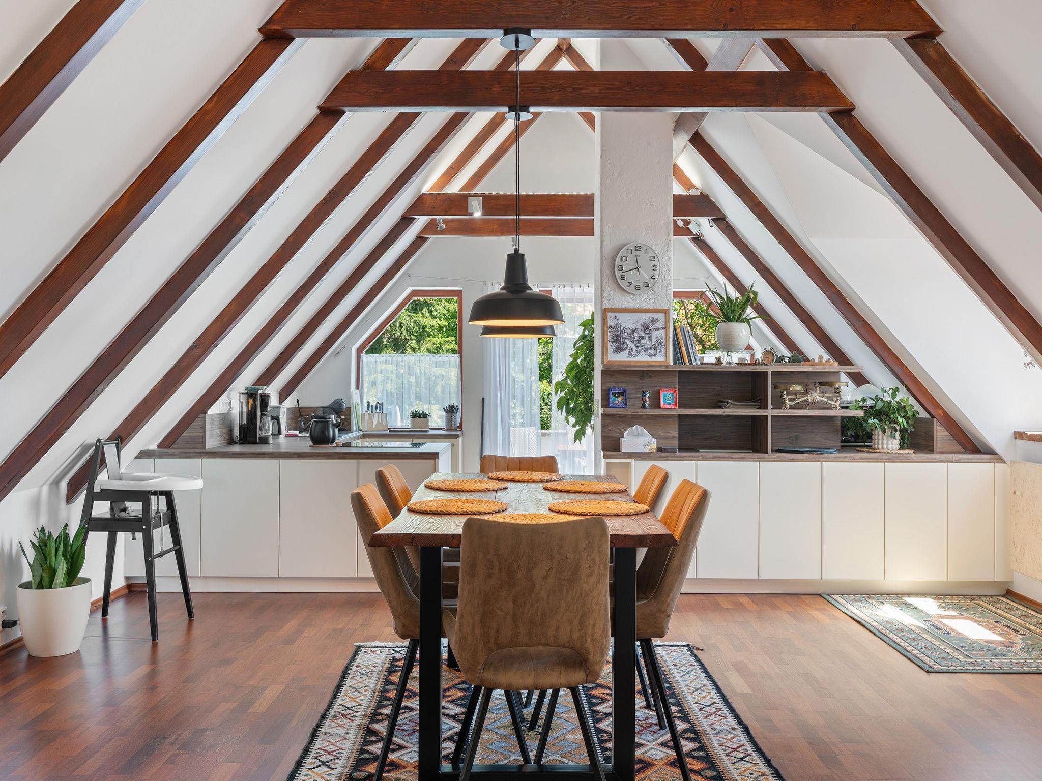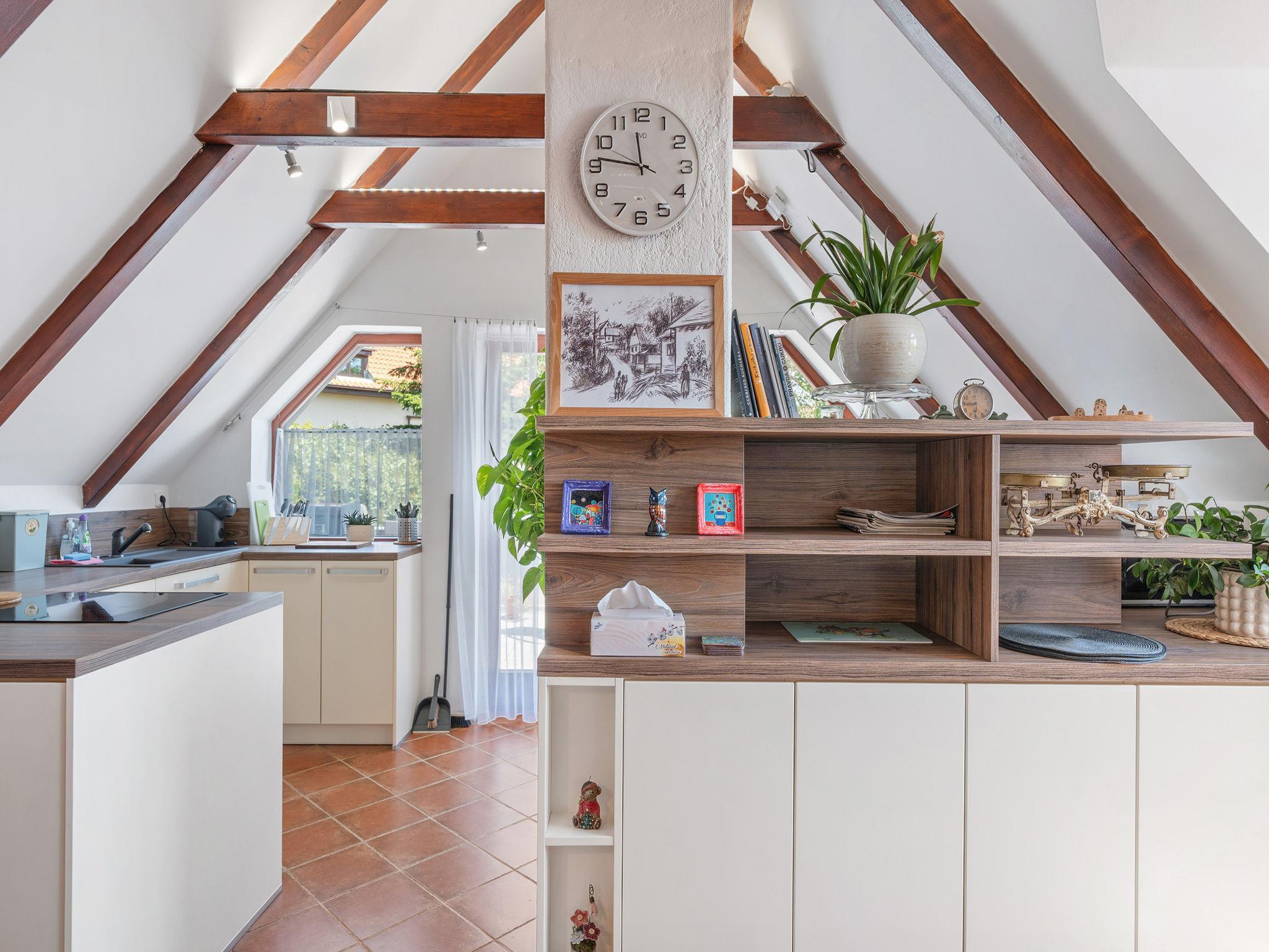 4-room house. Spacious, stylish furnishings: 1 room with 1 double bed. Walk-through room with 2 beds and Scandinavian wood stove. 1 room with 1 x 2 bunk beds. Sep. WC, bath/shower/WC. Upper floor: living/dining room with sloping ceilings with Scandinavian wood stove, dining table and TV. With sloping ceilings kitchenette (oven, dishwasher, 4 ceramic glass hob hotplates, kettle, microwave, electric coffee machine). Exit to the terrace. Electric heating, wood heating, floor heating. Terrace. Terrace furniture. Beautiful view of the countryside. Facilities: Internet (WiFi, free). E-charging station. Maximum 1 pet/ dog allowed.