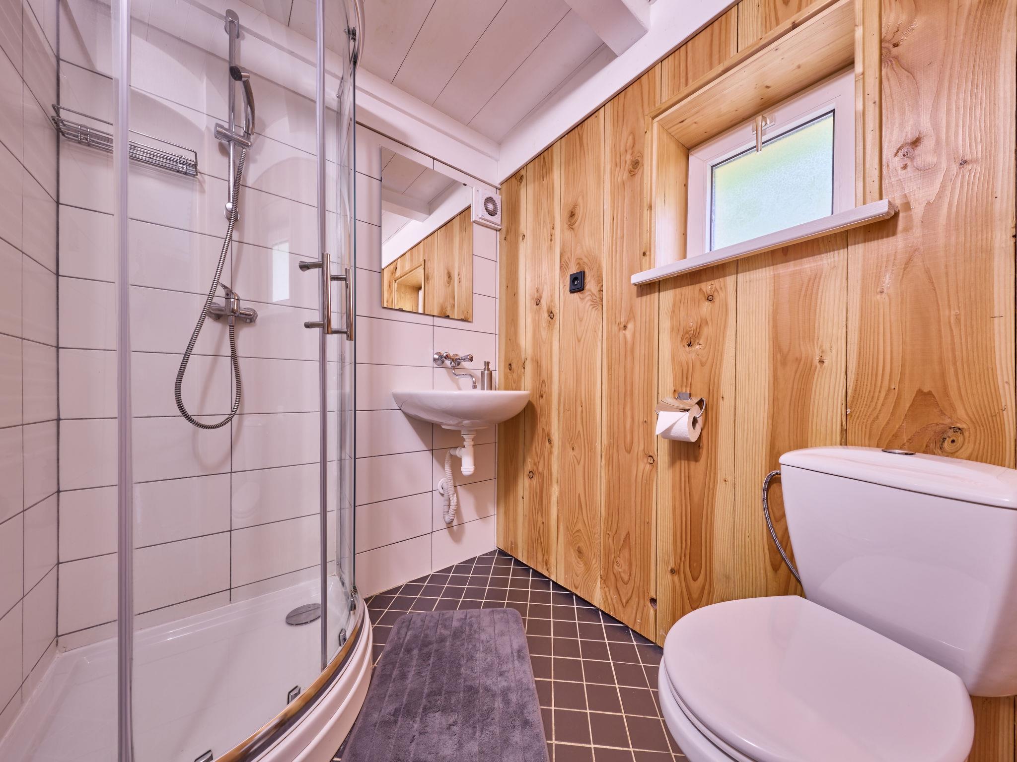 "Hillside Lodge & Garden", 8-room villa on 3 levels. Upper floor: entrance hall. Living room with 1 sofabed, open-hearth fireplace and satellite TV. 2 rooms, each room with 2 beds. Open kitchen (4 hot plates, dishwasher, kettle, microwave, freezer, electric coffee machine) with dining table. Shower/WC. 2nd upper floor: 2 rooms, each room with 1 double bed. 1 room with 2 beds. 2 rooms, each room with 1 bed. Bath/WC, shower/WC. Electric heating. Facilities: Internet (WiFi, free). Please note: suitable for families. Non-smoking house. Smoke alarm.