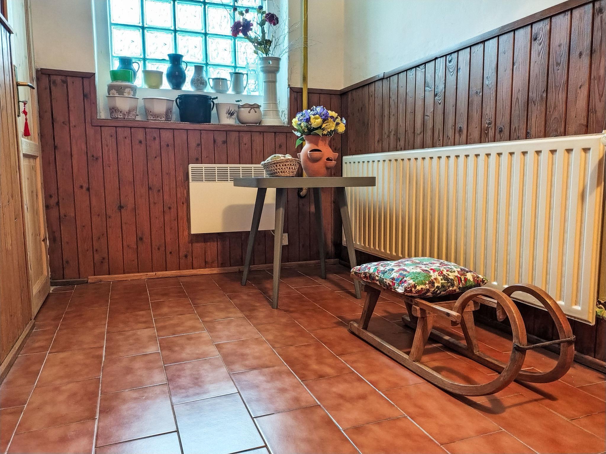 Plavy, 4 km from Tanvald: Old, large 2-family house "Plavy", 2 storeys, built in 1950, renovated in 2000. In the resort, 15 m from the edge of the forest, 1 km from the skiing area, 15 m from the stream. For shared use: garden 200 m2 (fenced) with plants. Fireplace. Private: garden 100 m2 (fenced). Table tennis, pergola, garden furniture, barbecue, fireplace. In the house: sauna (extra). Central heating system. Parking on the premises. Shop 2 km, grocery 300 m, restaurant 400 m, bus stop 300 m, railway station "Plavy" 500 m, outdoor swimming pool 10 km, indoor swimming pool 10 km. Golf course (9 hole) 20 km, tennis 2 km, ski lift 300 m, skisport facilities 15 km, slopes 15 km, ski school 15 km, children's ski school 15 km, cross country ski track 3 km. Please note: the owner lives in the same residence. Sauna (extra: 1000CZK), a part of wellness area. Entrance door shared with the owner.