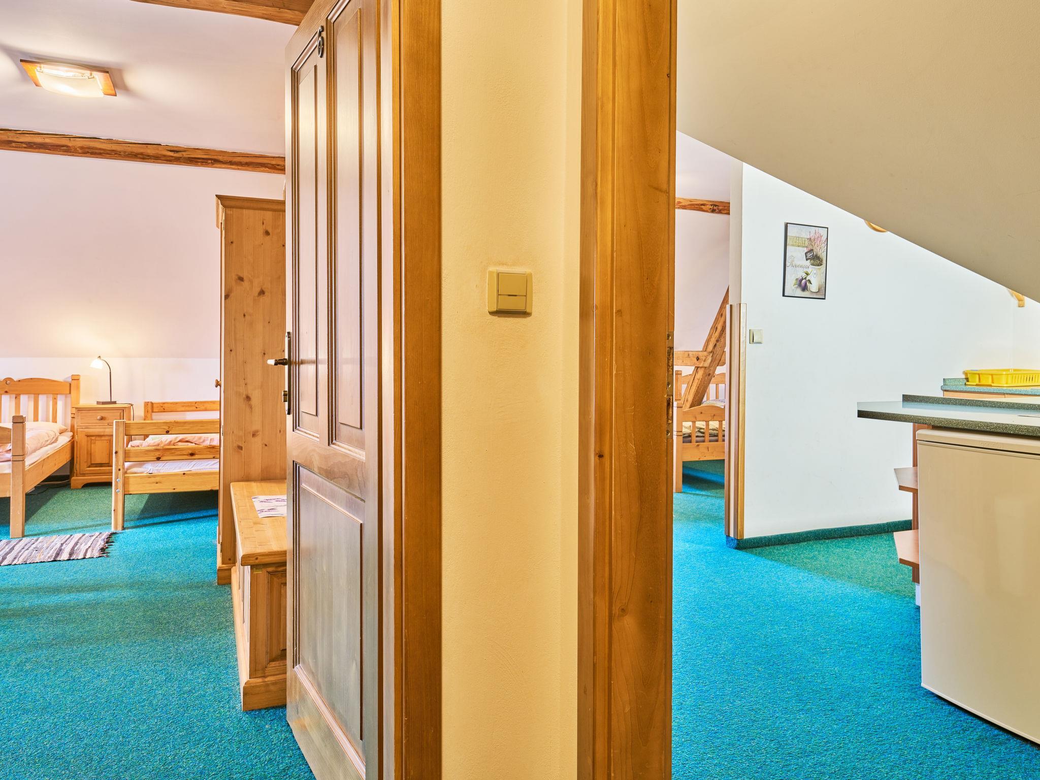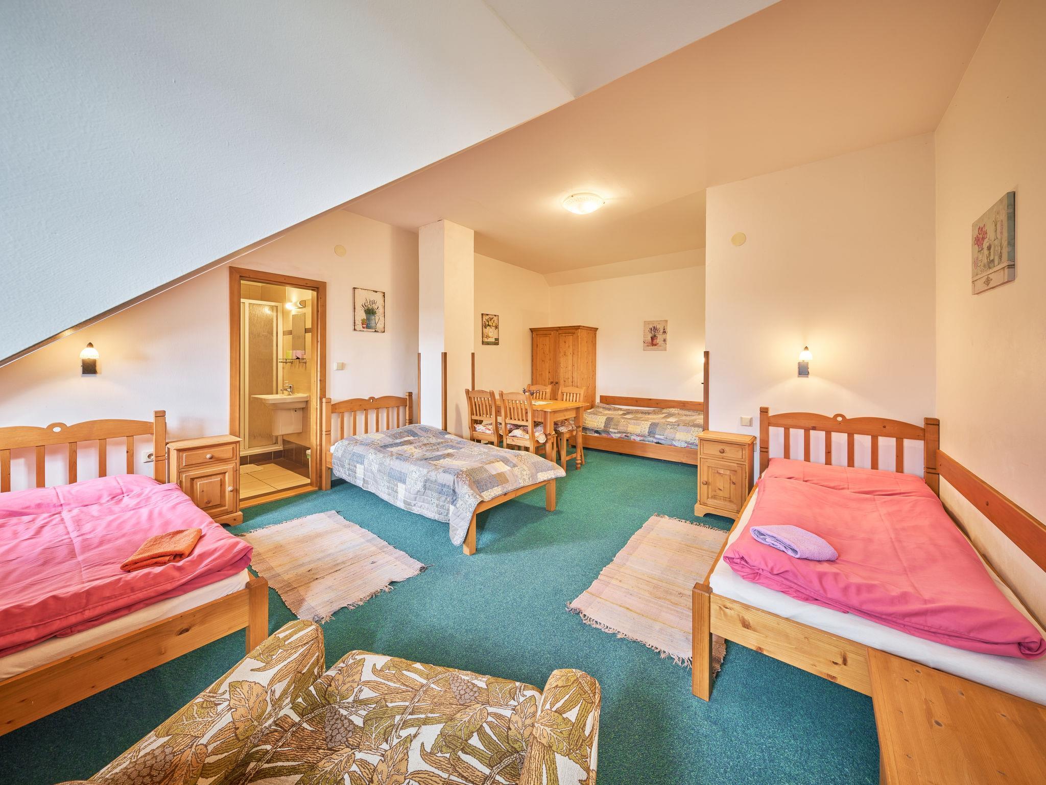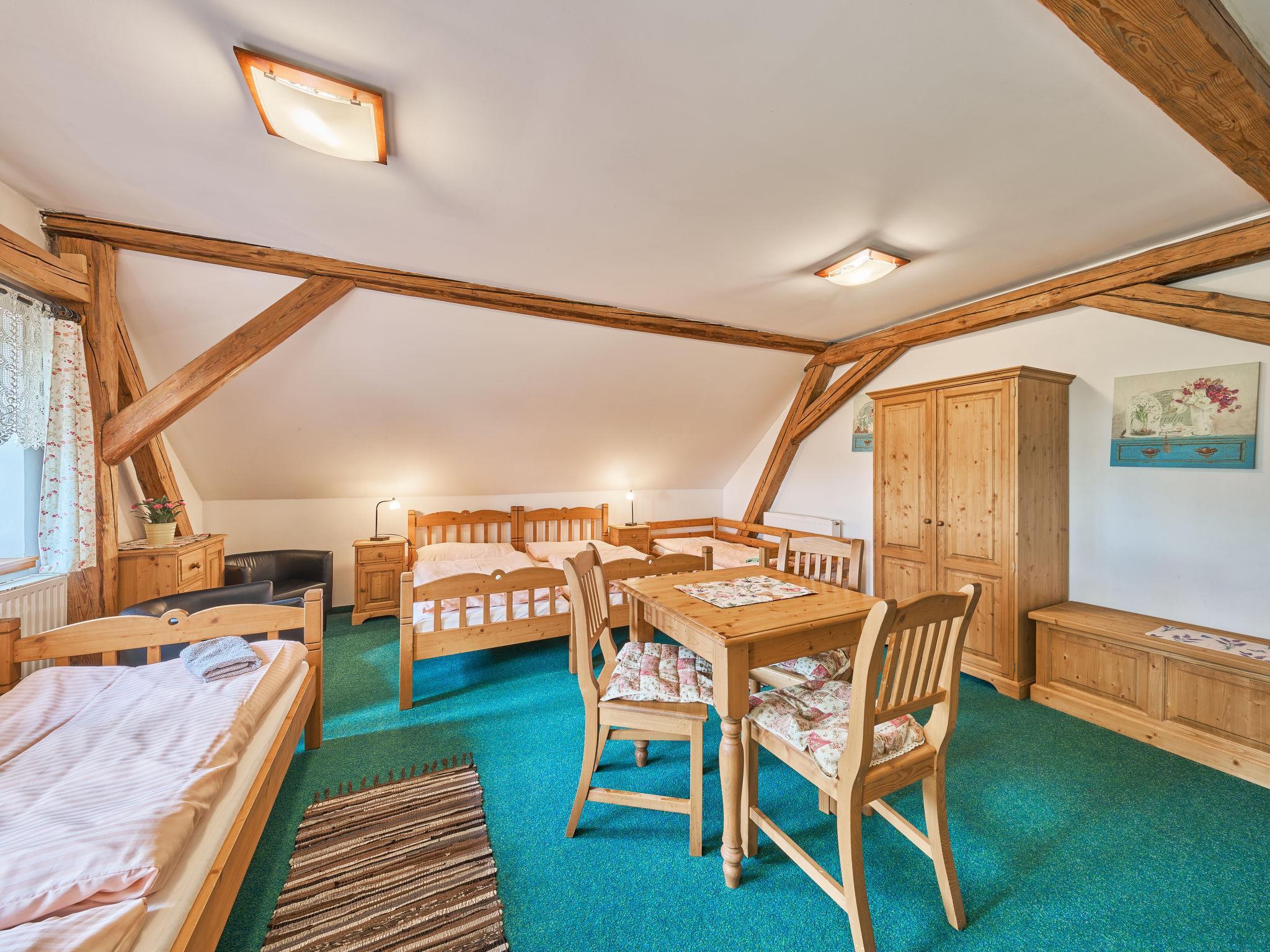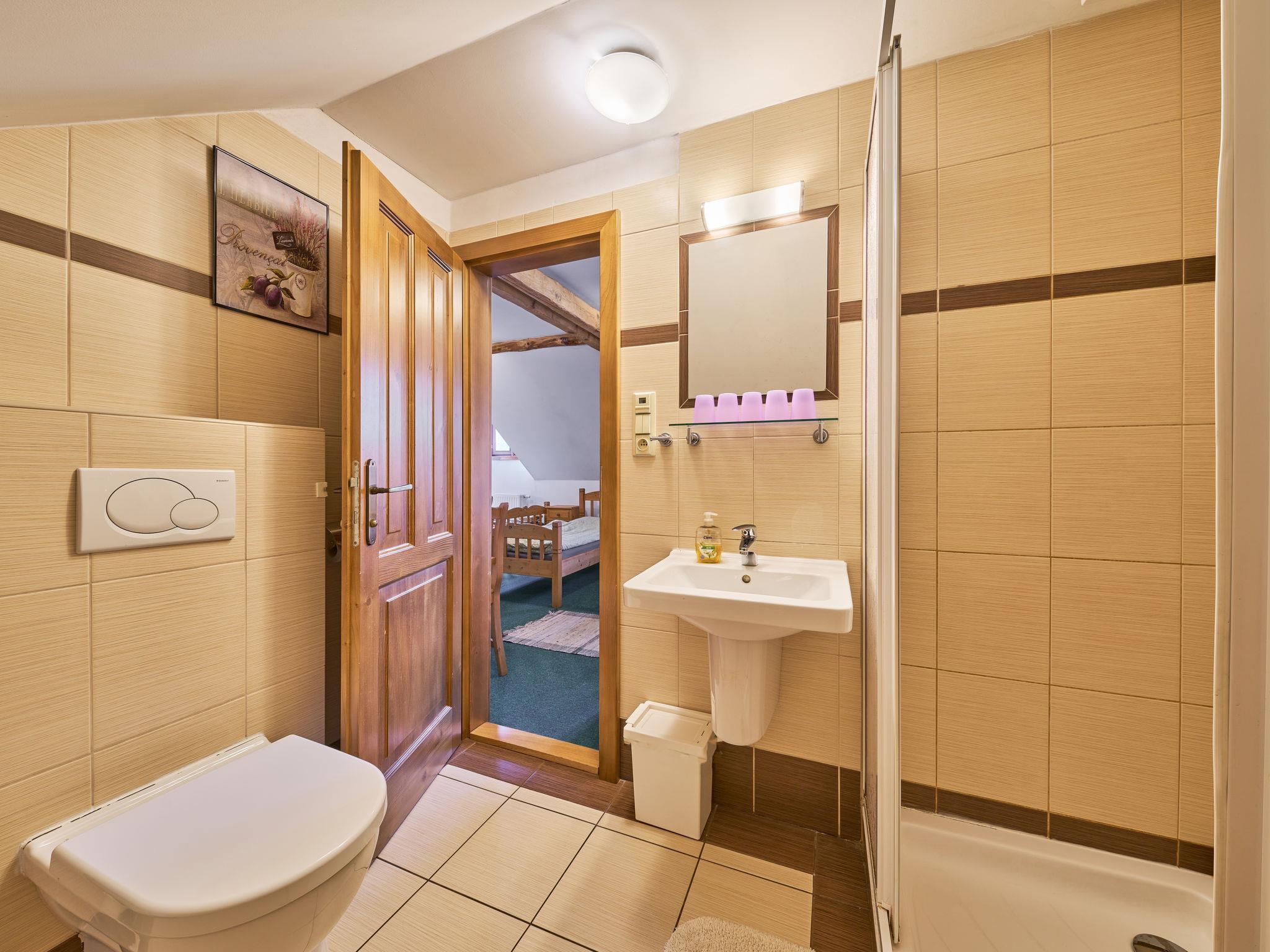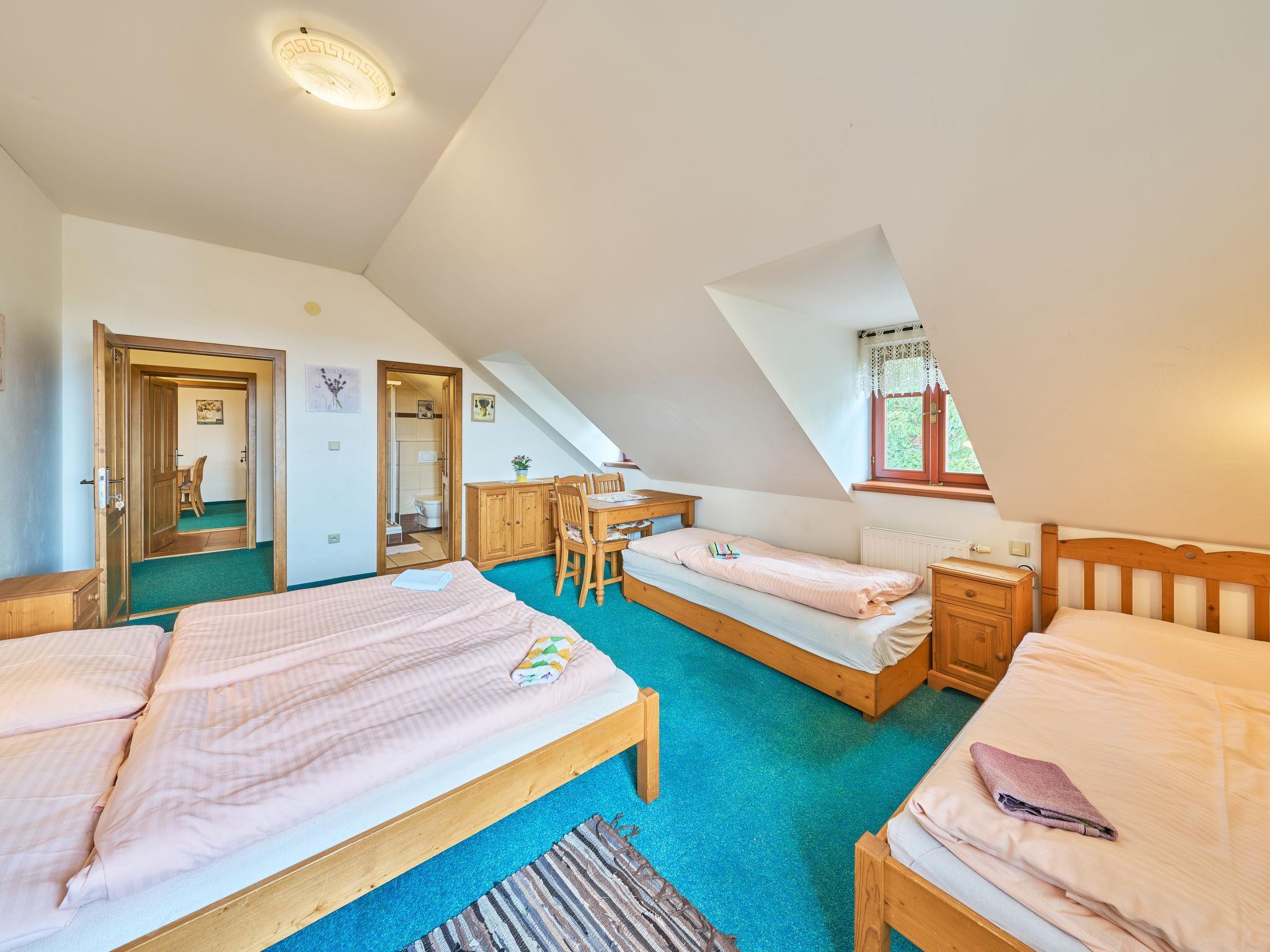 Beautiful country house "Ružovka", 2 storeys, semi-detached, built in 2010. 1.5 km from the centre of Uhlejov, 3 km from the centre of Miletín, 13 km from the centre of Dvur Králové, in a quiet, elevated position, 10 km from the skiing area. For shared use: property 400 m2, meadow. Private: swimming pool (3,6 m diameter, depth 90 cm, seasonal availability: 01.Jun. - 30.Sep.). In the house: billiard table. 1.5 km long motor access to the house (via unmade road). Parking (for 8 cars) on the premises. Shop 3 km, supermarket 10 km, bus stop "Trebihošt, tocna" 3.2 km, railway station "Bílá Tremešná" 6.5 km, indoor swimming pool 10 km. Ski lift 45 km, chair lift 45 km, slopes 10 km, cross country ski track 100 m. Nearby attractions: Miletín 3 km, Horice 10 km, Lázne Belohrad 10 km, Zoo Dvur Králové 13 km. Well-known ski regions can easily be reached: Jánské Lázne 45 km. Please note: the owner lives on the same property. Hot Tub (extra).