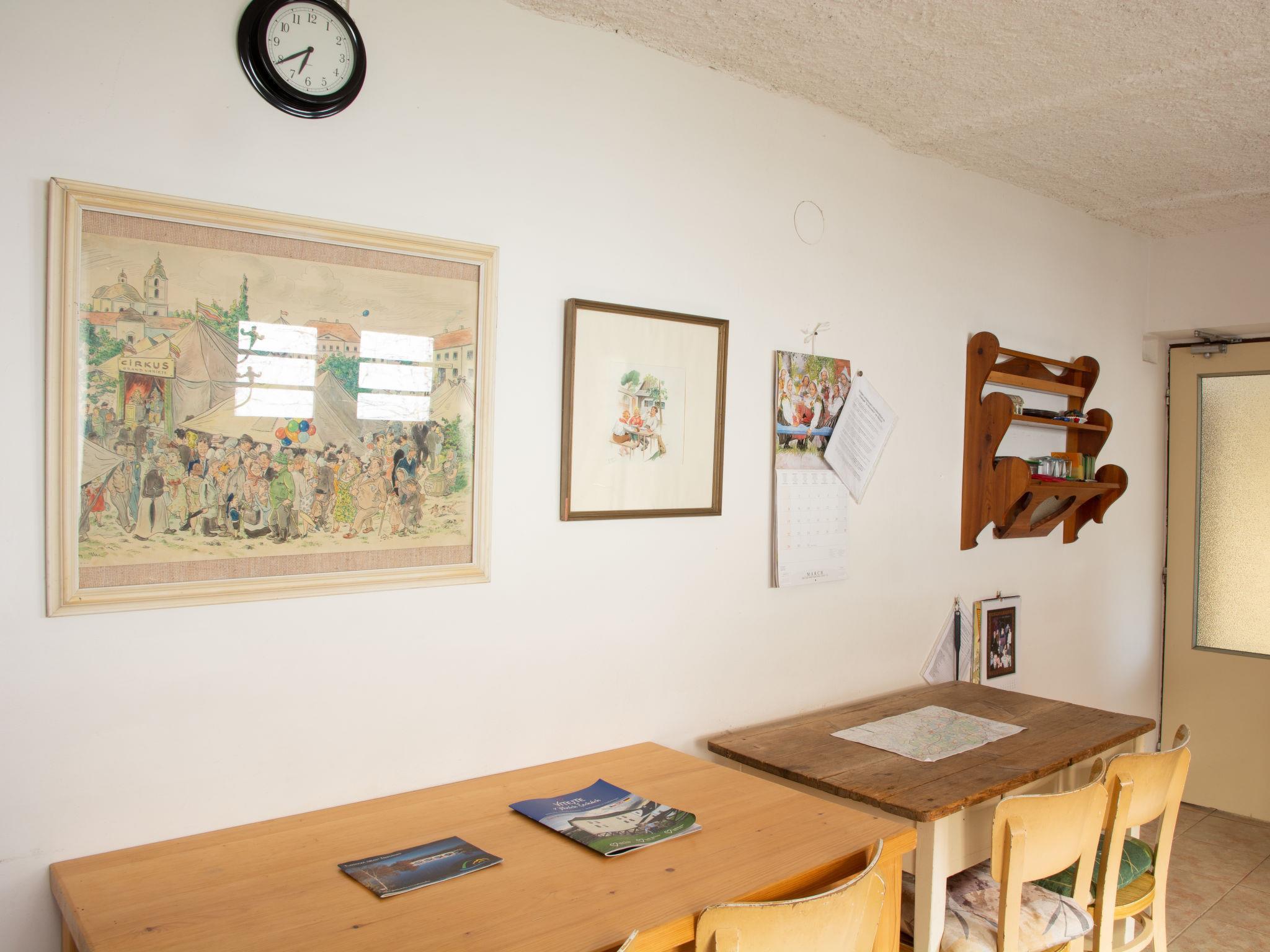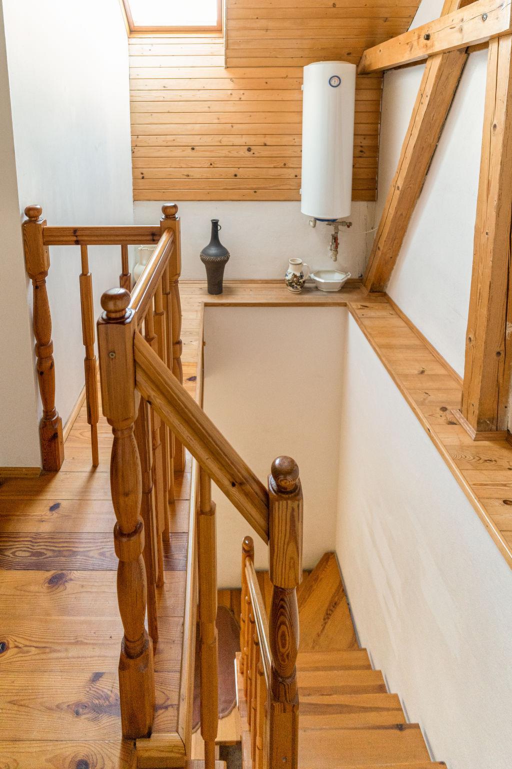5-room house on 2 levels. Simple and cosy furnishings: living/dining room with dining table and TV. 1 room with 1 bed, 1 double bed, 1 folding bed and Scandinavian wood stove. Small kitchen (4 hot plates, oven, toaster, kettle, microwave, electric coffee machine). Shower, sep. WC. 2nd upper floor: 1 room with sloping ceilings with 2 beds and 1 x 2 bunk beds. 1 room with sloping ceilings with 3 beds. 1 room with sloping ceilings with 2 beds. Shower/WC. Electric heating, wood heating. Facilities: baby cot for up to 2 year olds (extra). Internet (WiFi, free). Please note: suitable for families. Non-smoking house. Maximum 1 pet/ dog allowed. Fire extinguisher. Dog is allowed only in the ground floor room (extra charge). Wood for heating for free, wood for outdoor fireplace extra.