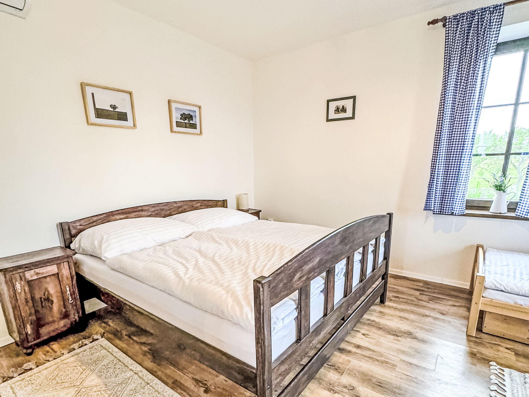 "Rabštejn", 4-room cottage 110 m2. Stylish furnishings: living room with Scandinavian wood stove, dining nook and TV. 1 room with 1 bed and 1 double bed. 1 room with 1 double bed. 1 room with 3 beds. Kitchen (dishwasher, 4 ceramic glass hob hotplates, toaster, kettle, microwave, freezer, electric coffee machine). Shower/WC. Electric heating, wood heating. Terrace, patio. View of the countryside. Facilities: washing machine, sauna, children's high chair, baby cot. Internet (WiFi, free). Please note: non-smoking house.