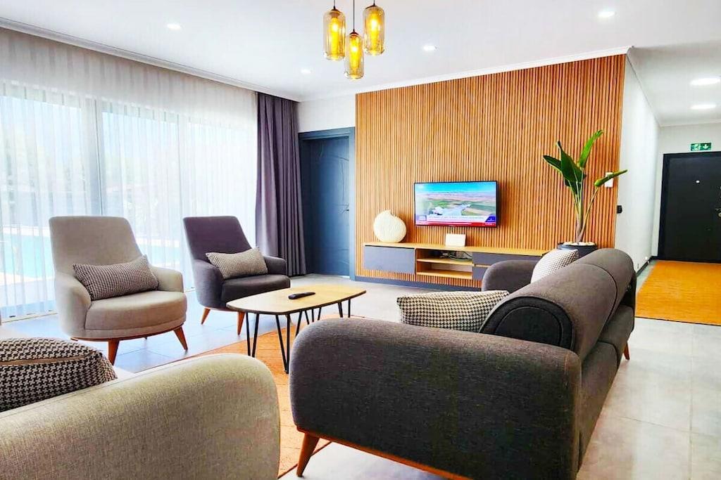 Villa Lux ligger i det historiske Kayaköy, et af de mest charmerende områder i Fethiye, kendt for sine gamle græske stenhuse og kulturelle vartegn. Villaen ligger i frodige grønne områder og tilbyder en stor privat have og et overdækket poolområde – perfekt til gæster, der søger privatliv og ro, især for konservative familier. Med 4 soveværelser og plads til op til 8 personer er villaen ideel til store familier eller vennegrupper. Den er stilfuldt og moderne indrettet – alt er tænkt på for et behageligt ophold. Uanset om I solbader, spiser sammen i haven eller slapper af på gyngen – er afslapning i højsædet her.