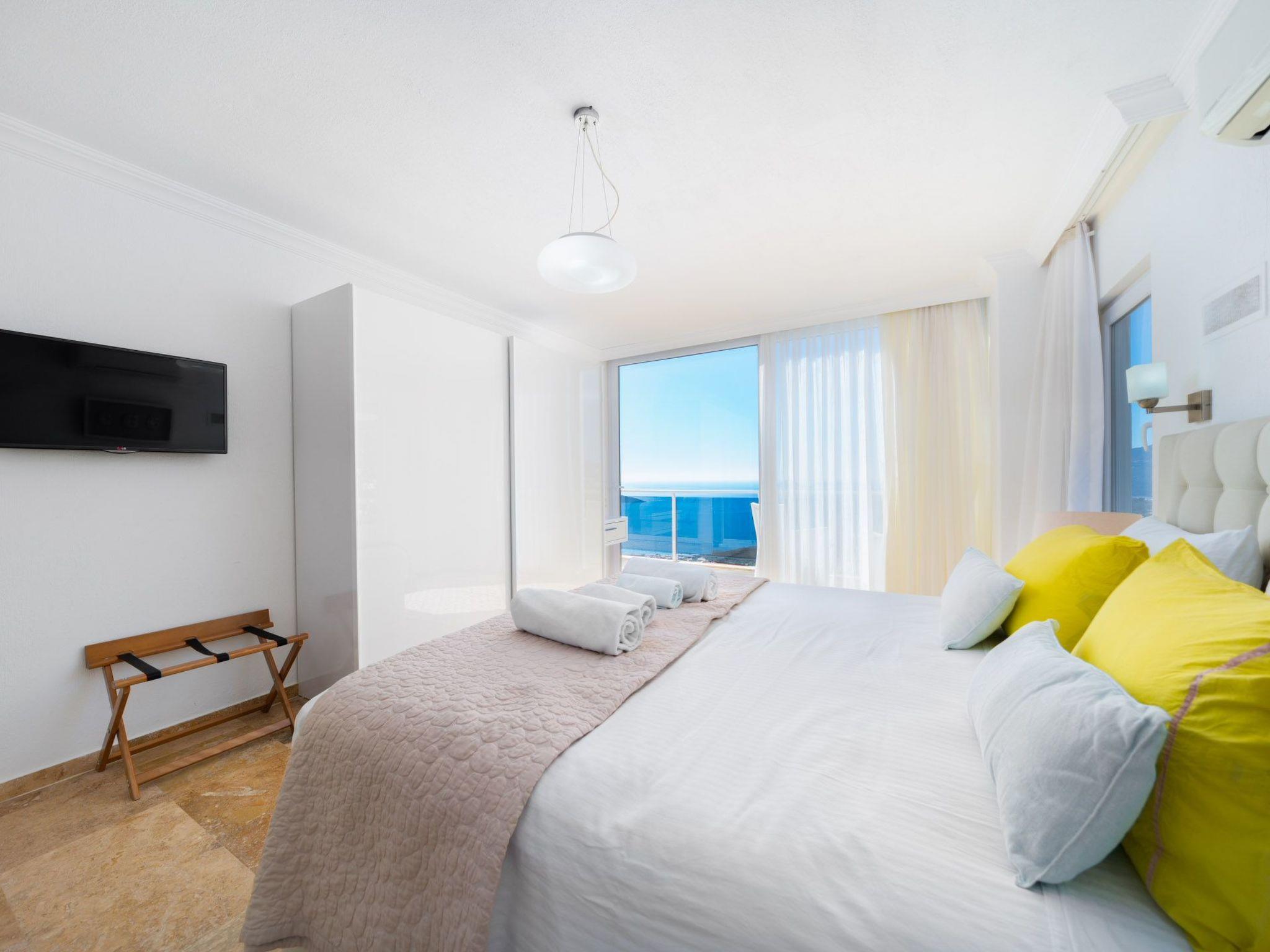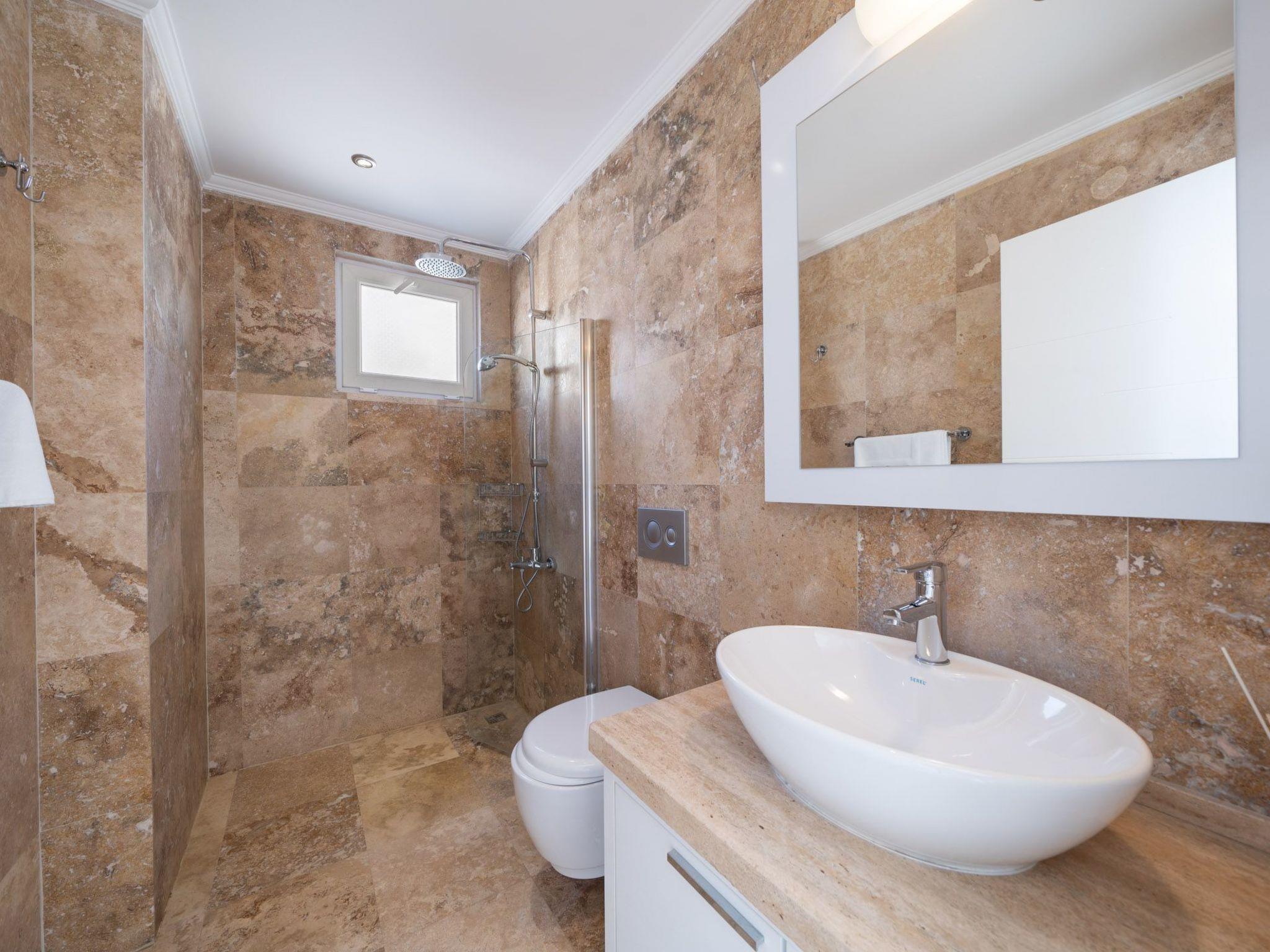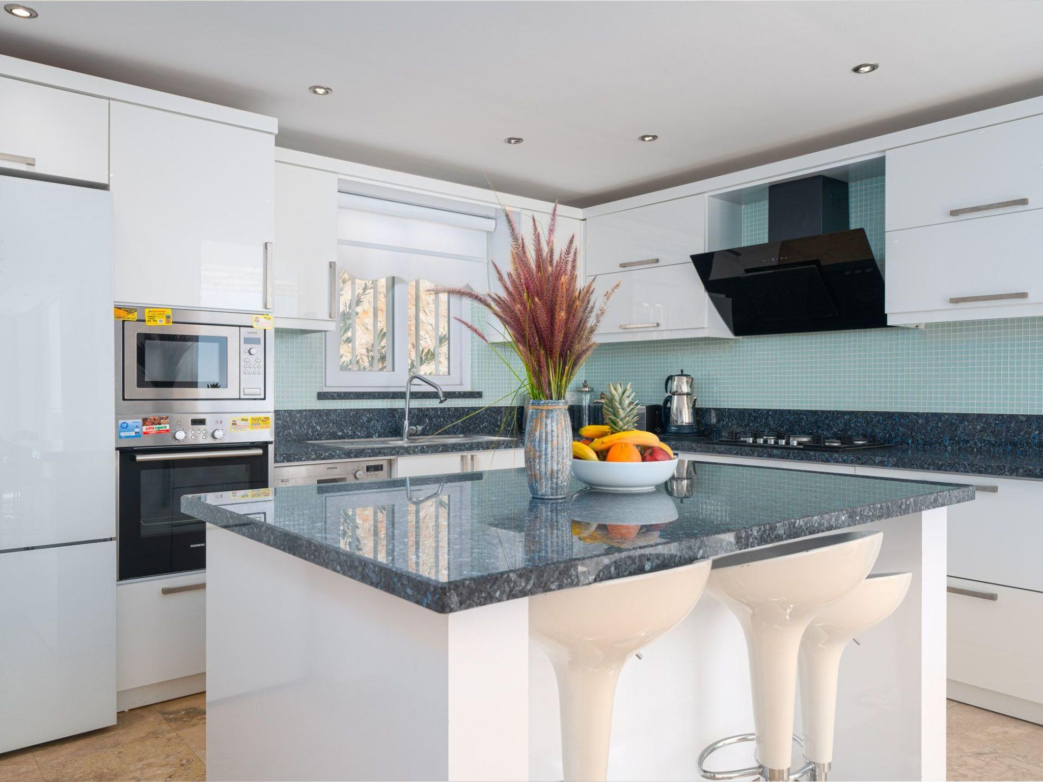 The fully equipped kitchen has everything you need to prepare delicious meals, which you can enjoy either inside in the elegant dining room or outside on the terrace overlooking the sea. Alternatively, you can also be spoilt by a private chef who will prepare local delicacies for you.