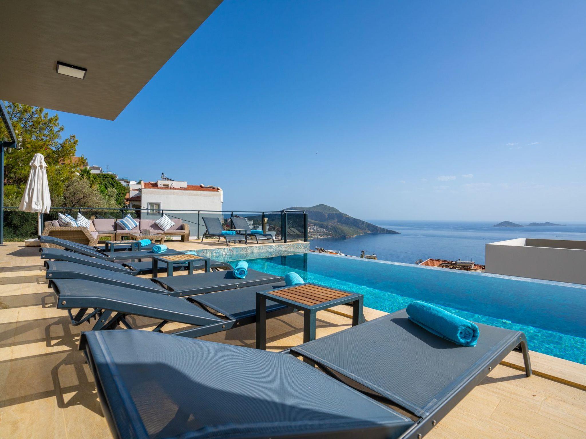 The villa is located in the picturesque area of Kalkan, just minutes away from the sparkling Mediterranean Sea. The elevated position offers breathtaking panoramic views of the azure blue sea and surrounding mountains that will enchant every guest.