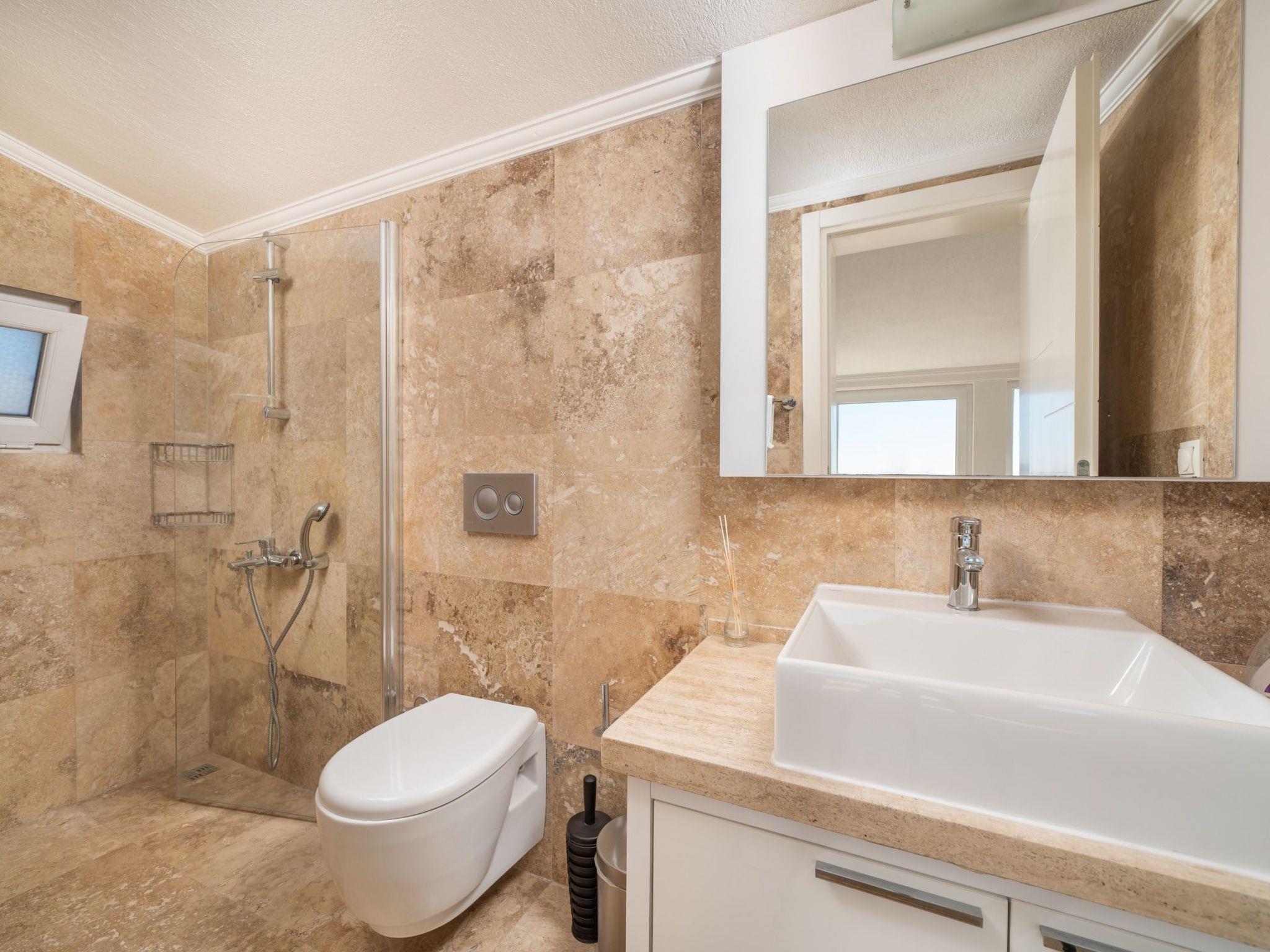 In addition to the luxurious interior, the villa has a variety of amenities to keep you entertained and relaxed. A table tennis table and table football invite entertaining competitions, while the private pool offers a refreshing cool-down on hot summer days. A spacious terrace with sun loungers and parasols invites you to sunbathe while enjoying the view of the sea.