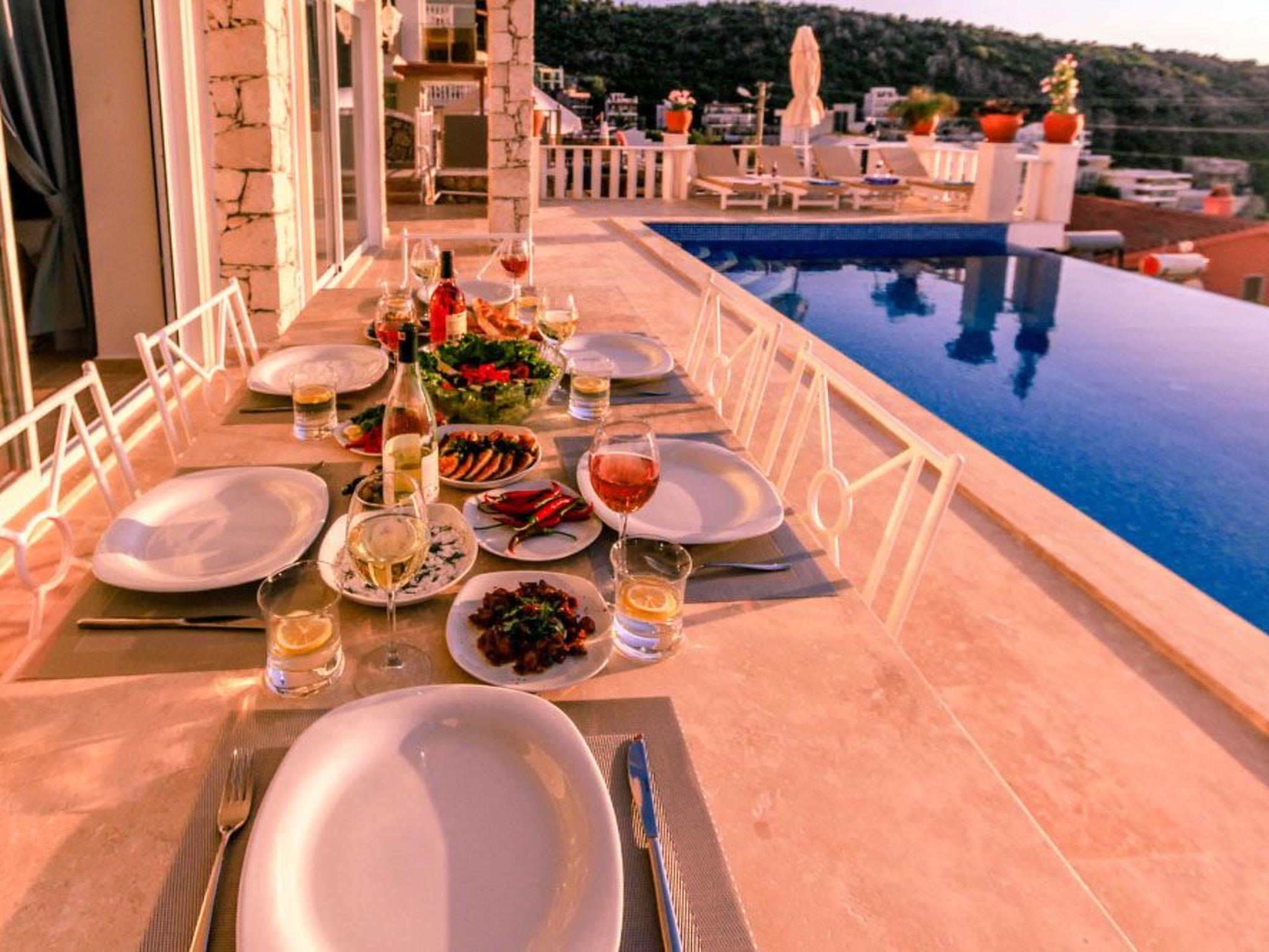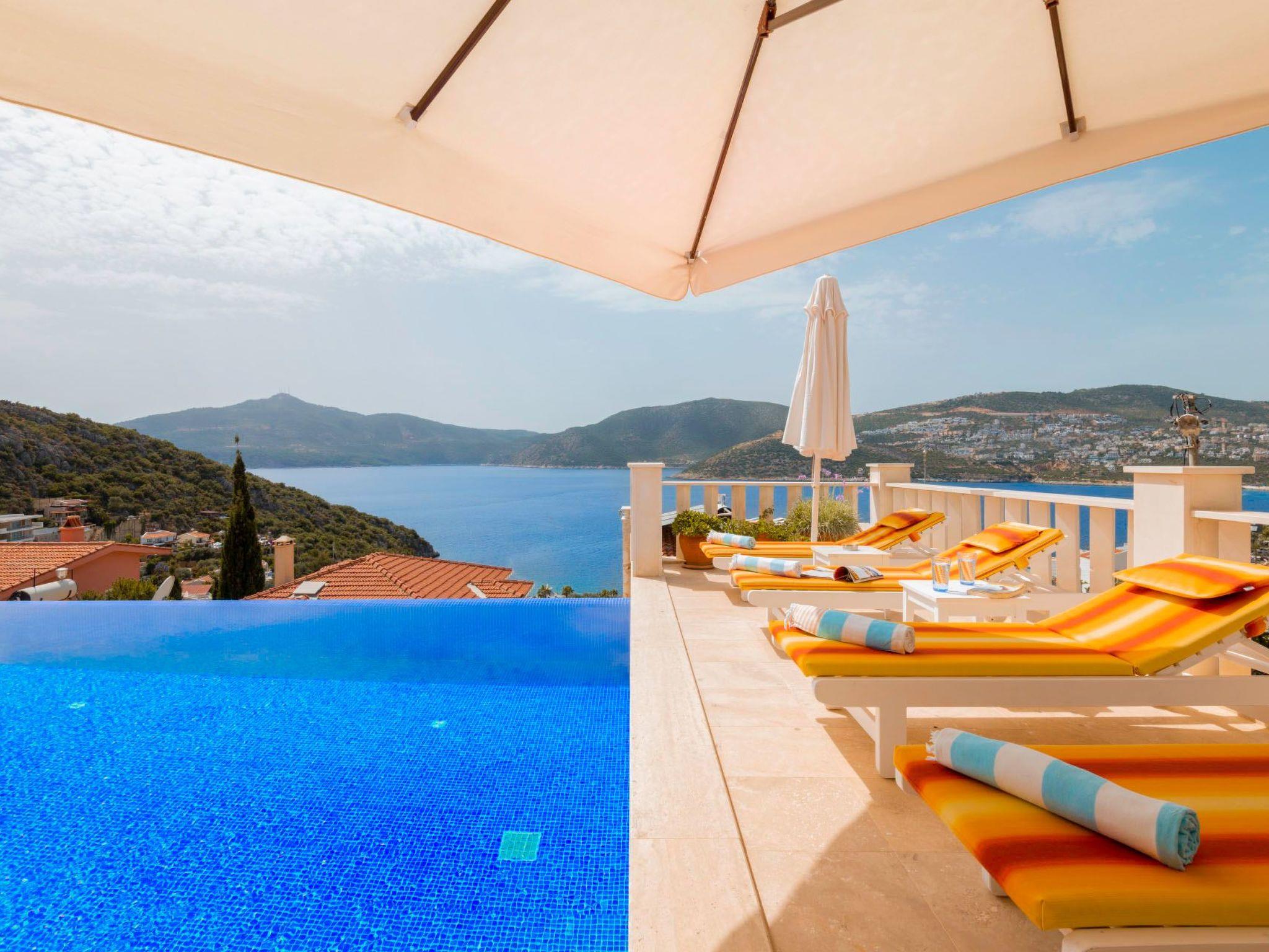Outside, the spectacular infinity pool invites you to relax and swim. The terrace and roof terrace, which are for exclusive use, offer plenty of space for sunbathers and socialising in the evenings. The well-tended garden includes a further area for relaxation and games. A highlight is certainly the large gas barbecue on the terrace - perfect for communal barbecues under the starry skies of Kalkan.