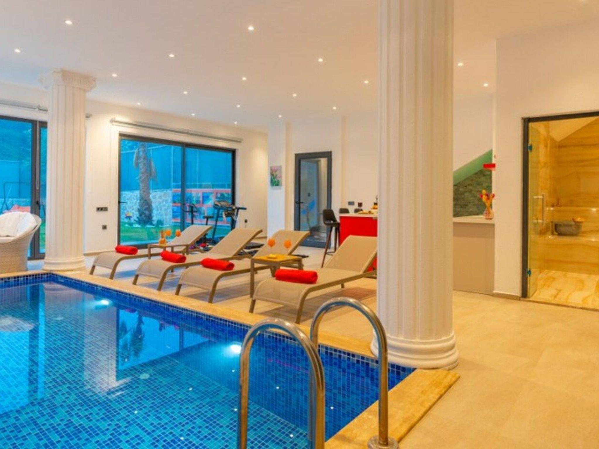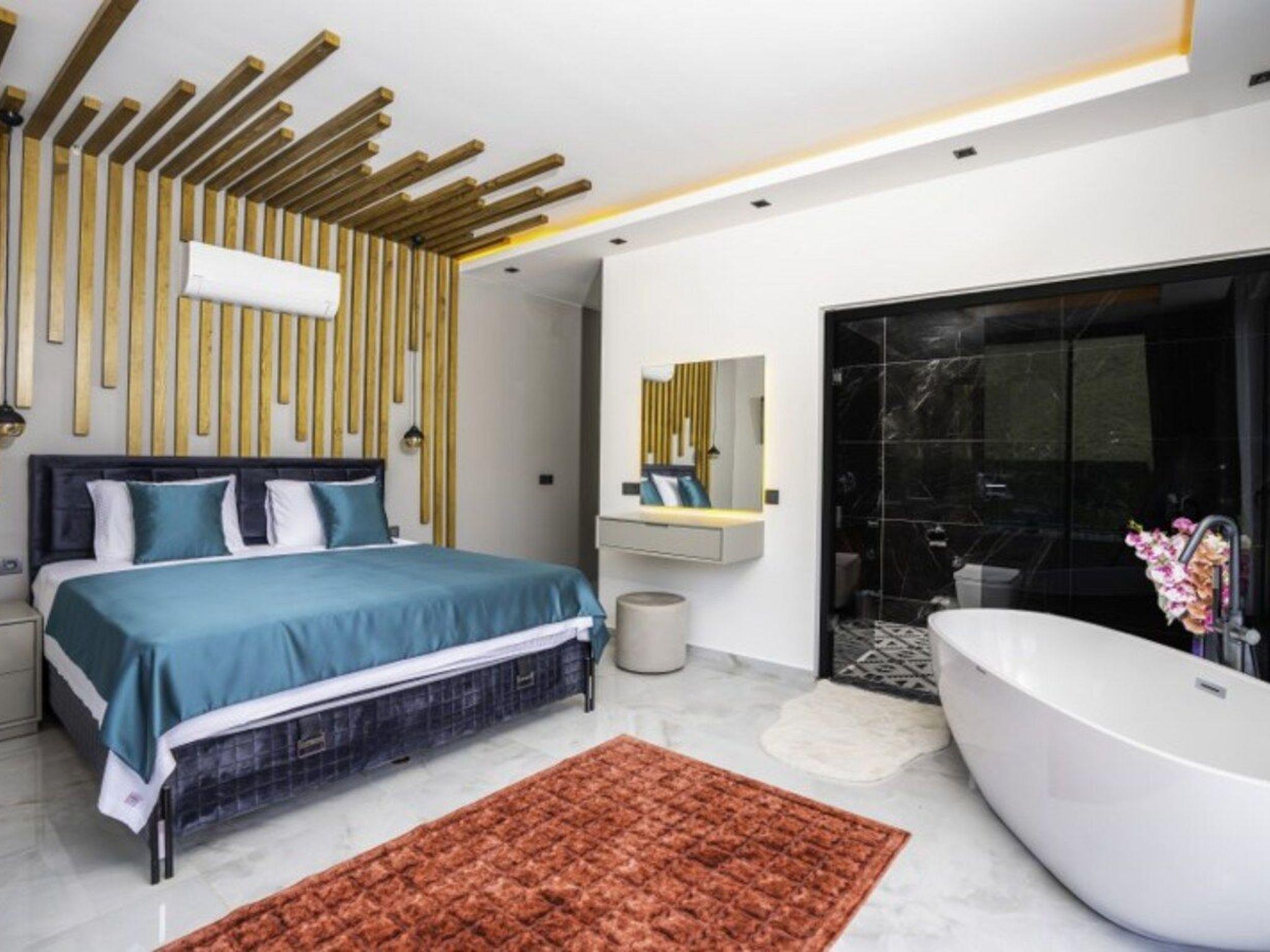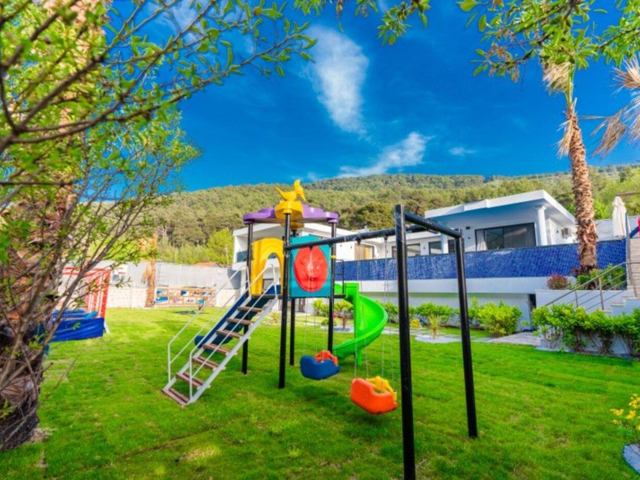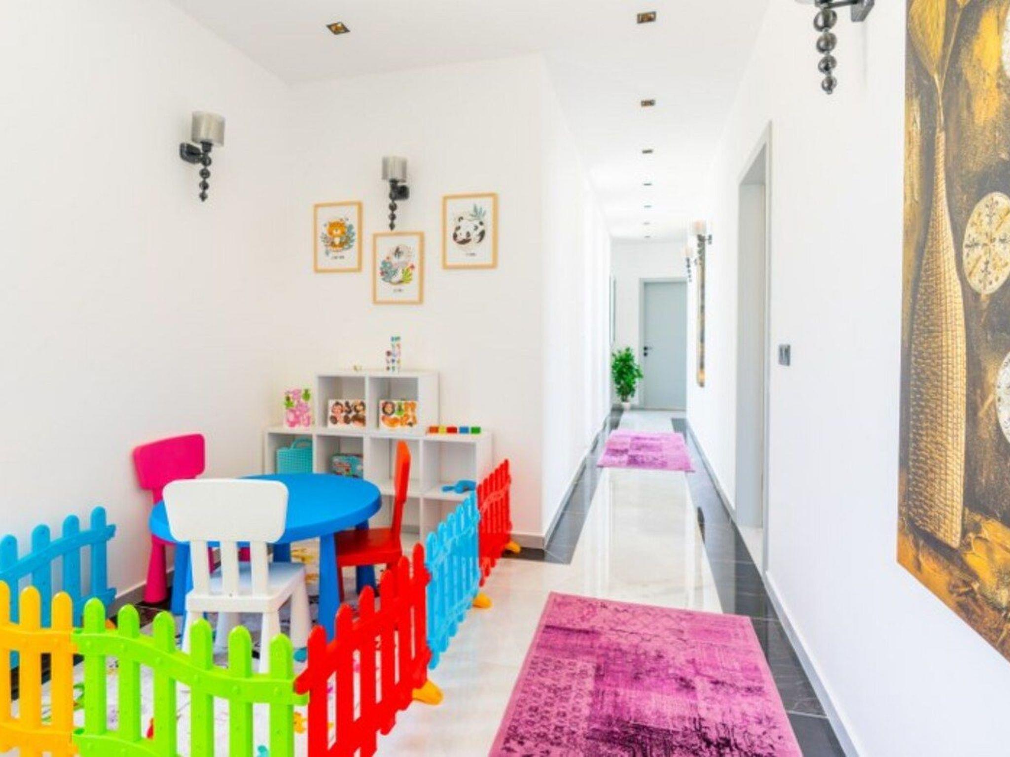 The villa is located in the Saribelen neighbourhood and sleeps 6 people in 3 bedrooms. The pool is secluded and the garden is not visible from the outside, making it an ideal choice for families who value privacy. Our villa is one of the ultra-luxurious rental villas and has amenities such as a Jacuzzi, children's playground, cinema room, sauna, steam room, gym, indoor pool, table tennis, table football and Playstation. The villa's pool has a children's pool, a jacuzzi and a waterfall. In our villa, where everything has been thought of, all you have to do is experience unforgettable moments with your loved ones and enjoy your holiday.