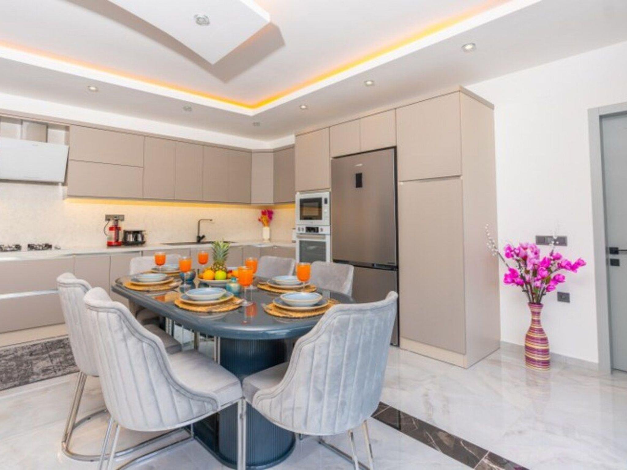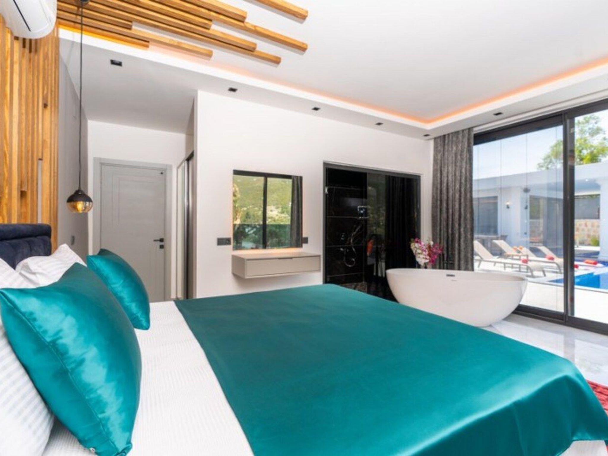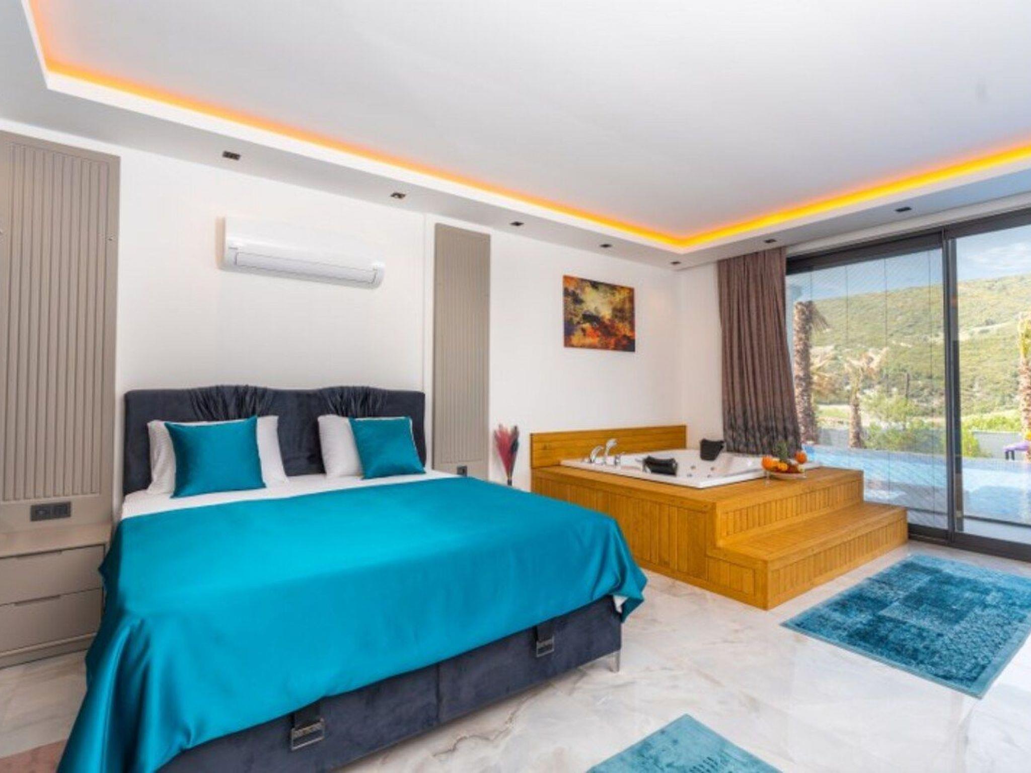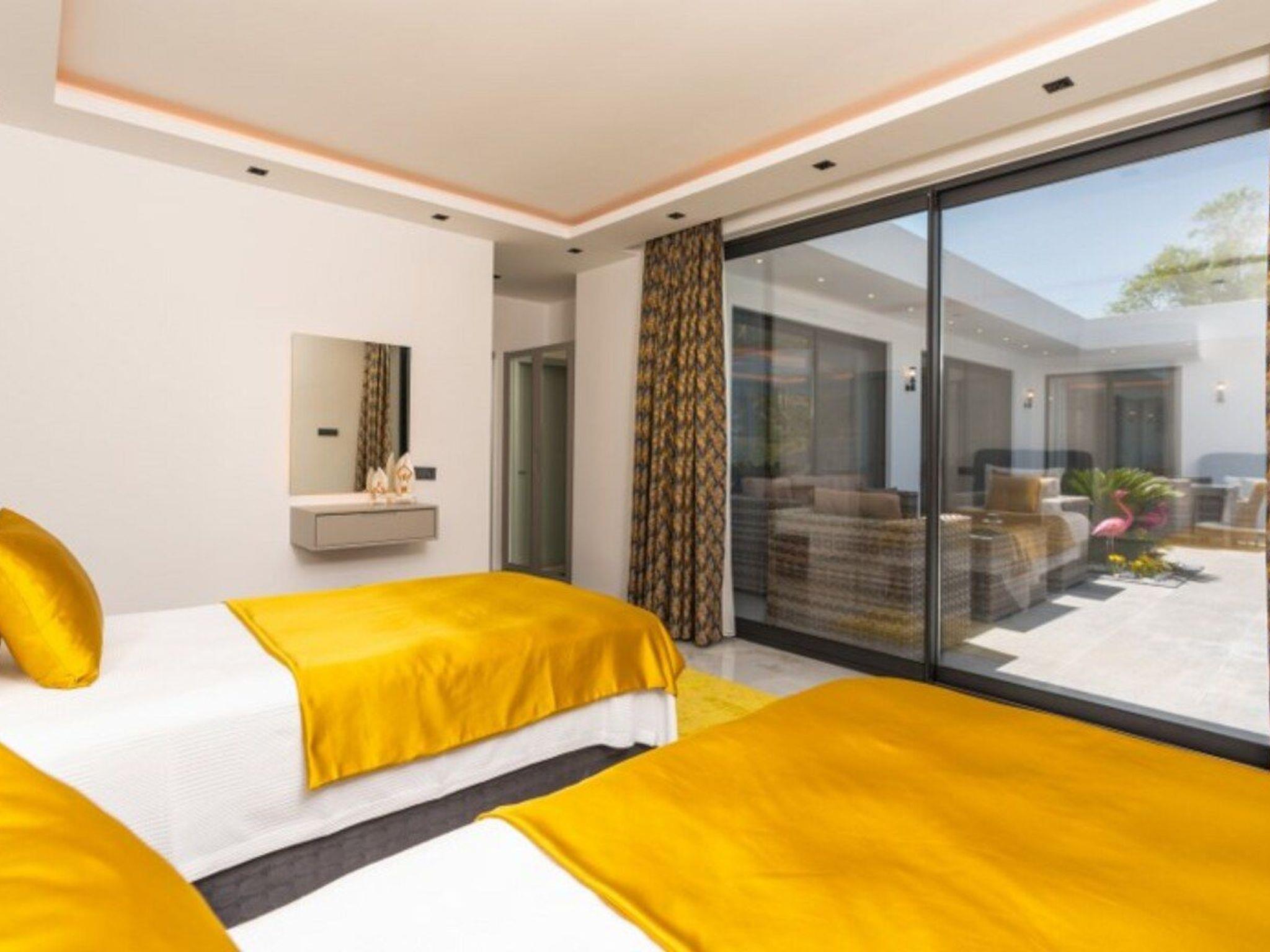 The villa is located in the Saribelen neighbourhood and sleeps 6 people in 3 bedrooms. The pool is secluded and the garden is not visible from the outside, making it an ideal choice for families who value privacy. Our villa is one of the ultra-luxurious rental villas and has amenities such as a Jacuzzi, children's playground, cinema room, sauna, steam room, gym, indoor pool, table tennis, table football and Playstation. The villa's pool has a children's pool, a jacuzzi and a waterfall. In our villa, where everything has been thought of, all you have to do is experience unforgettable moments with your loved ones and enjoy your holiday.