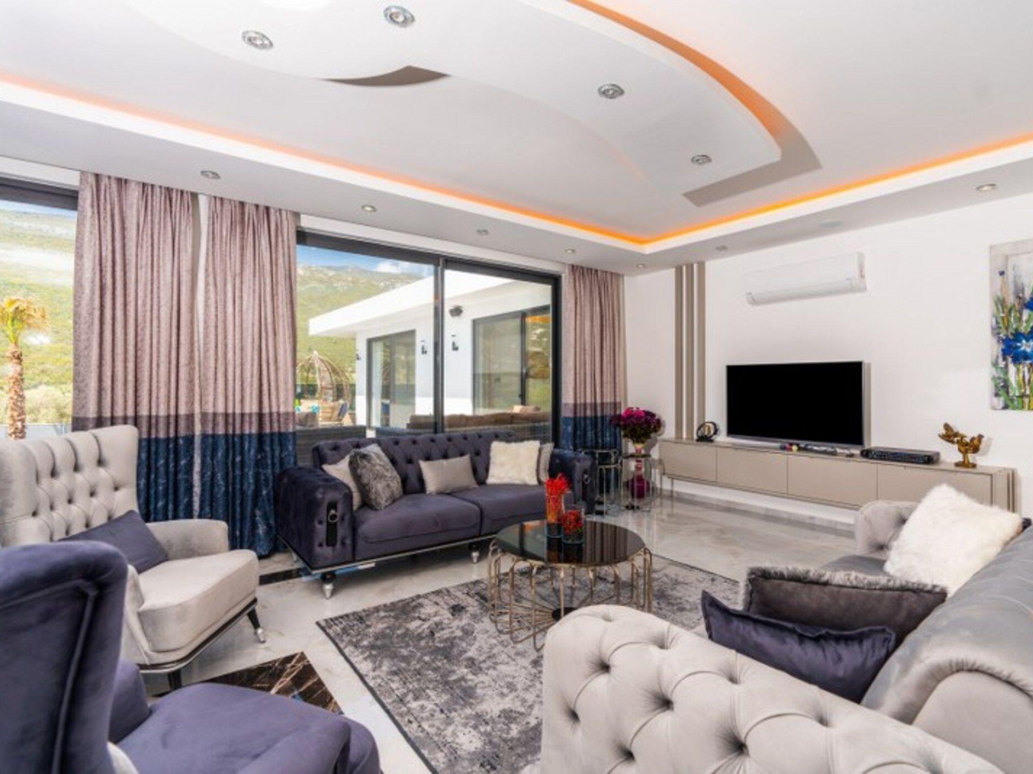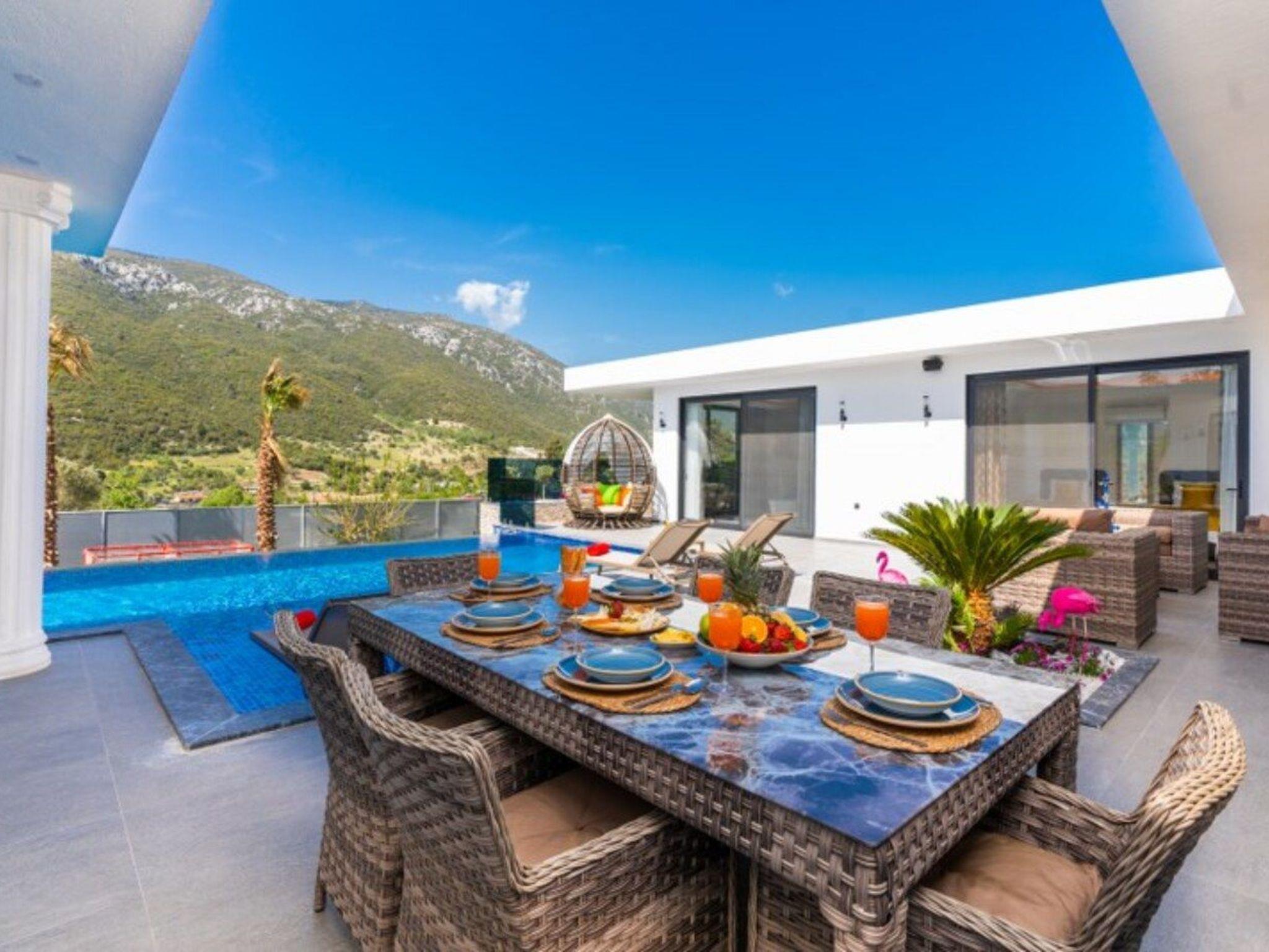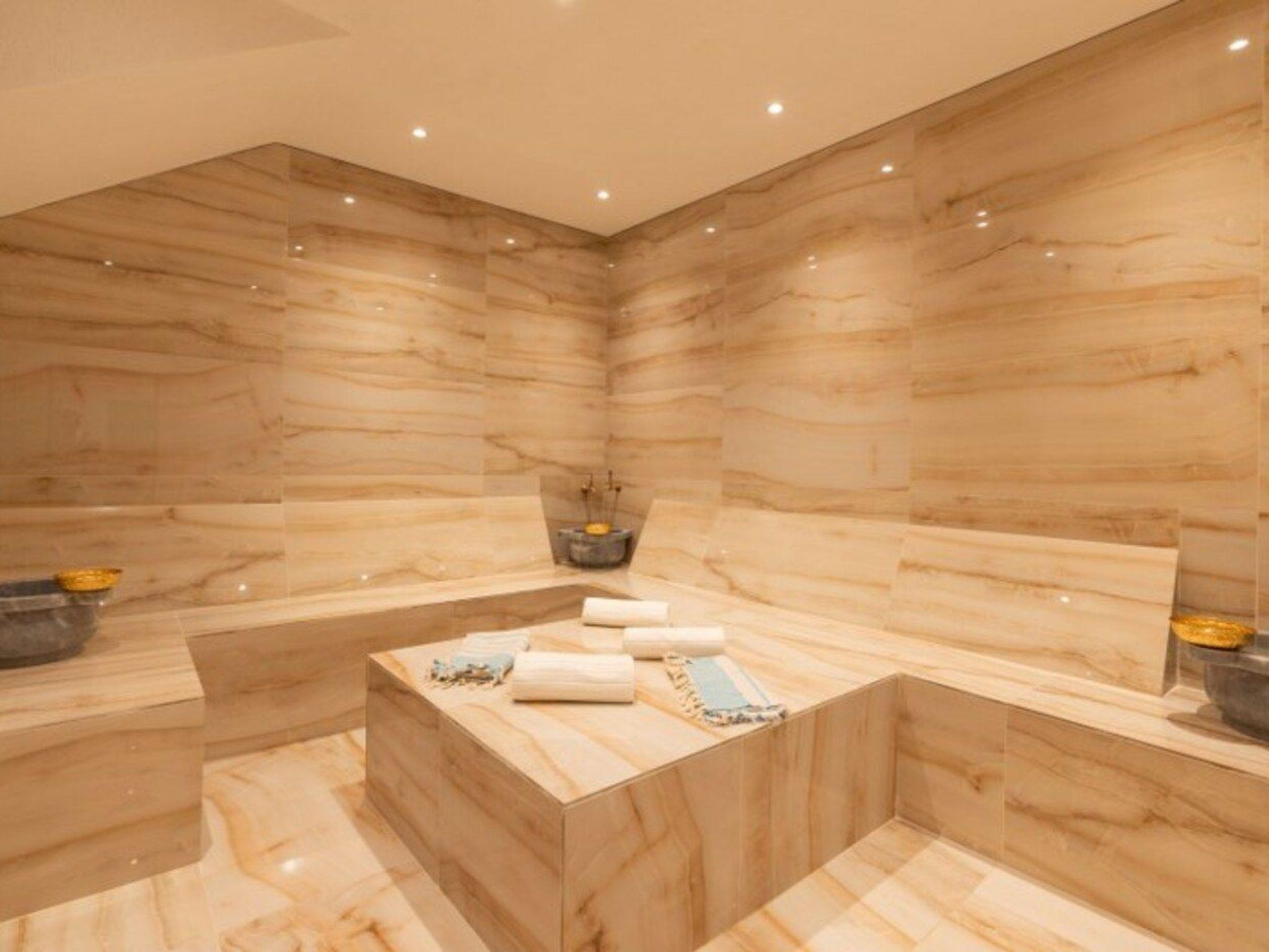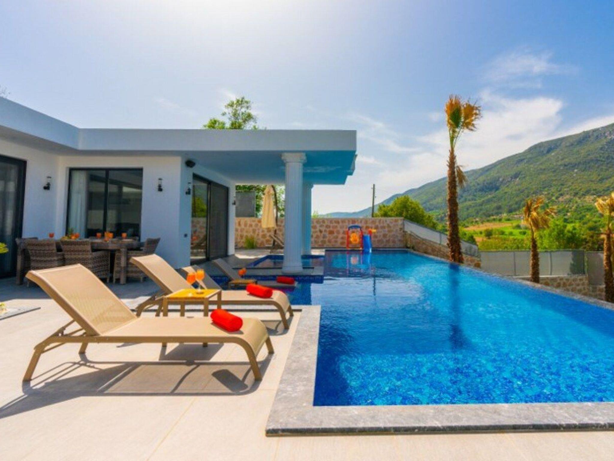 The villa is located in the Saribelen neighbourhood and sleeps 6 people in 3 bedrooms. The pool is secluded and the garden is not visible from the outside, making it an ideal choice for families who value privacy. Our villa is one of the ultra-luxurious rental villas and has amenities such as a Jacuzzi, children's playground, cinema room, sauna, steam room, gym, indoor pool, table tennis, table football and Playstation. The villa's pool has a children's pool, a jacuzzi and a waterfall. In our villa, where everything has been thought of, all you have to do is experience unforgettable moments with your loved ones and enjoy your holiday.