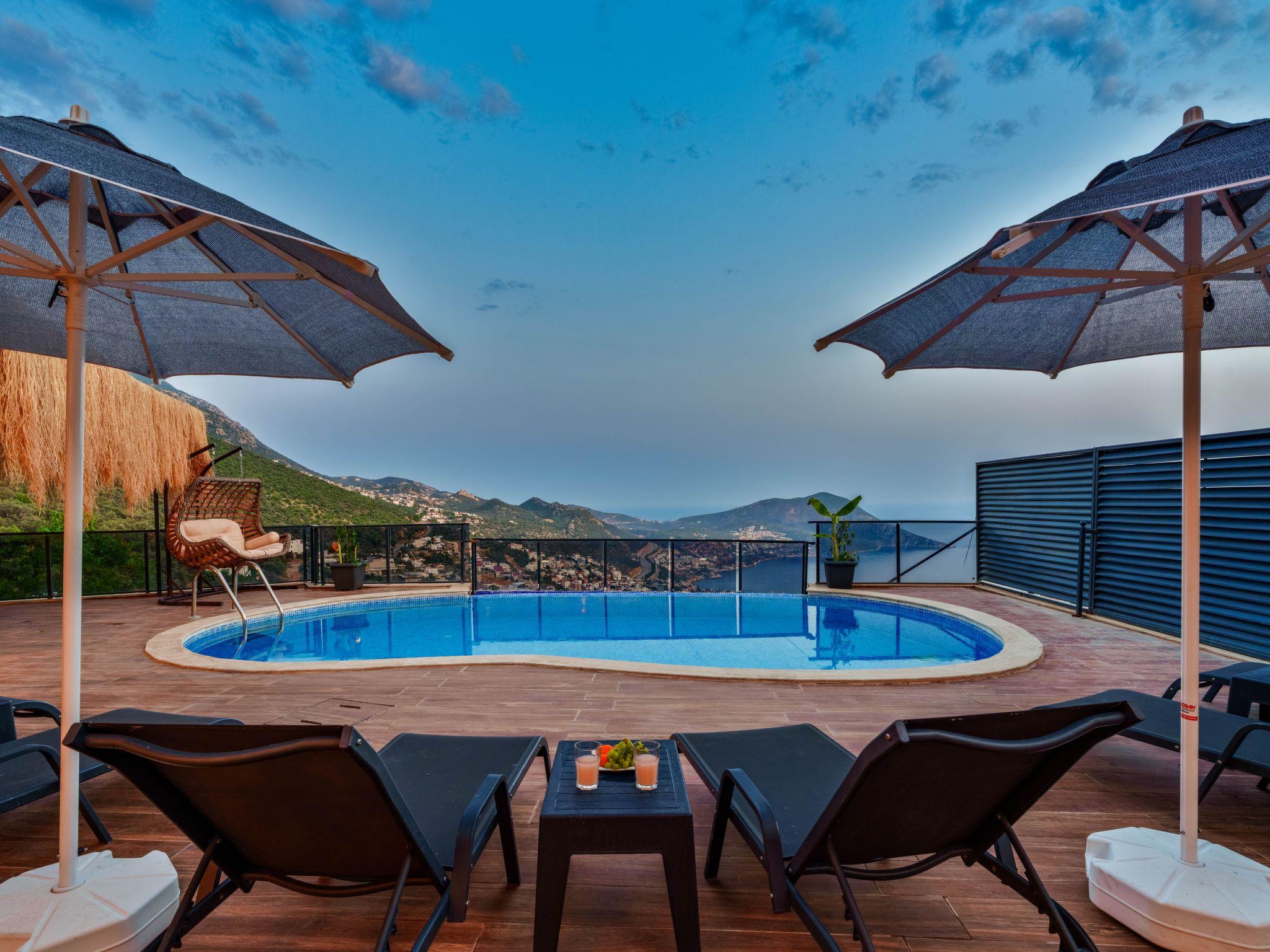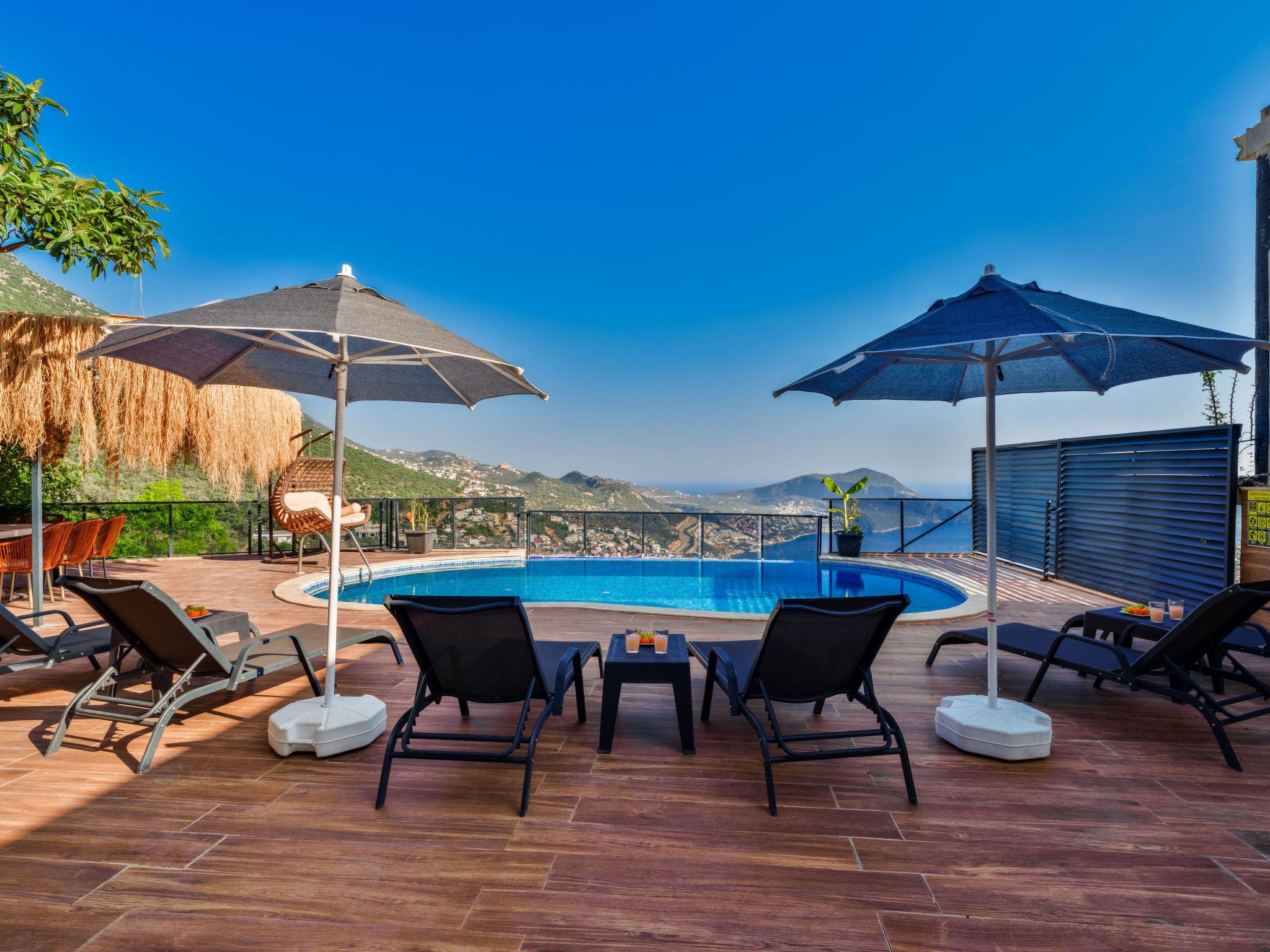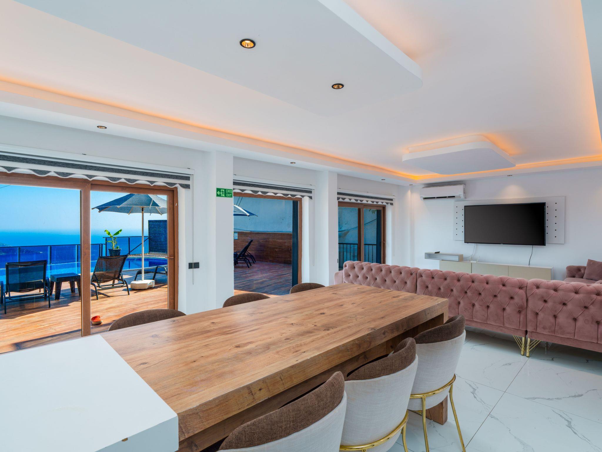 This impressive villa is located in the picturesque Akbel neighbourhood of Kalkan and enchants its guests with a fantastic view of the sea and the sunset. With 5 bedrooms and 5 bathrooms, it can accommodate up to 8 people - ideal for large families or groups of friends looking for a spacious and comfortable holiday retreat.