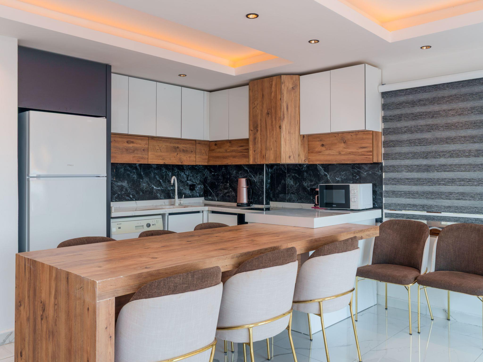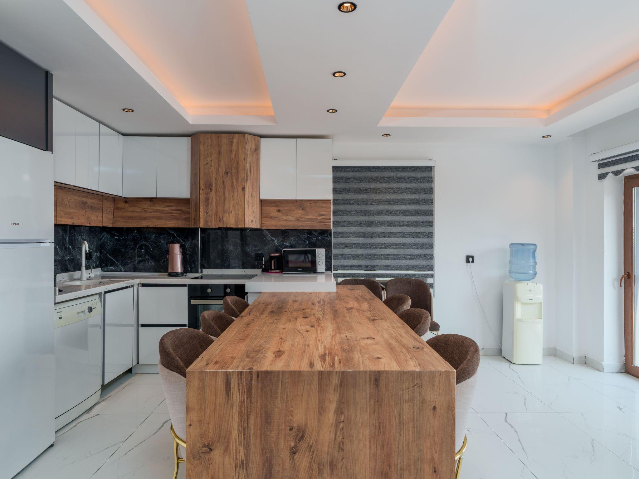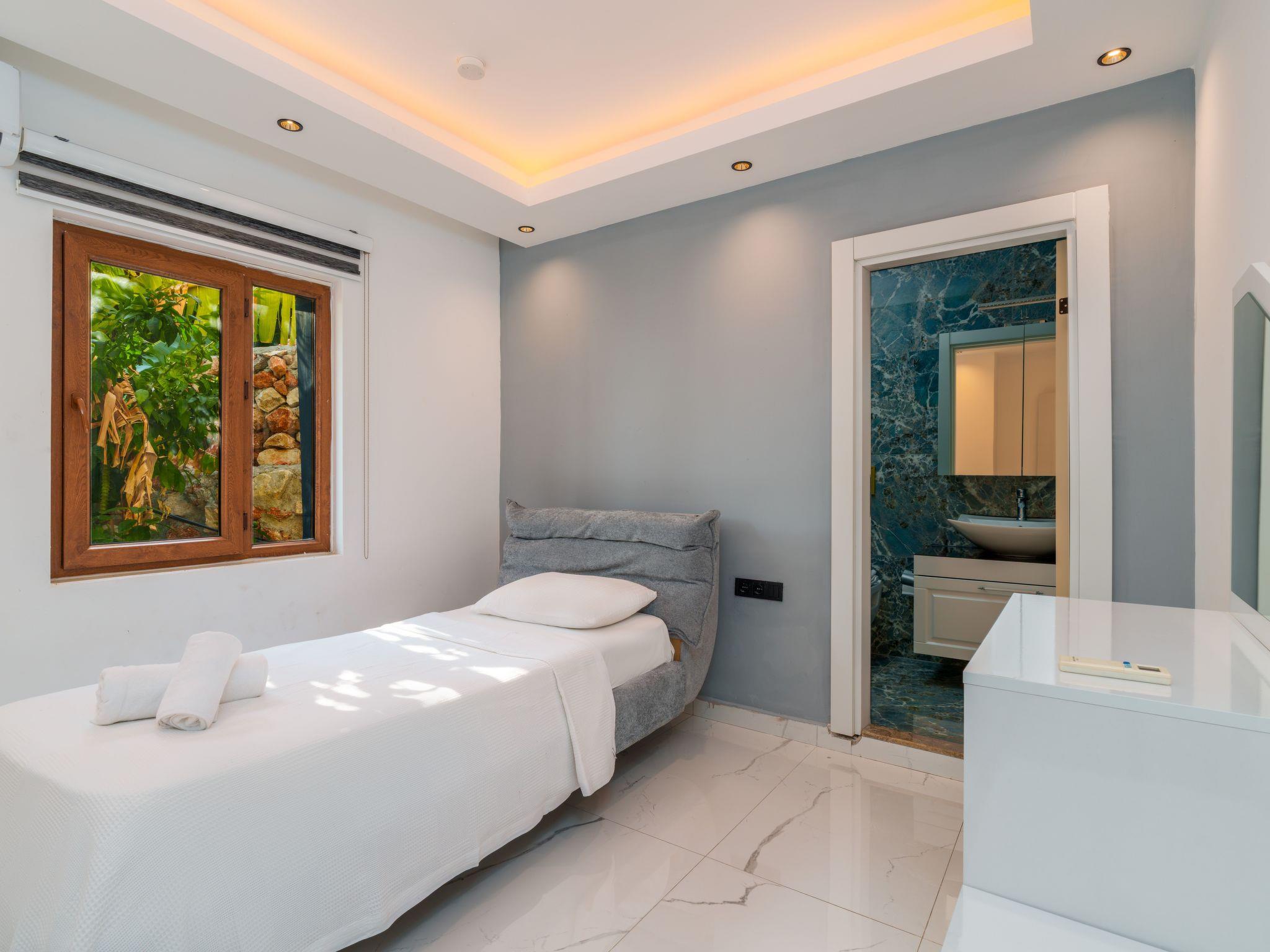 This impressive villa is located in the picturesque Akbel neighbourhood of Kalkan and enchants its guests with a fantastic view of the sea and the sunset. With 5 bedrooms and 5 bathrooms, it can accommodate up to 8 people - ideal for large families or groups of friends looking for a spacious and comfortable holiday retreat.